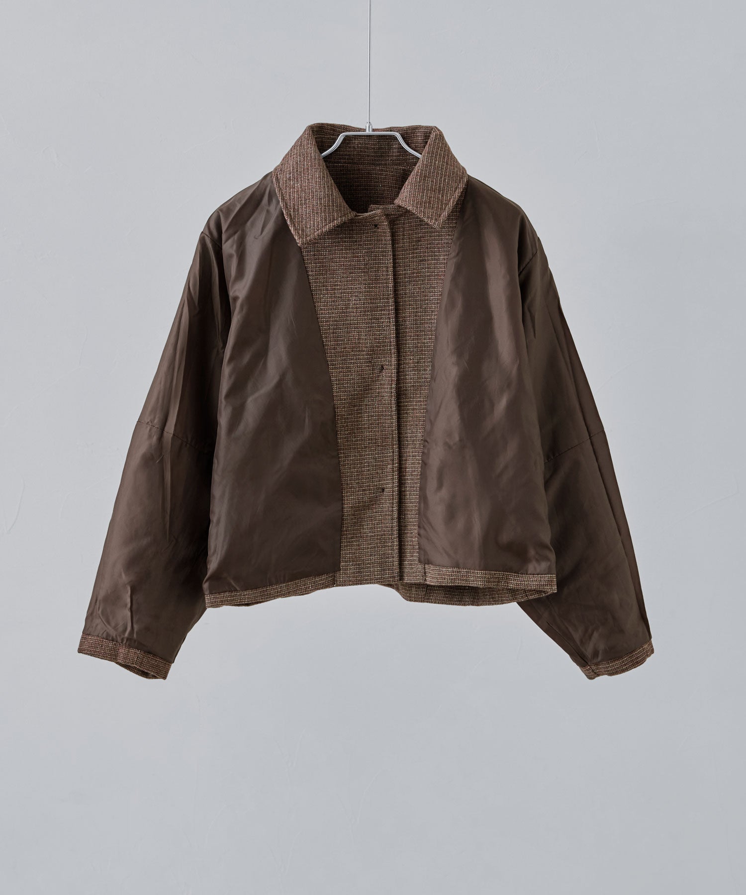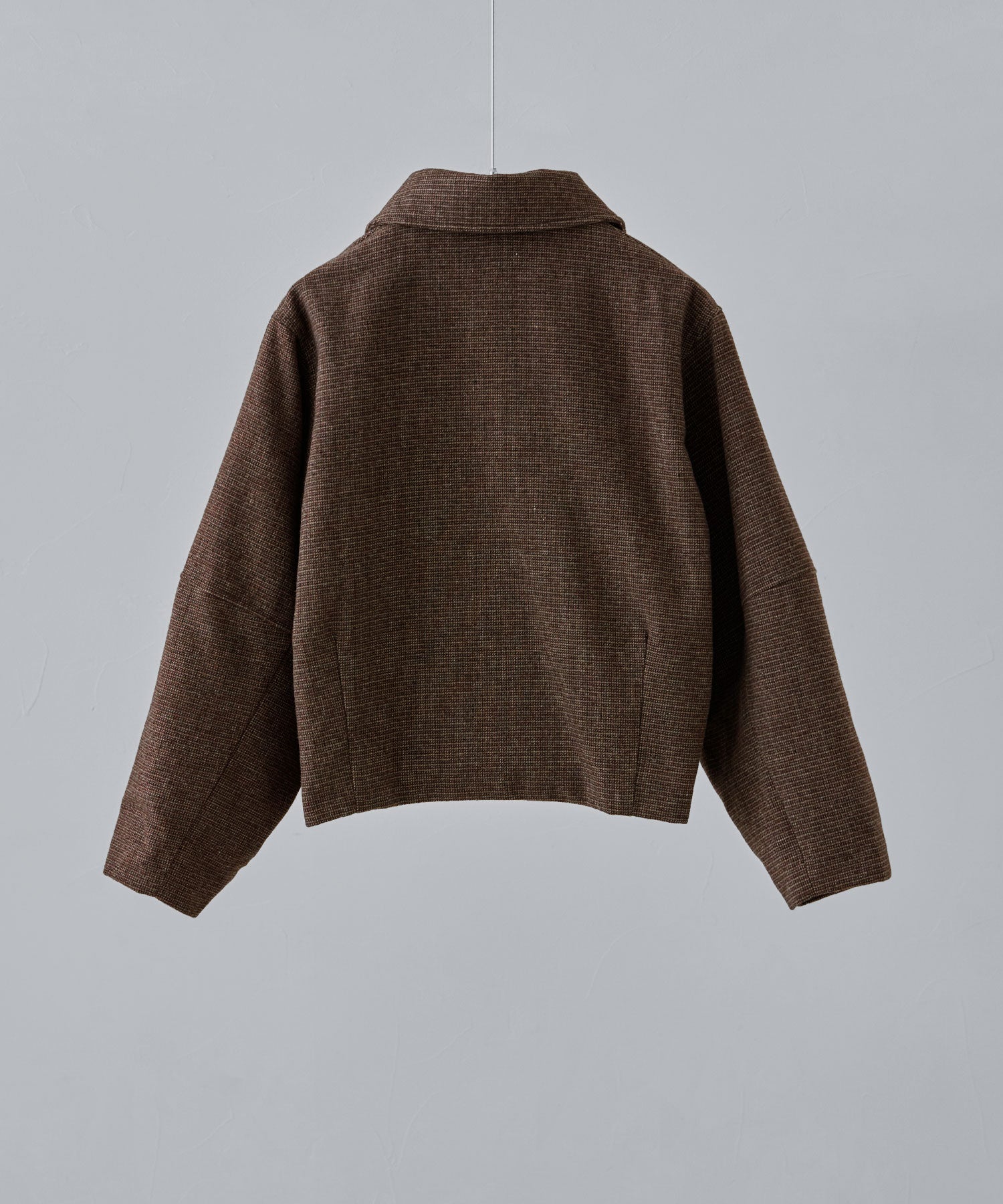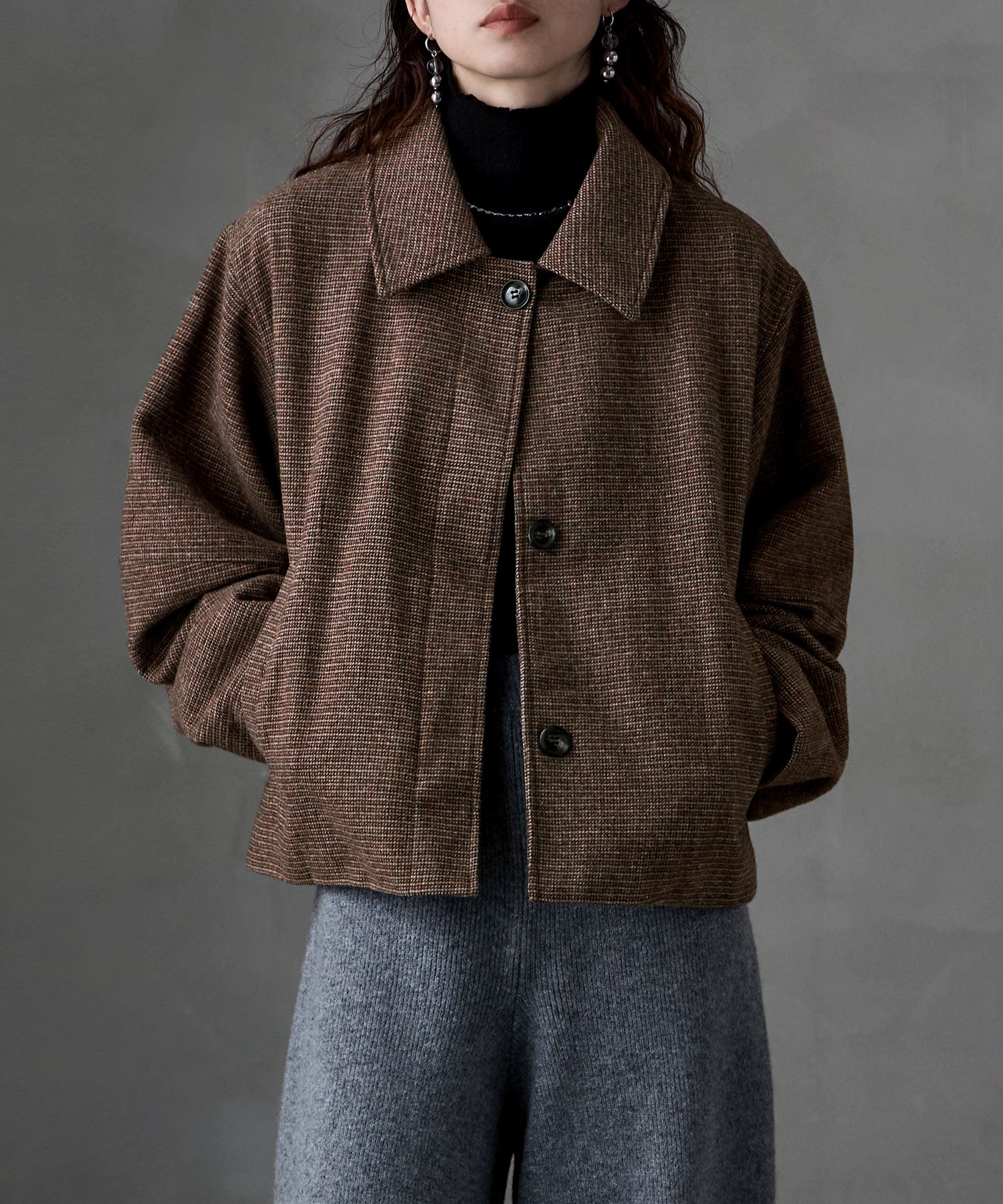 Rname チェックツイードコクーンスリーブジャケット アウター ジャケット ブルゾン 長袖 ステンカラー チェック柄 ダッドジャケット ゆったり ビッグシルエット セットアップ