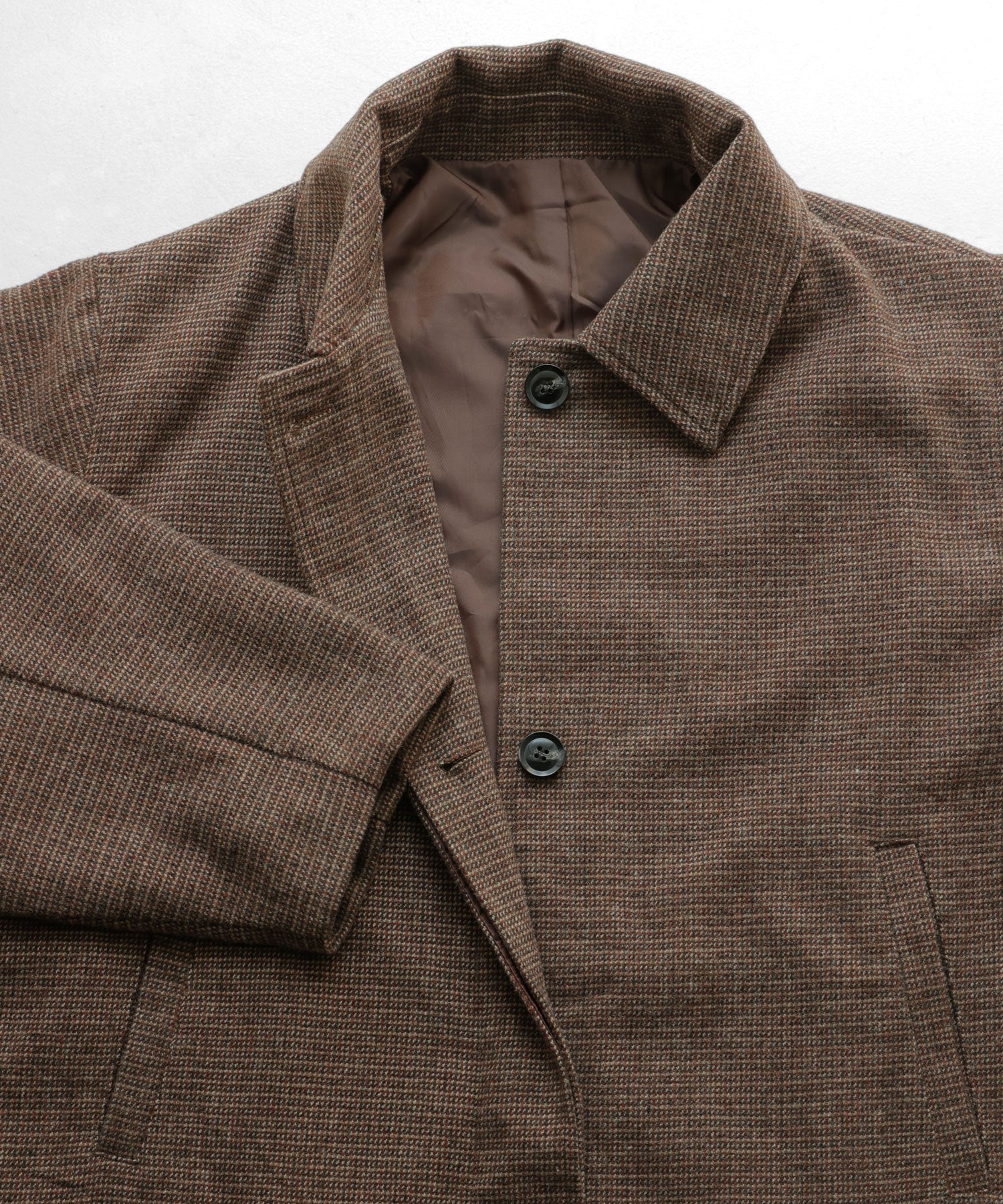 丸みのあるコクーンスリーブのシルエットとワークテイストなステンカラーが好アクセント。