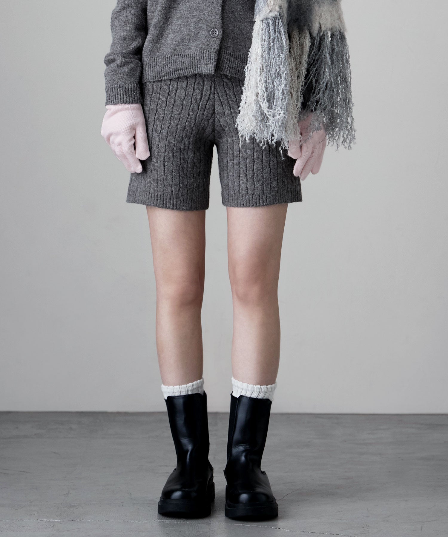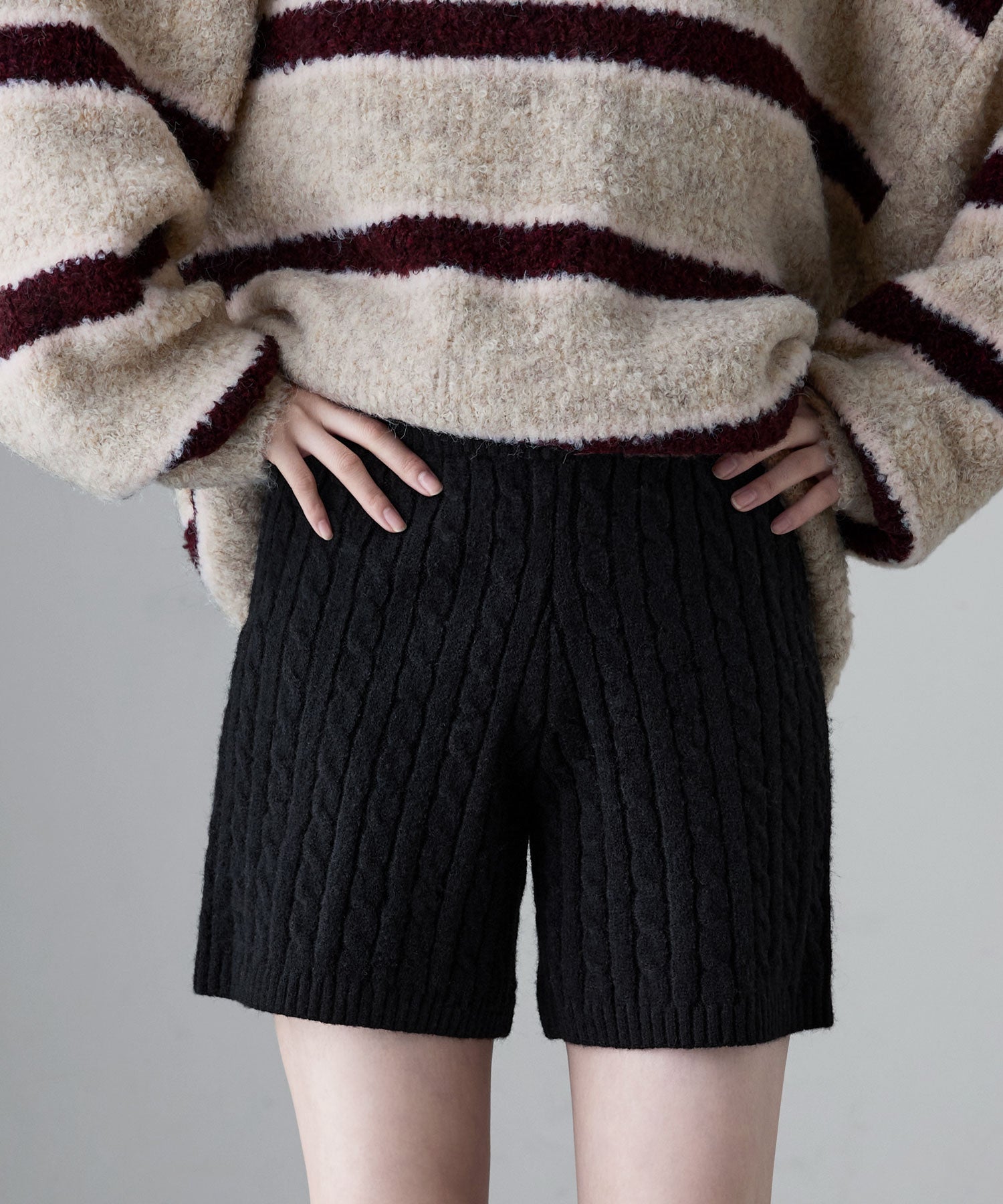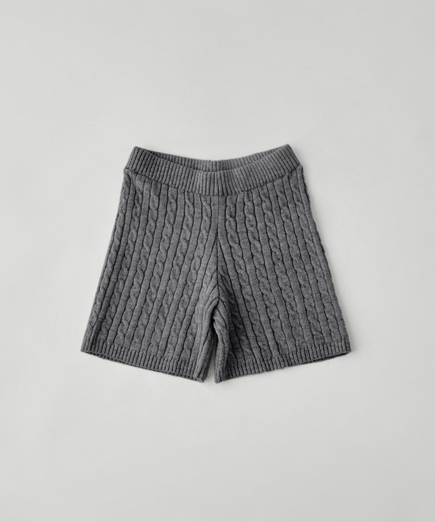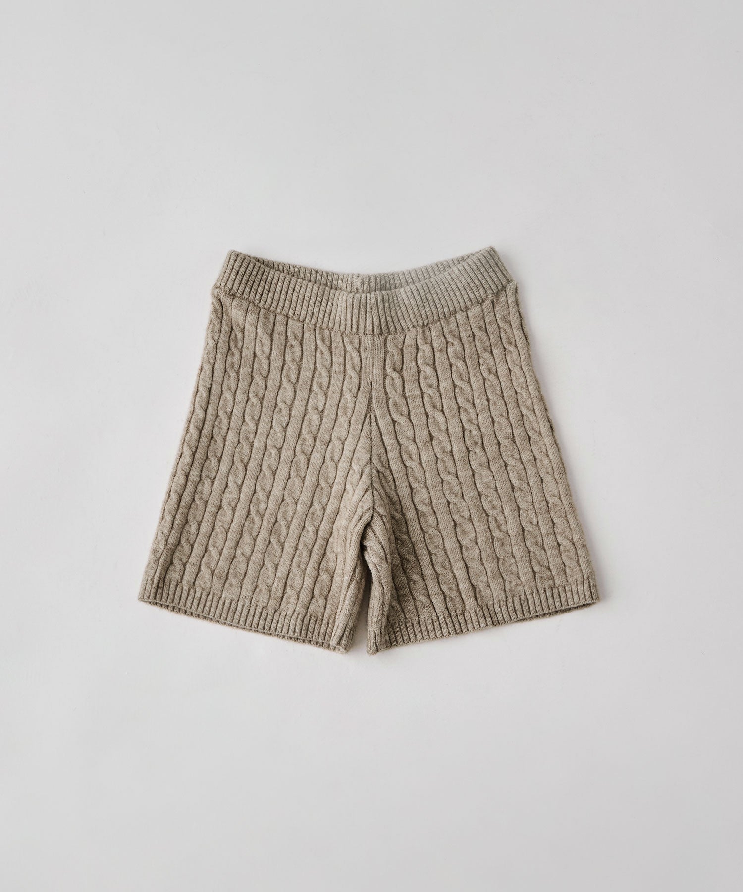 柔らかな印象のアルパカタッチのニット素材で、ケーブル編みの柄模様が目を惹くショートパンツ。