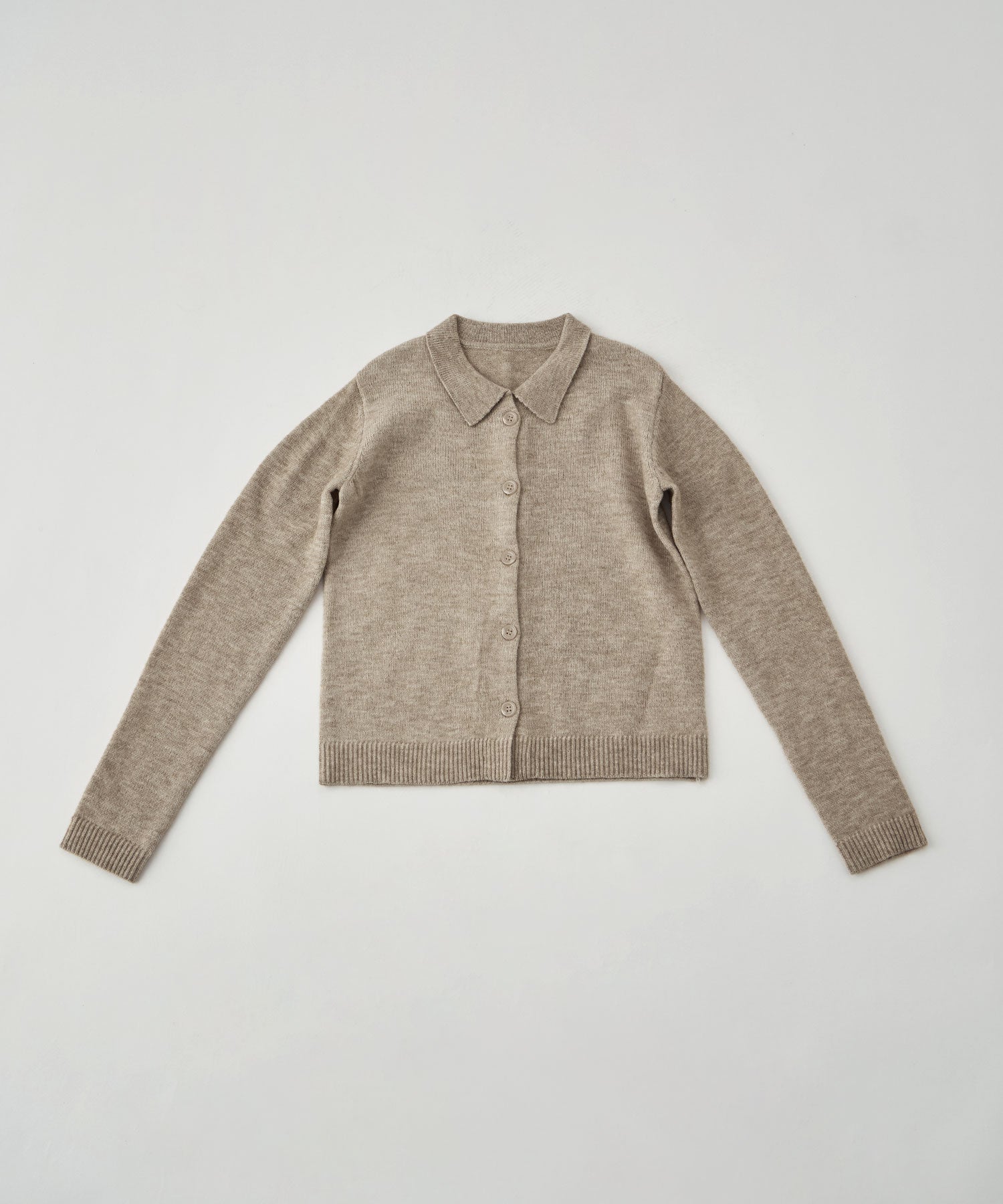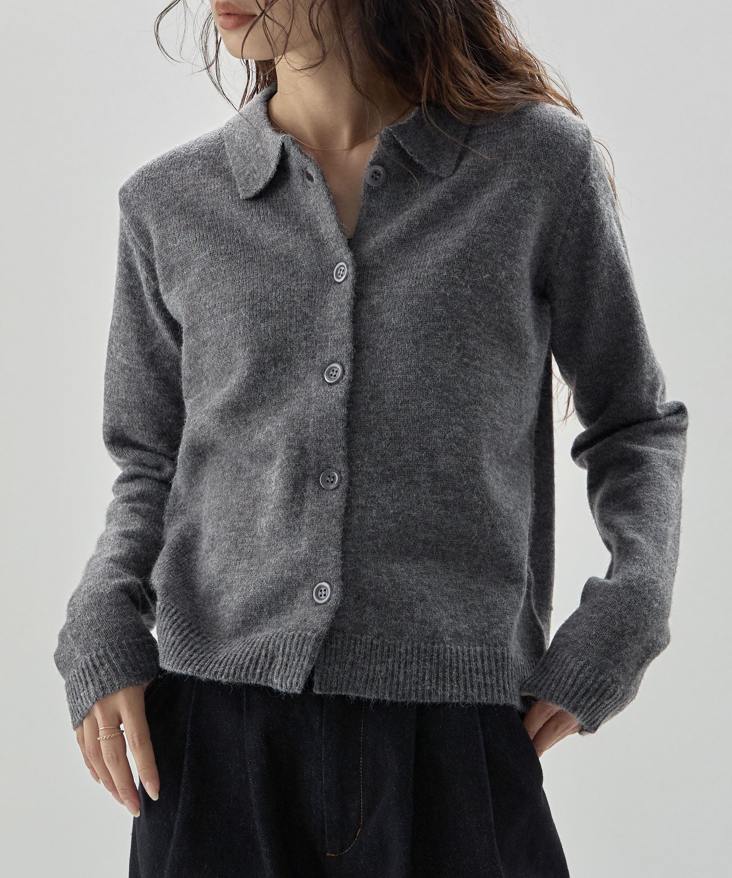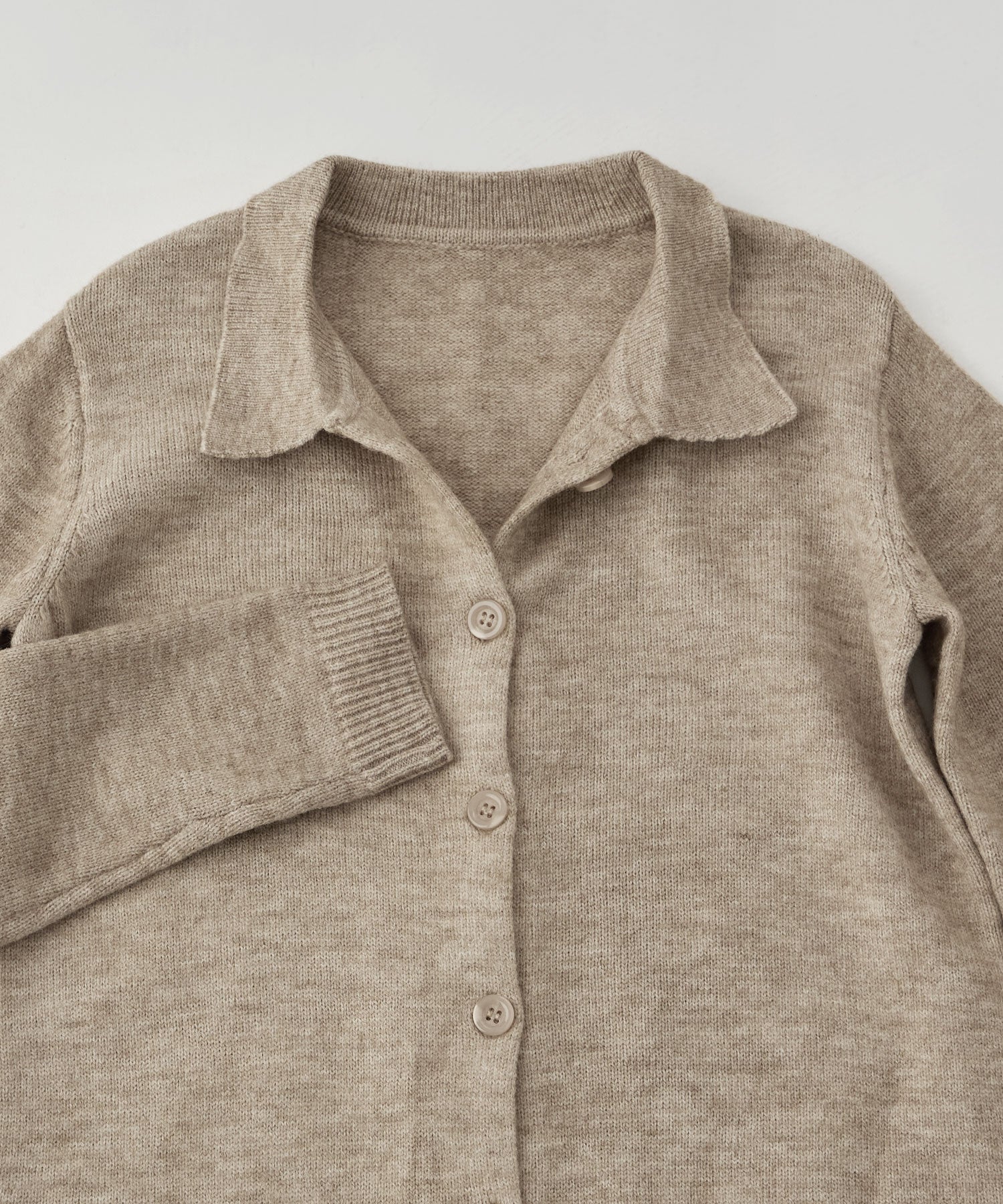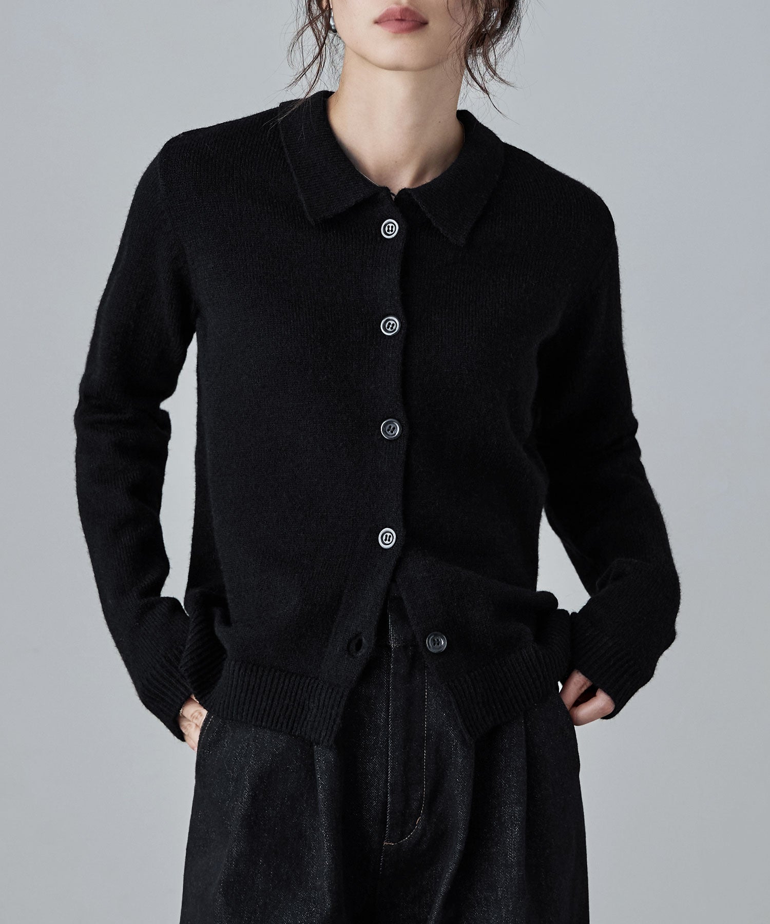 柔らかなアルパカタッチの素材で仕立てた、ポロ襟ニットカーディガン。
