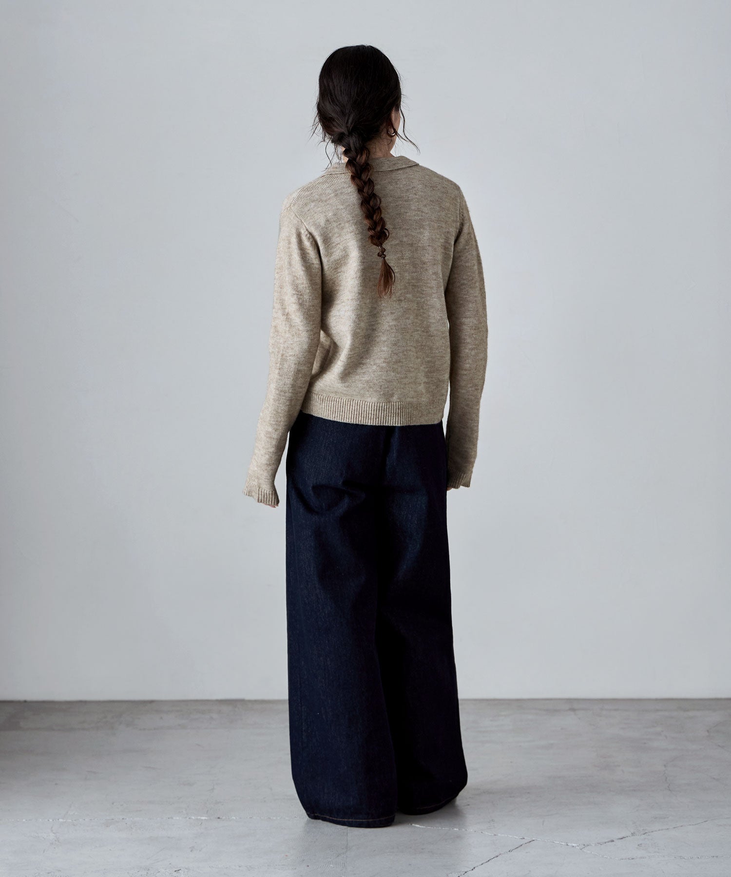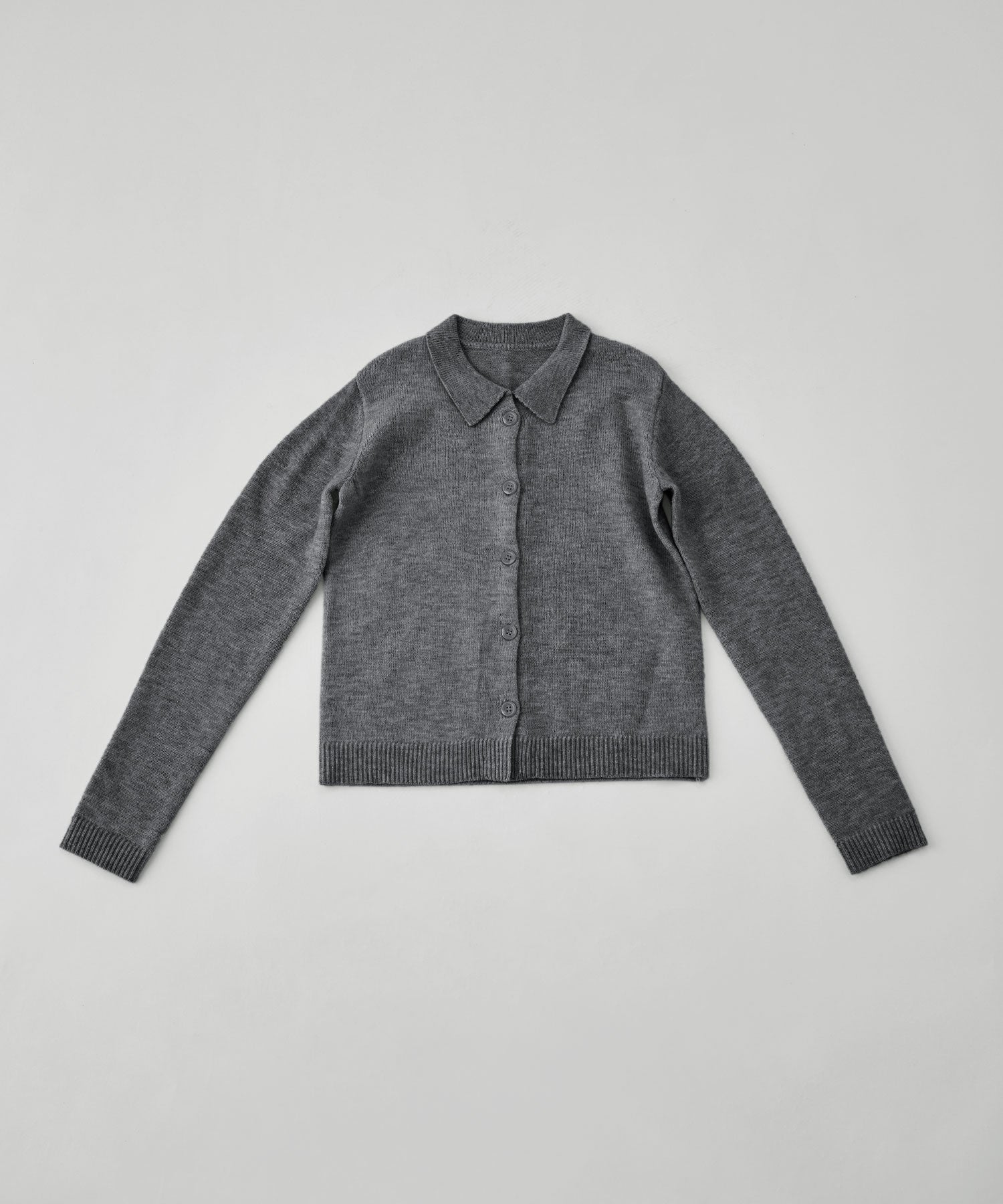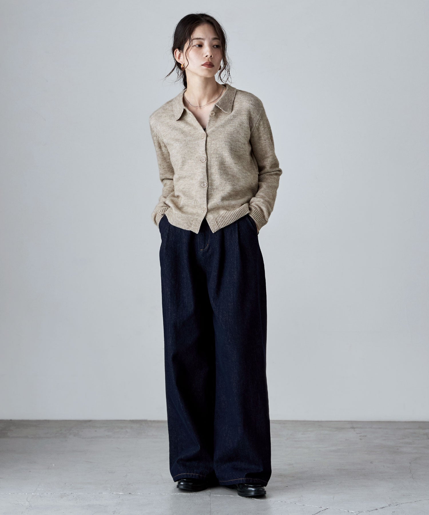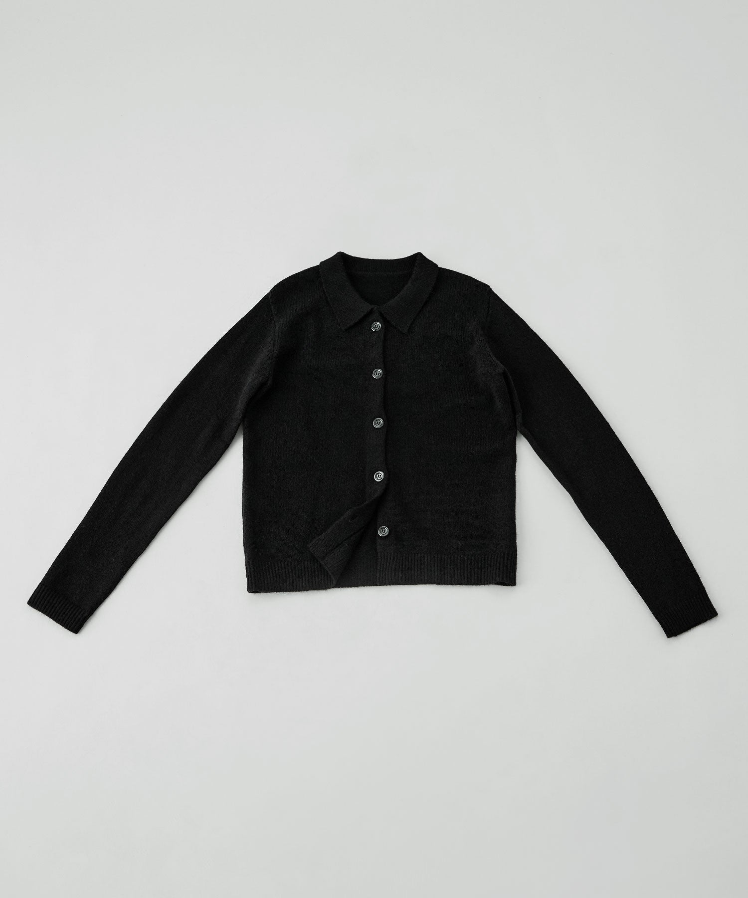 柔らかなアルパカタッチの素材で仕立てた、ポロ襟ニットカーディガン。