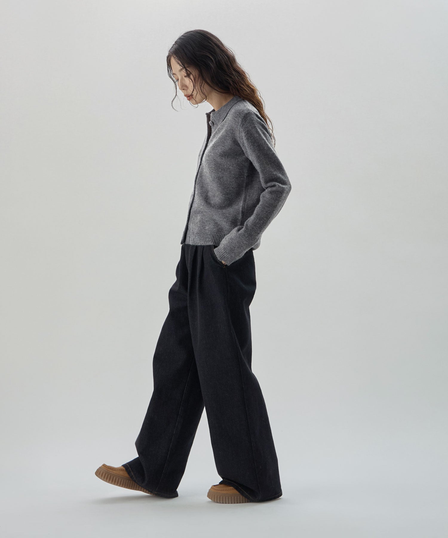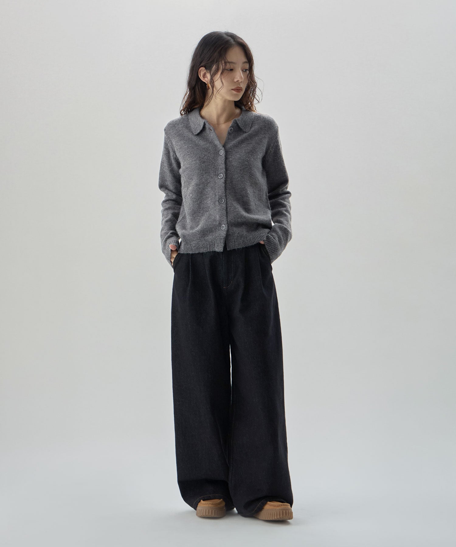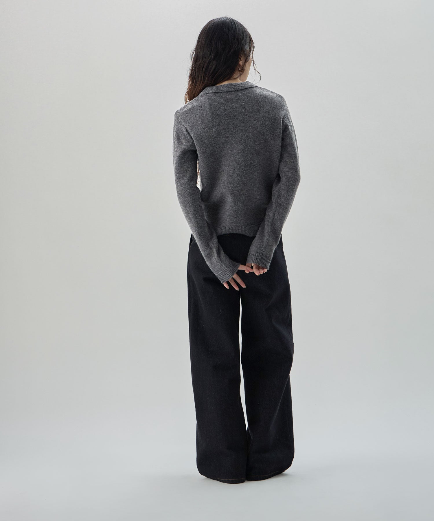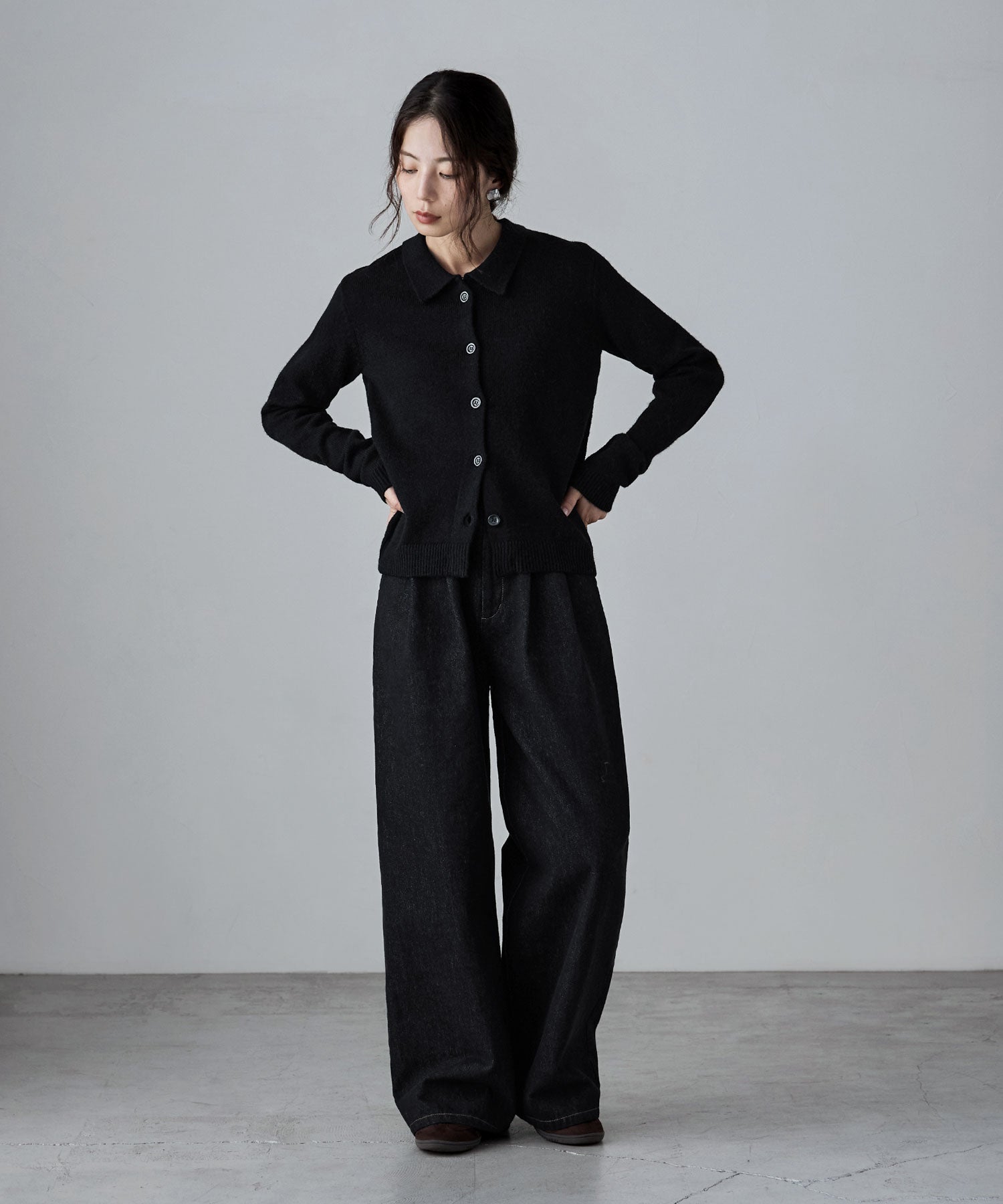 柔らかなアルパカタッチの素材で仕立てた、ポロ襟ニットカーディガン。
