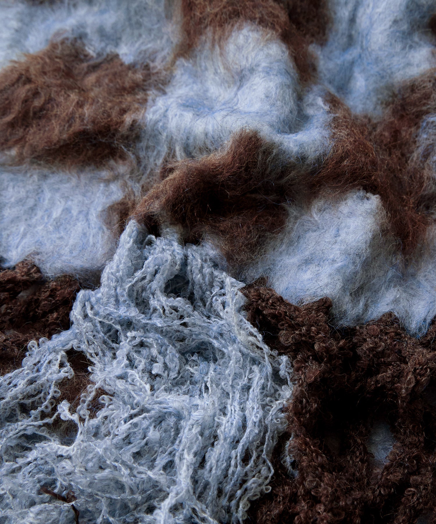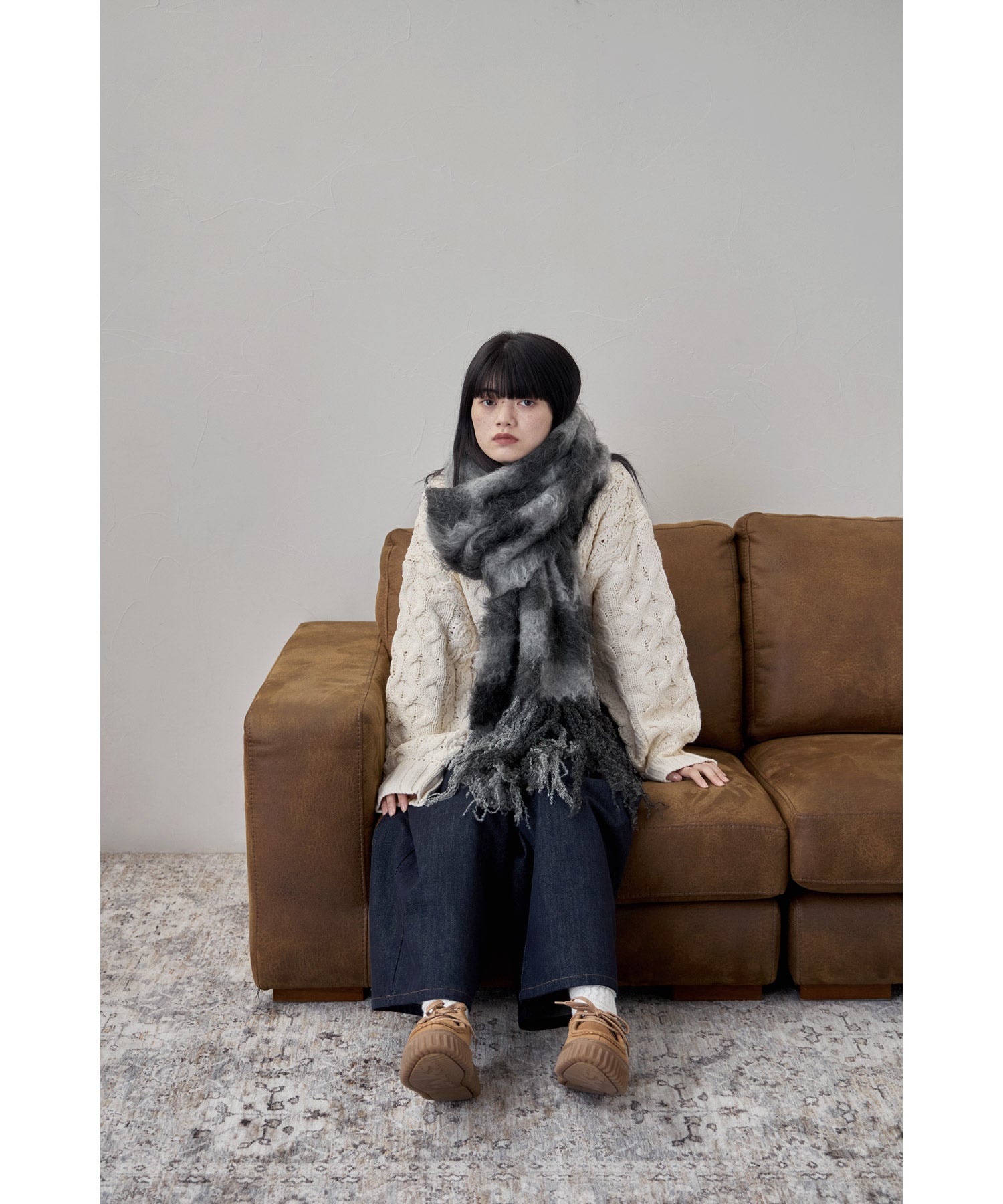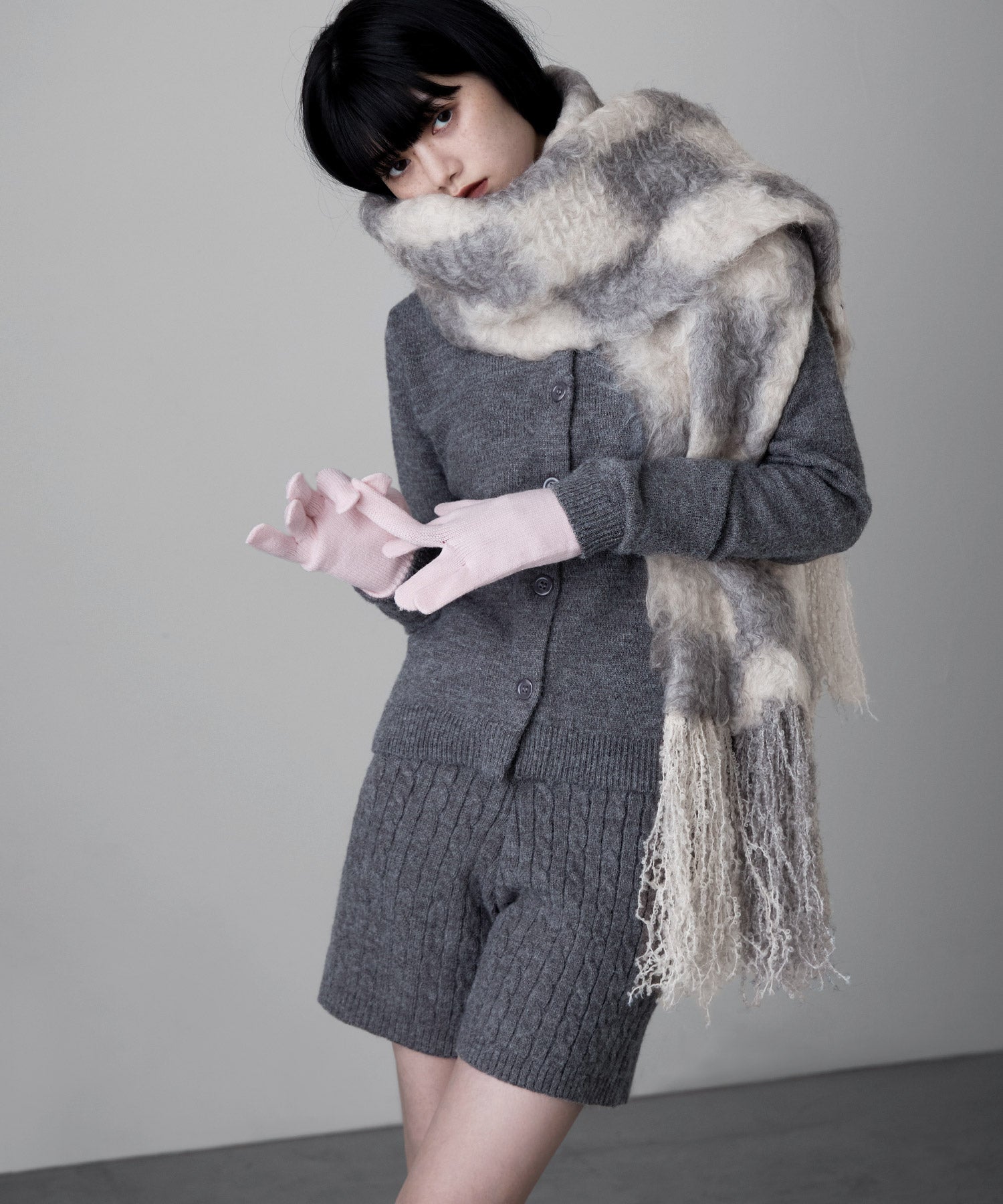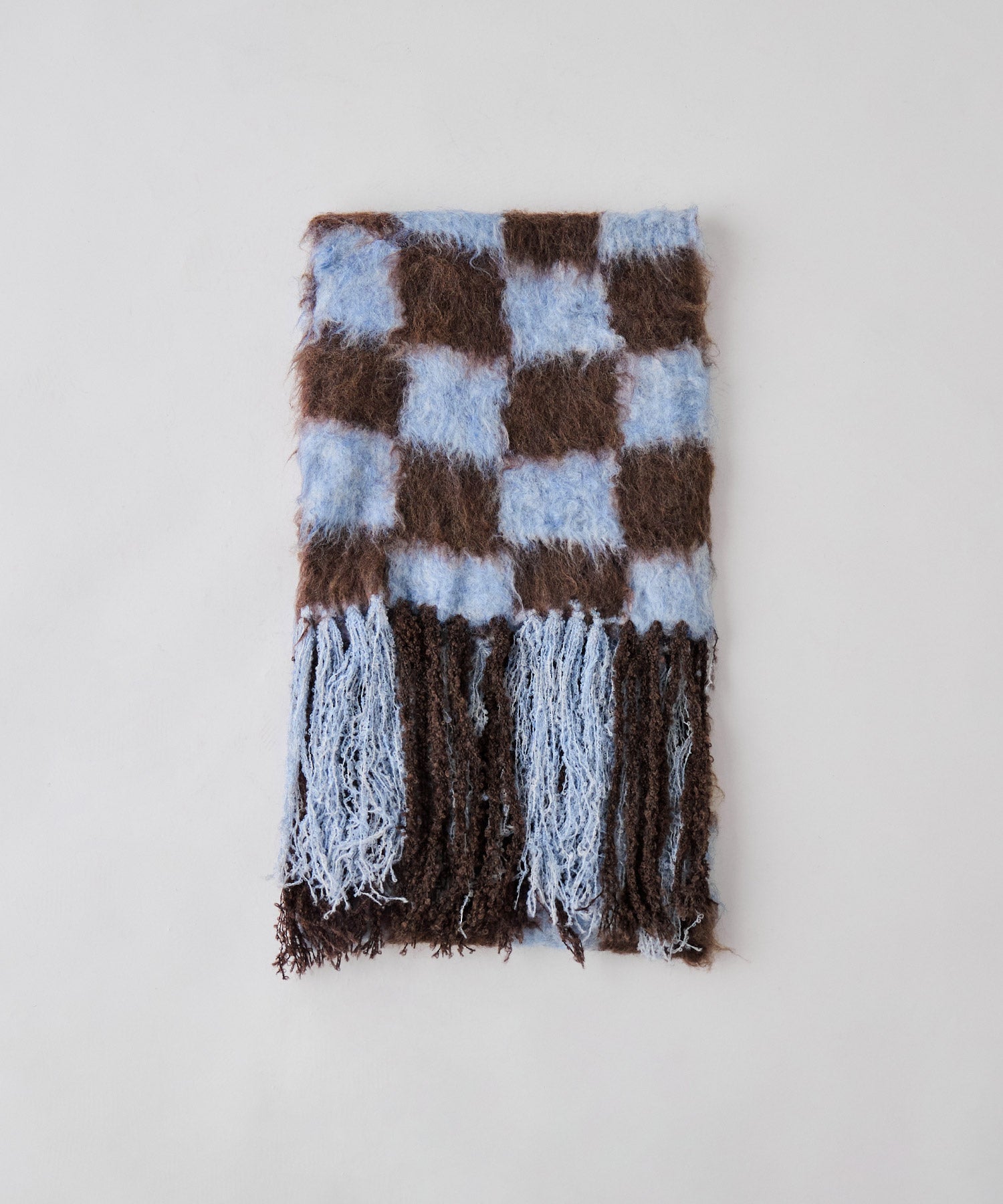 顔が埋もれるくらいふわりとした素材感で、主役級の存在感を発揮してくれるチェッカーボードマフラー。