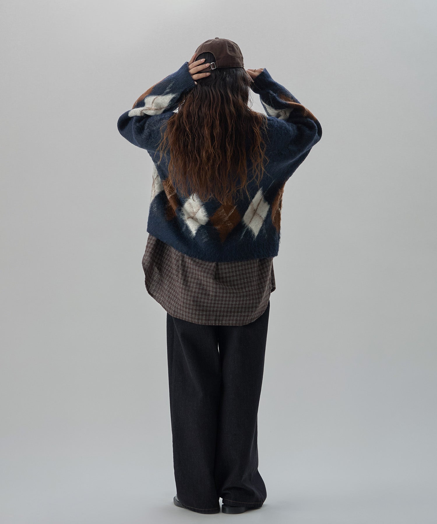 ナチュラルな優しい色合いの、どこか懐かしさを感じるアーガイルニット。