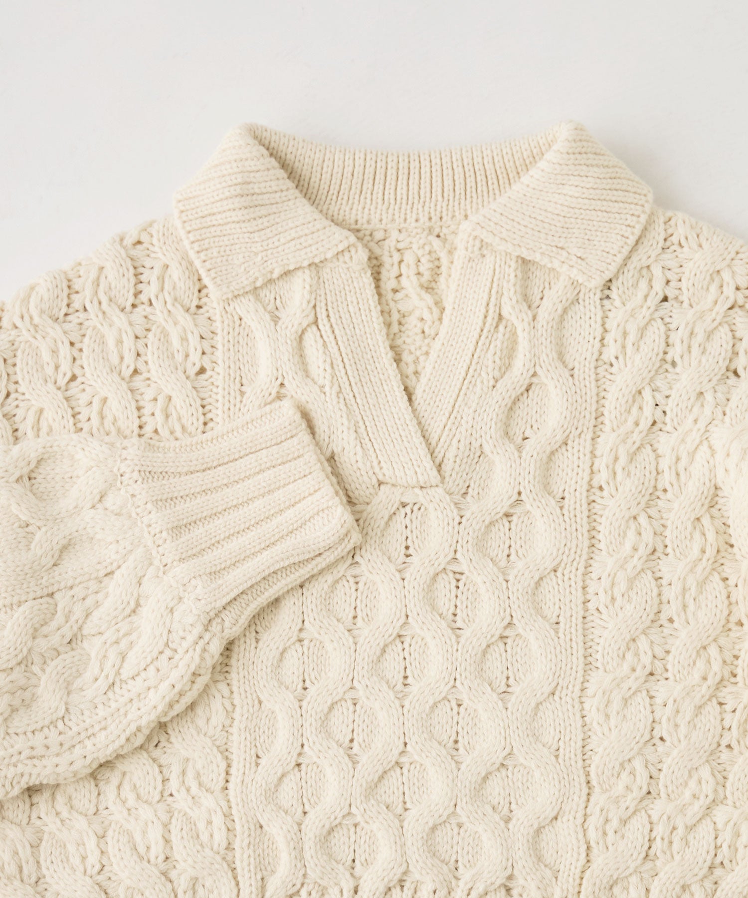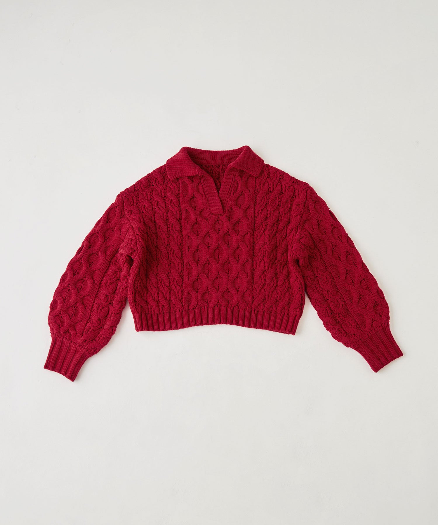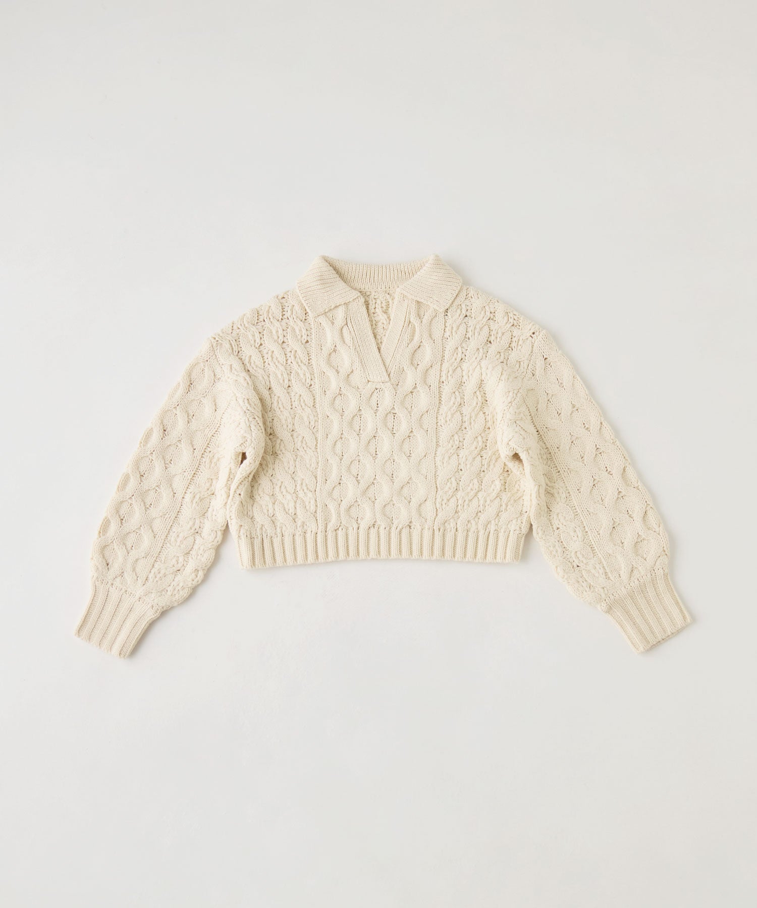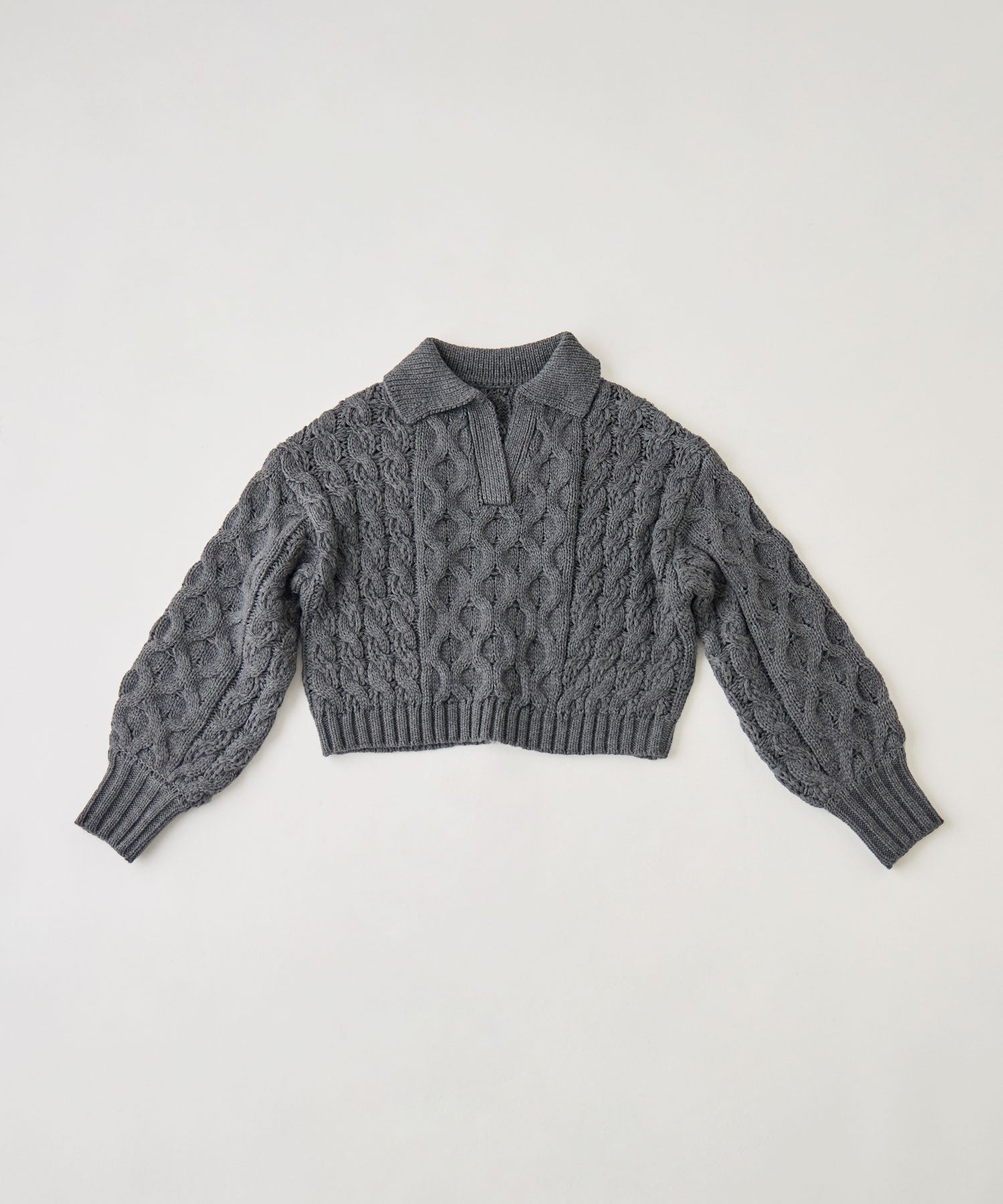 Zname ケーブル編み開襟クロップドニット