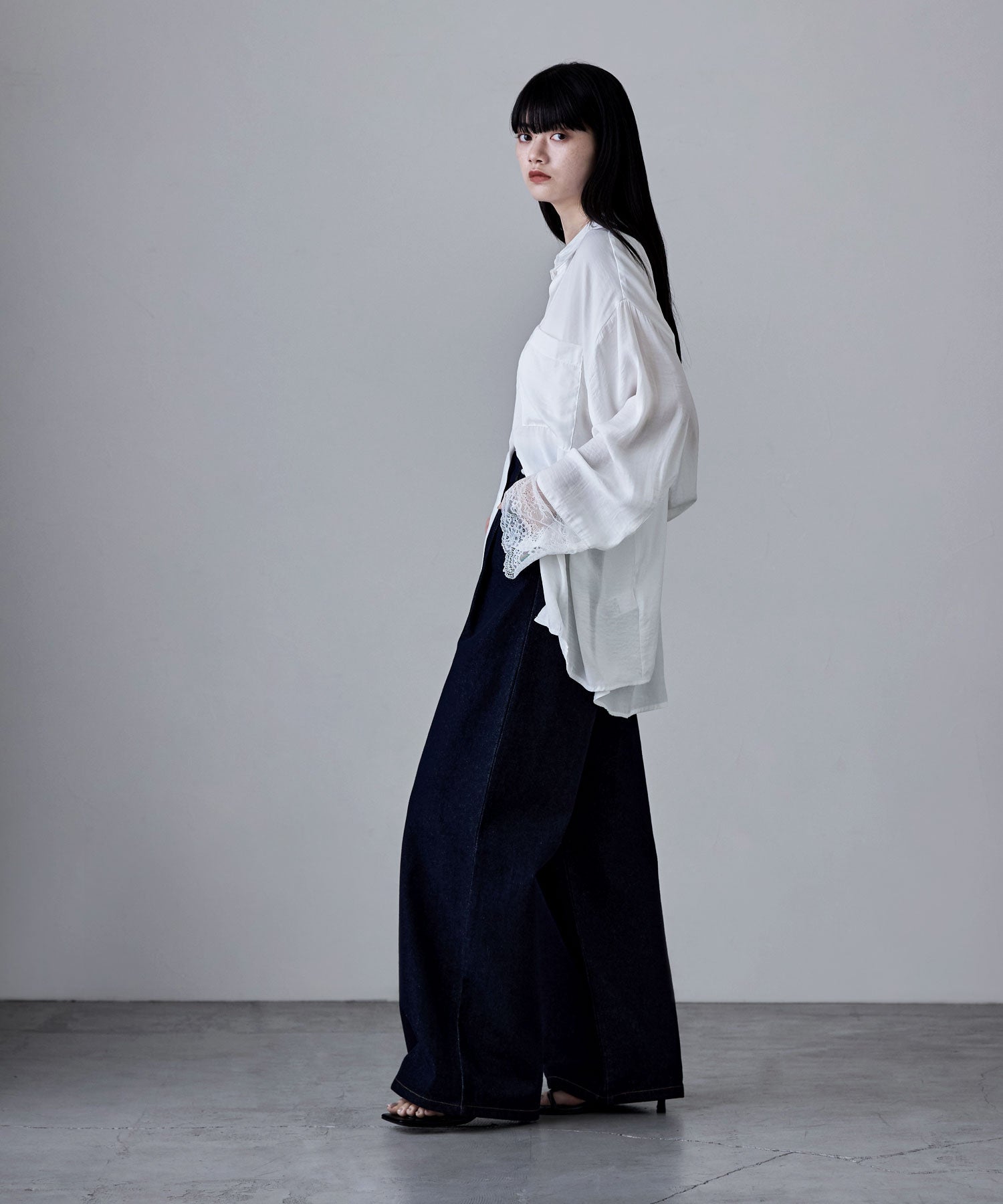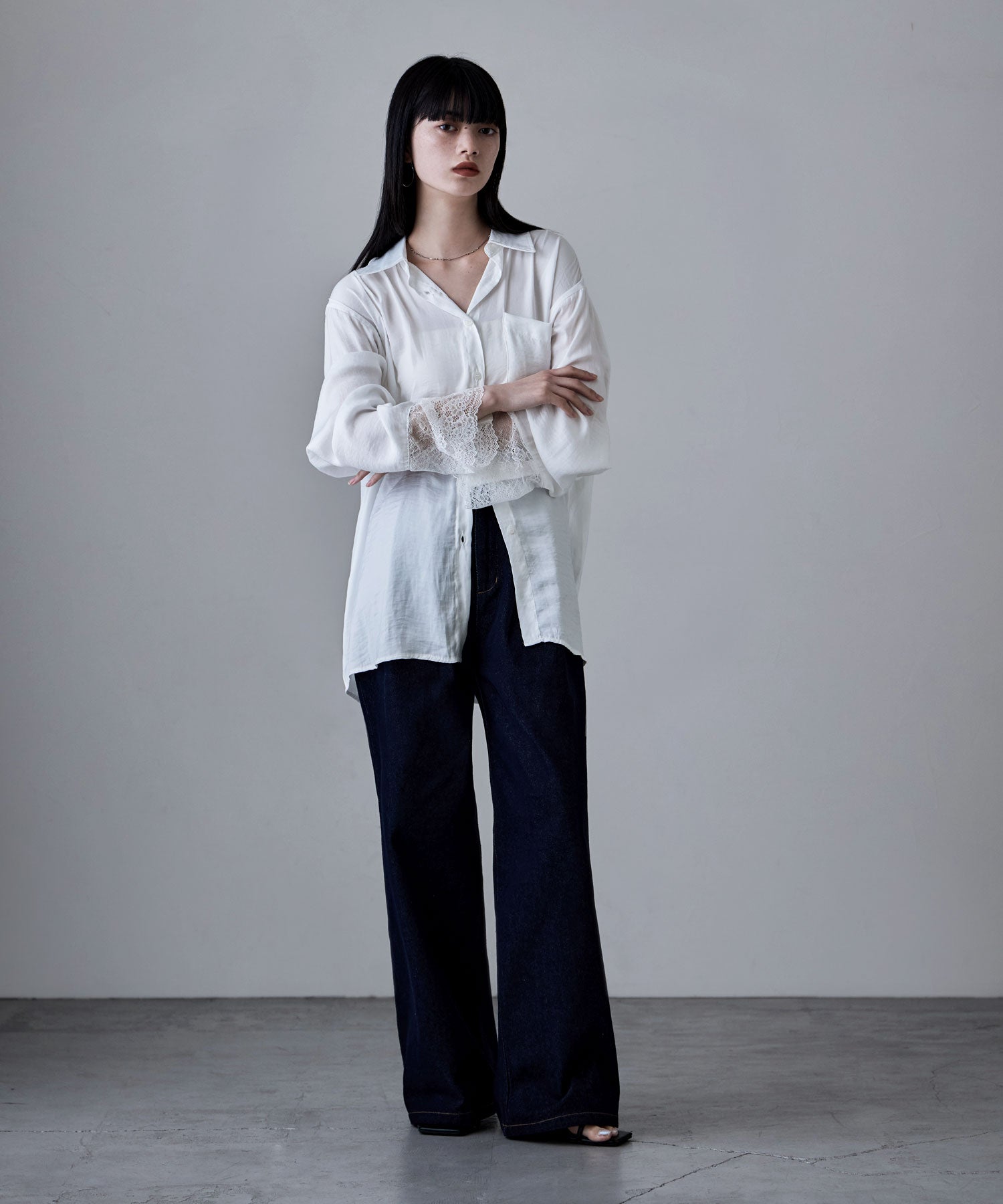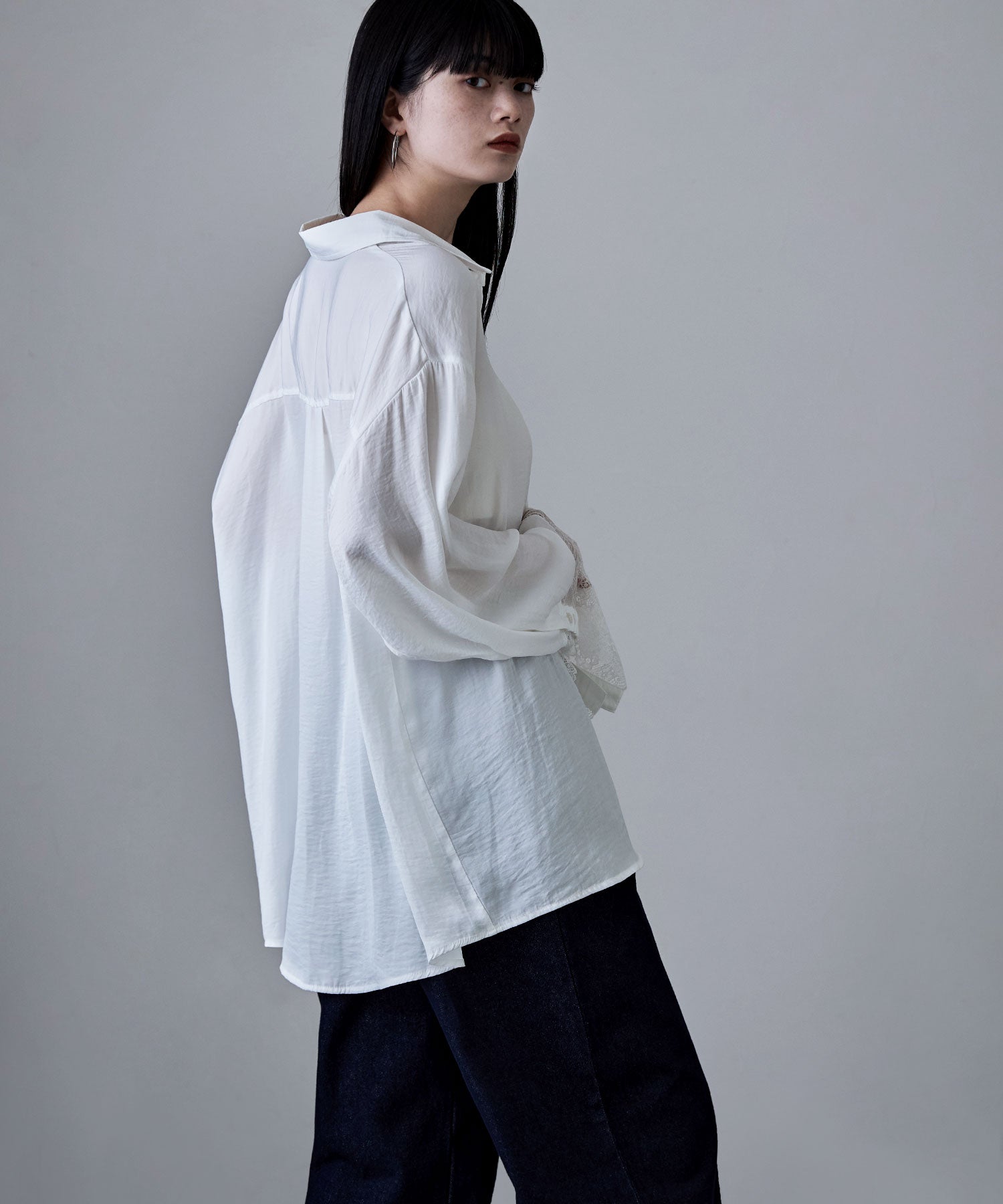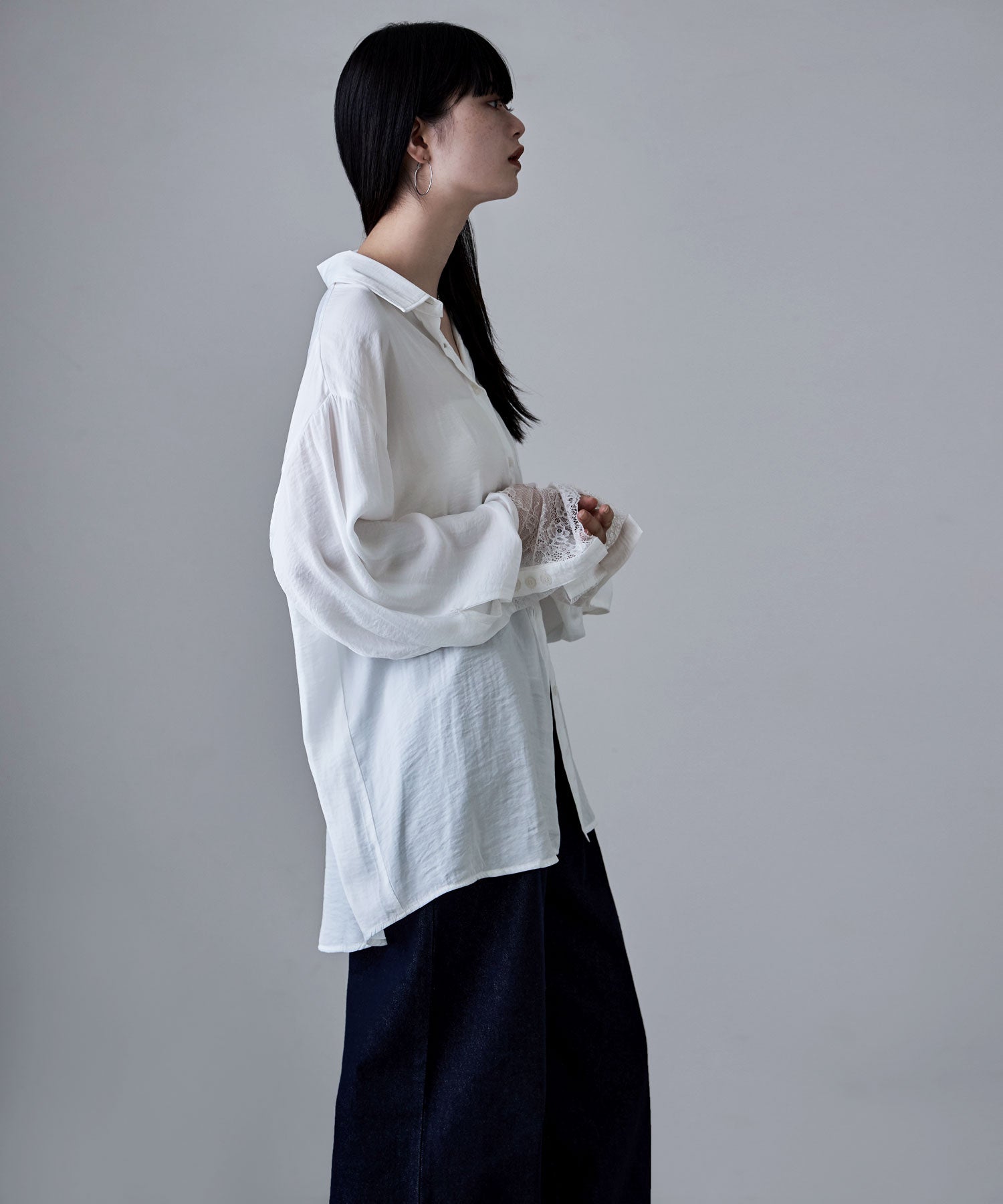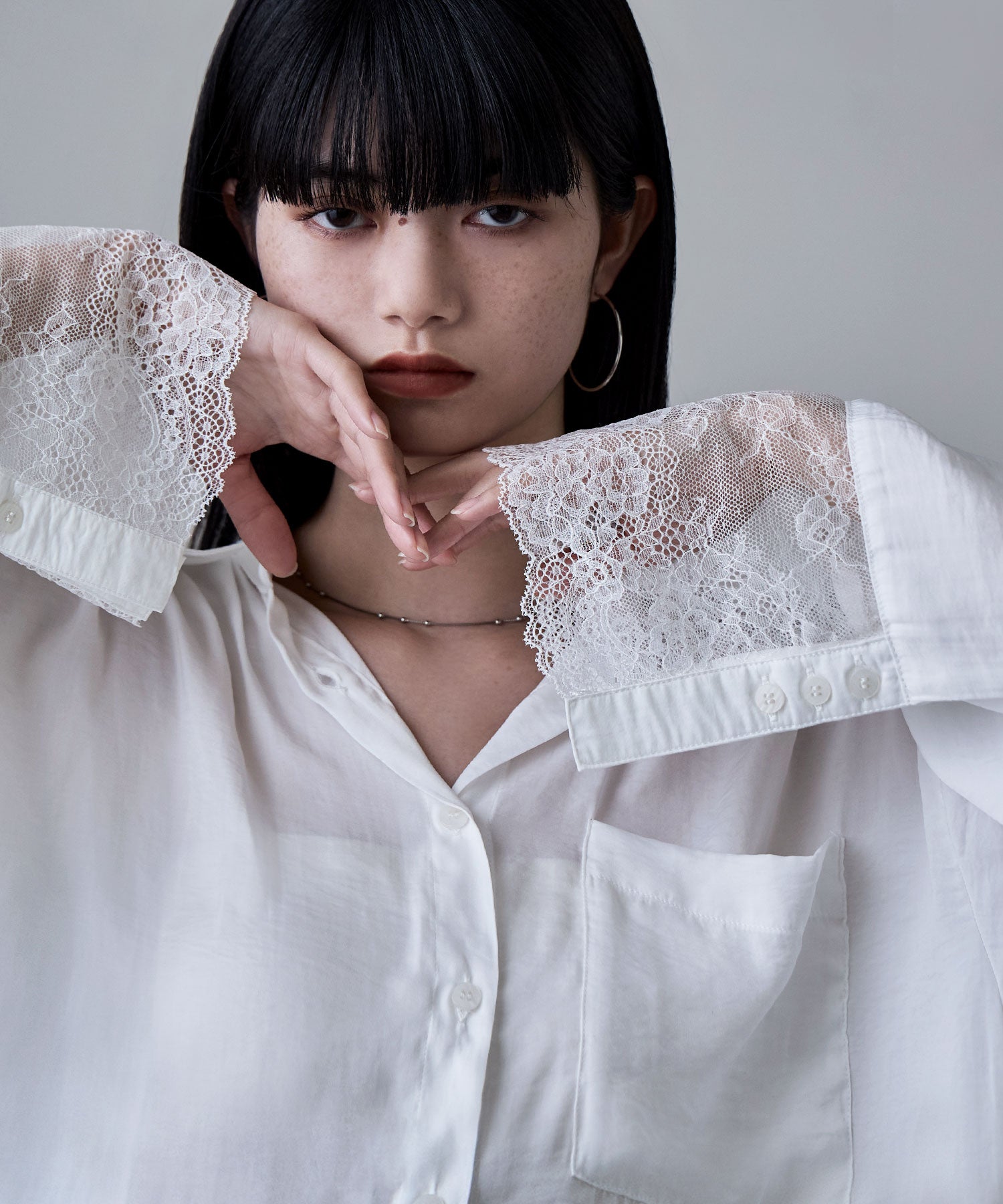 透明感と華やかさを掛け合わせた、レース袖のオーバーシャツ。