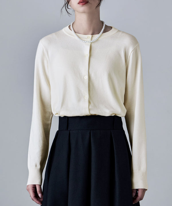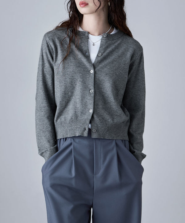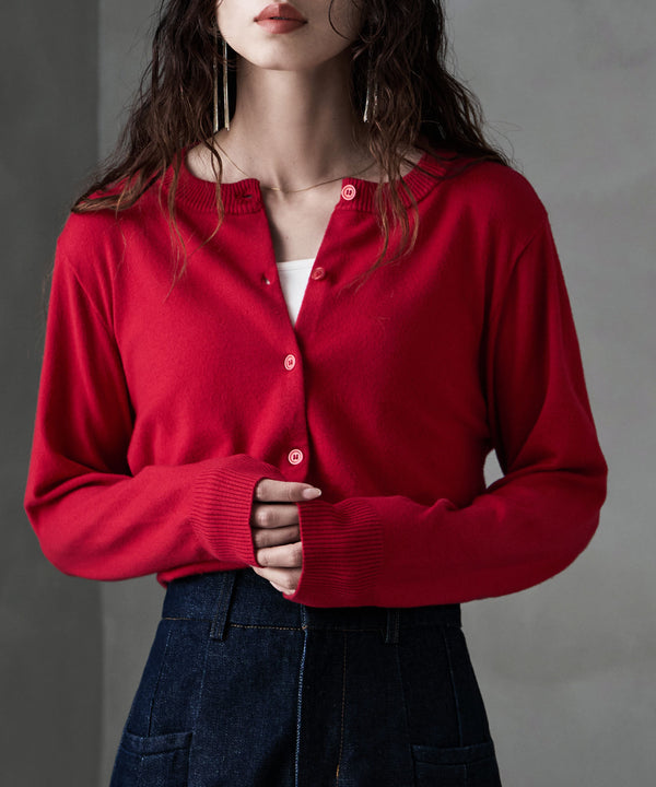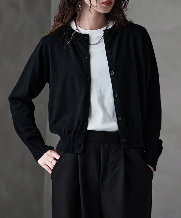 Rname ベーシッククルーネックカーディガン トップス アウター カーディガン カーデ 長袖 ニット カラーカーデ ショート丈 クルーネック 丸首 無地 クロップド丈 チクチクしない 柔らか