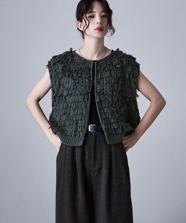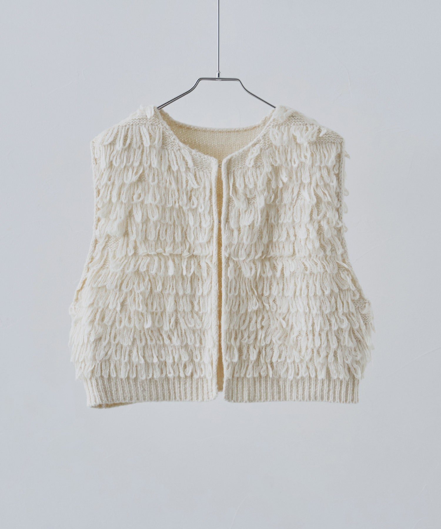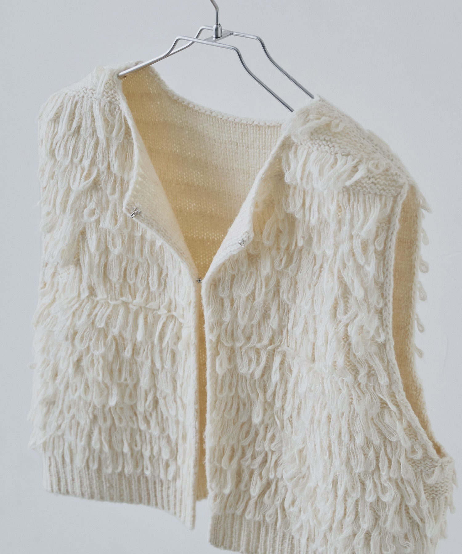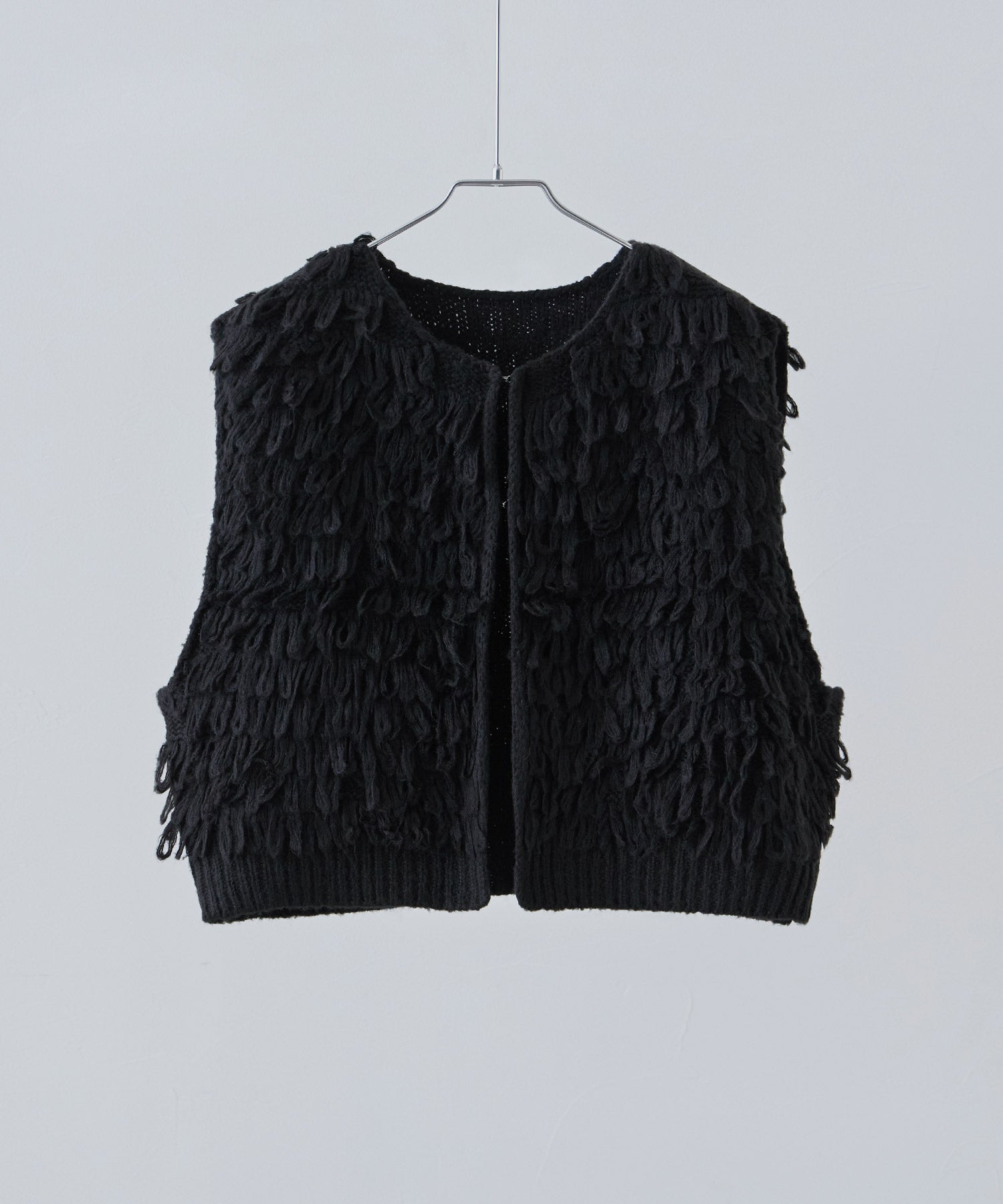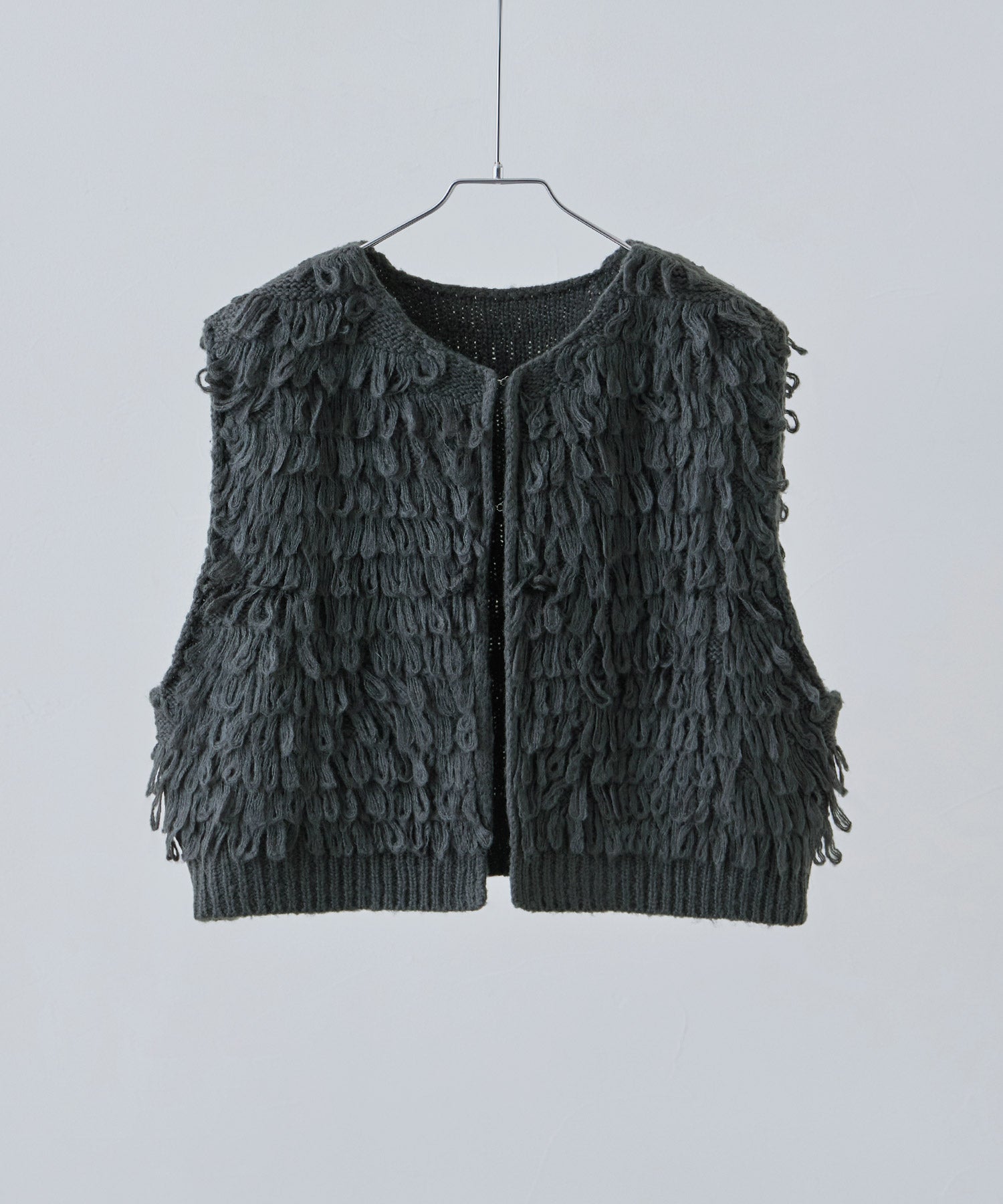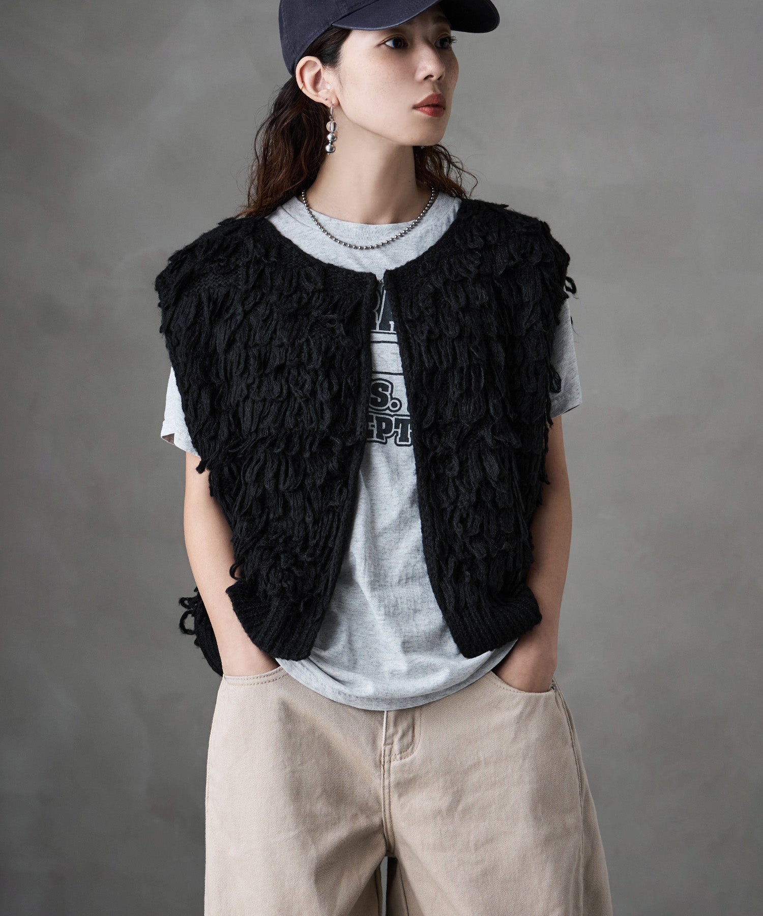 存在感たっぷりのループデザインがアクセントのニットベストの登場です。