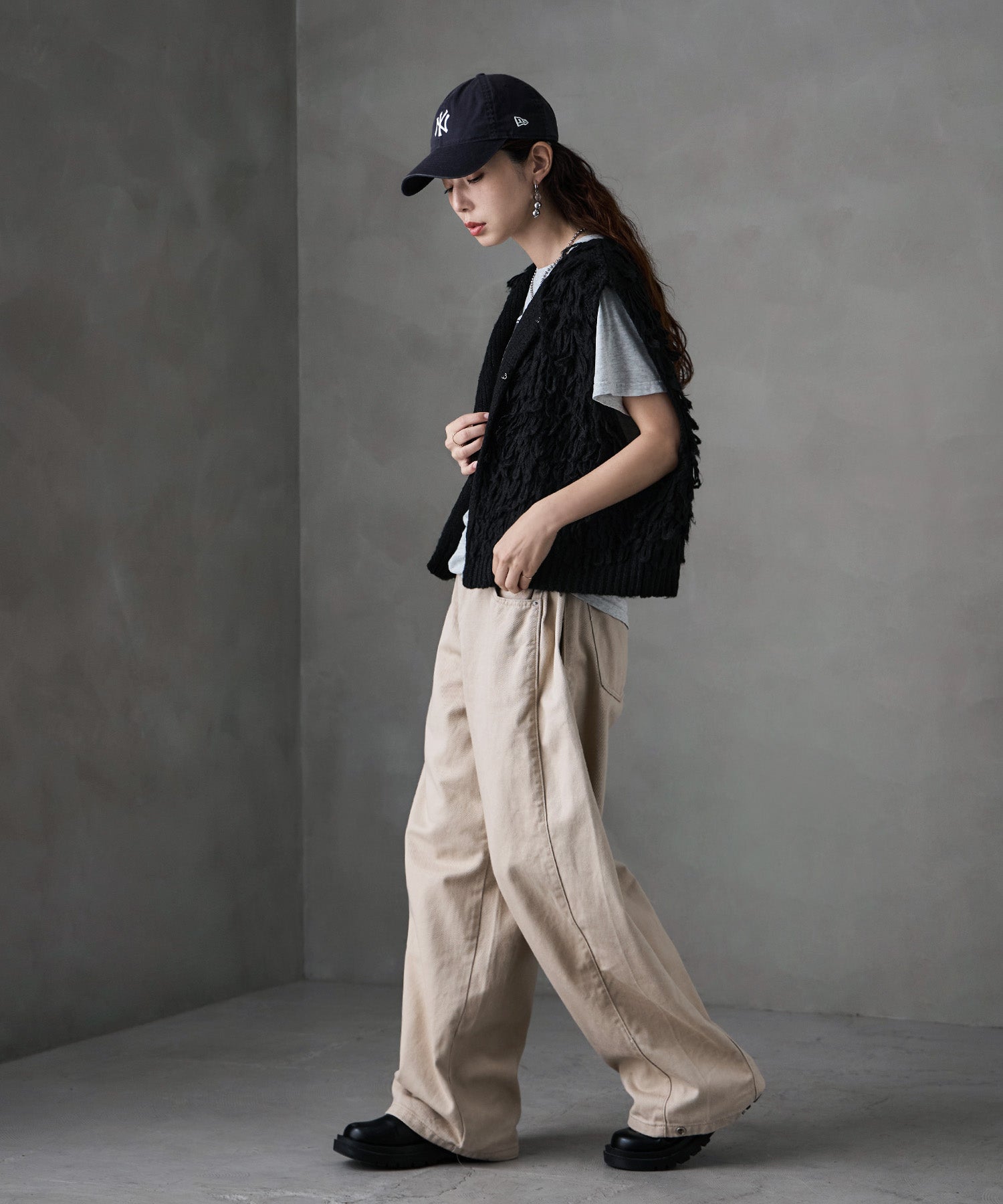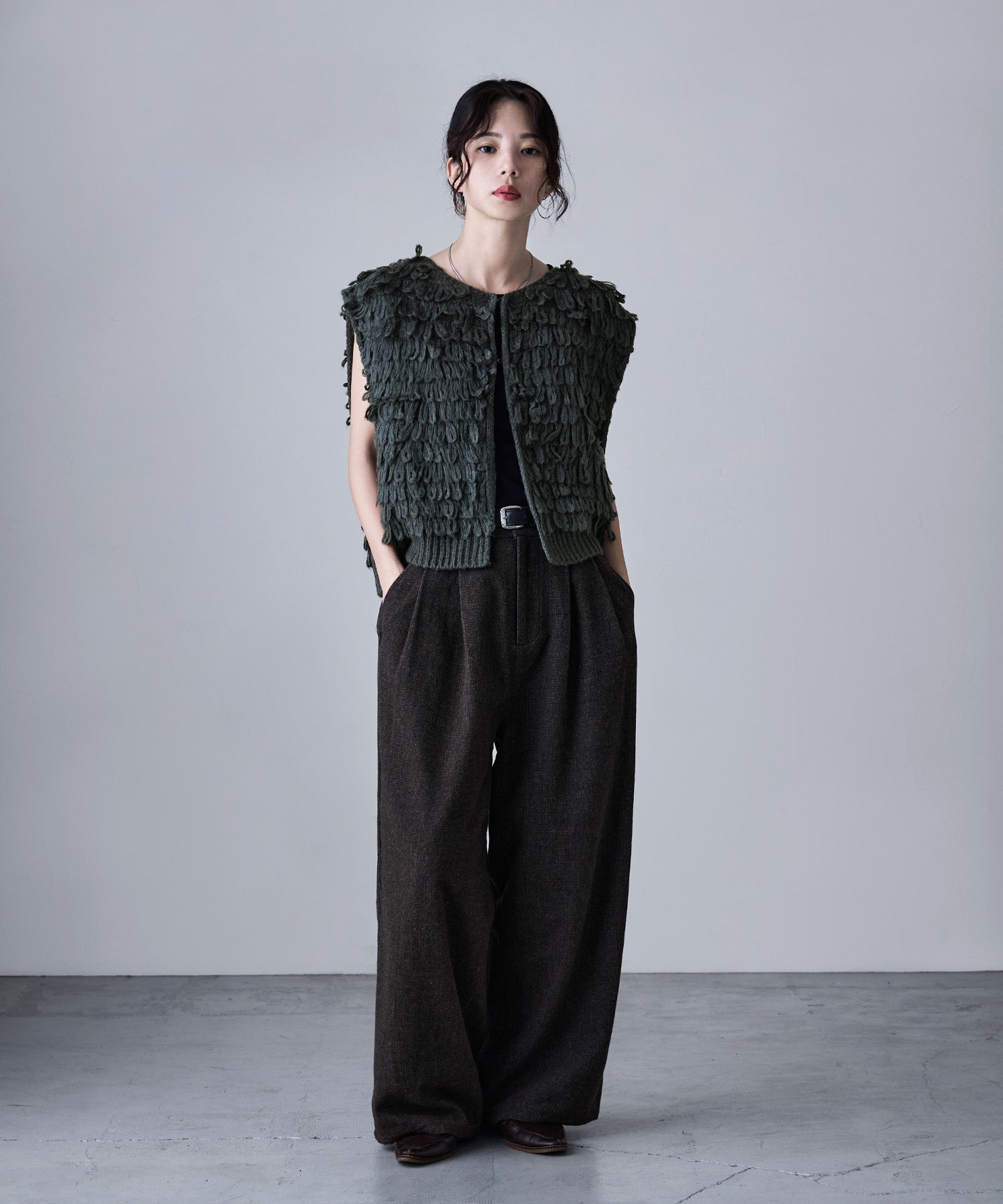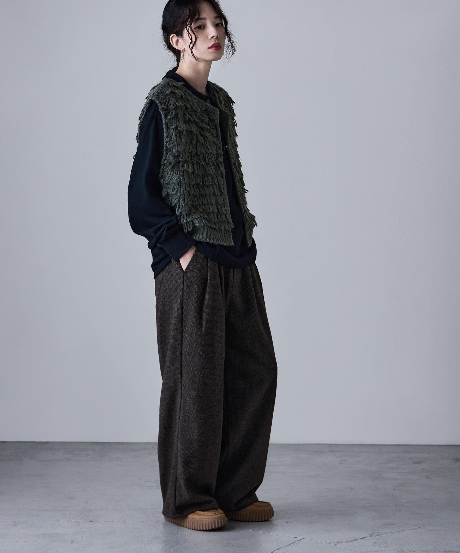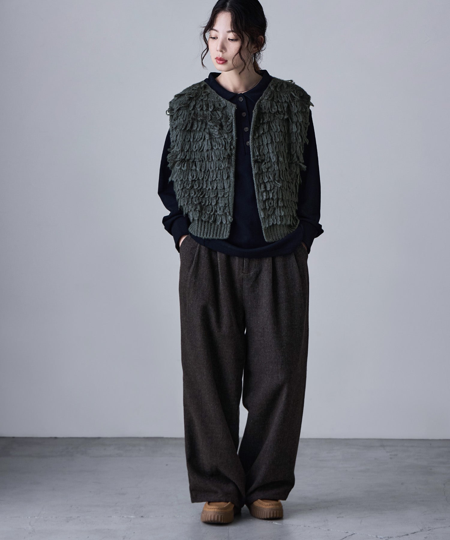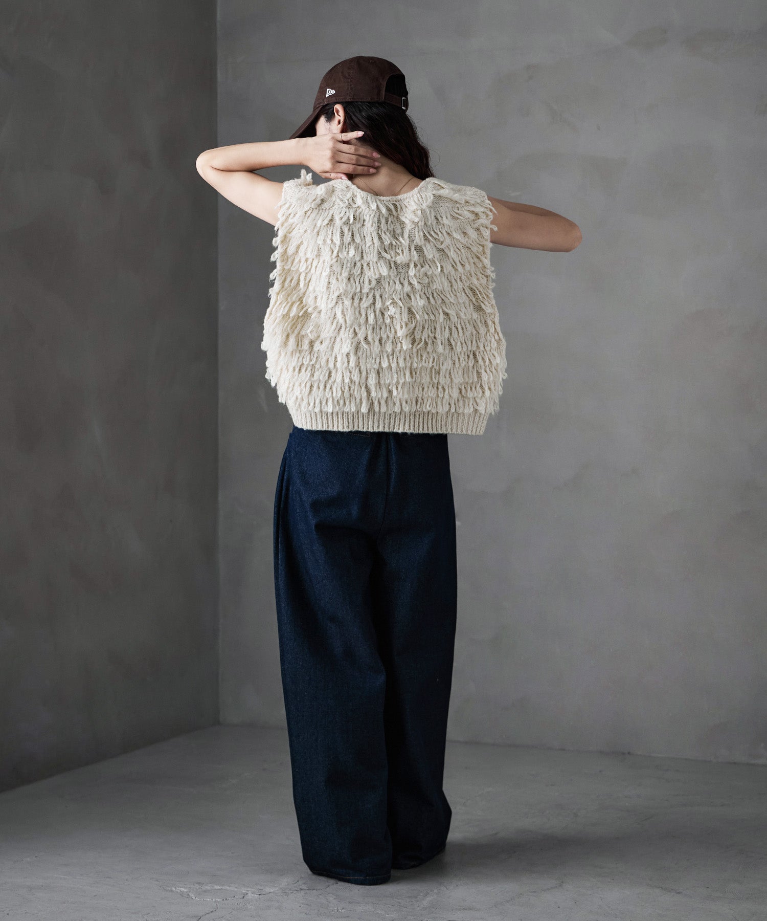 存在感たっぷりのループデザインがアクセントのニットベストの登場です。