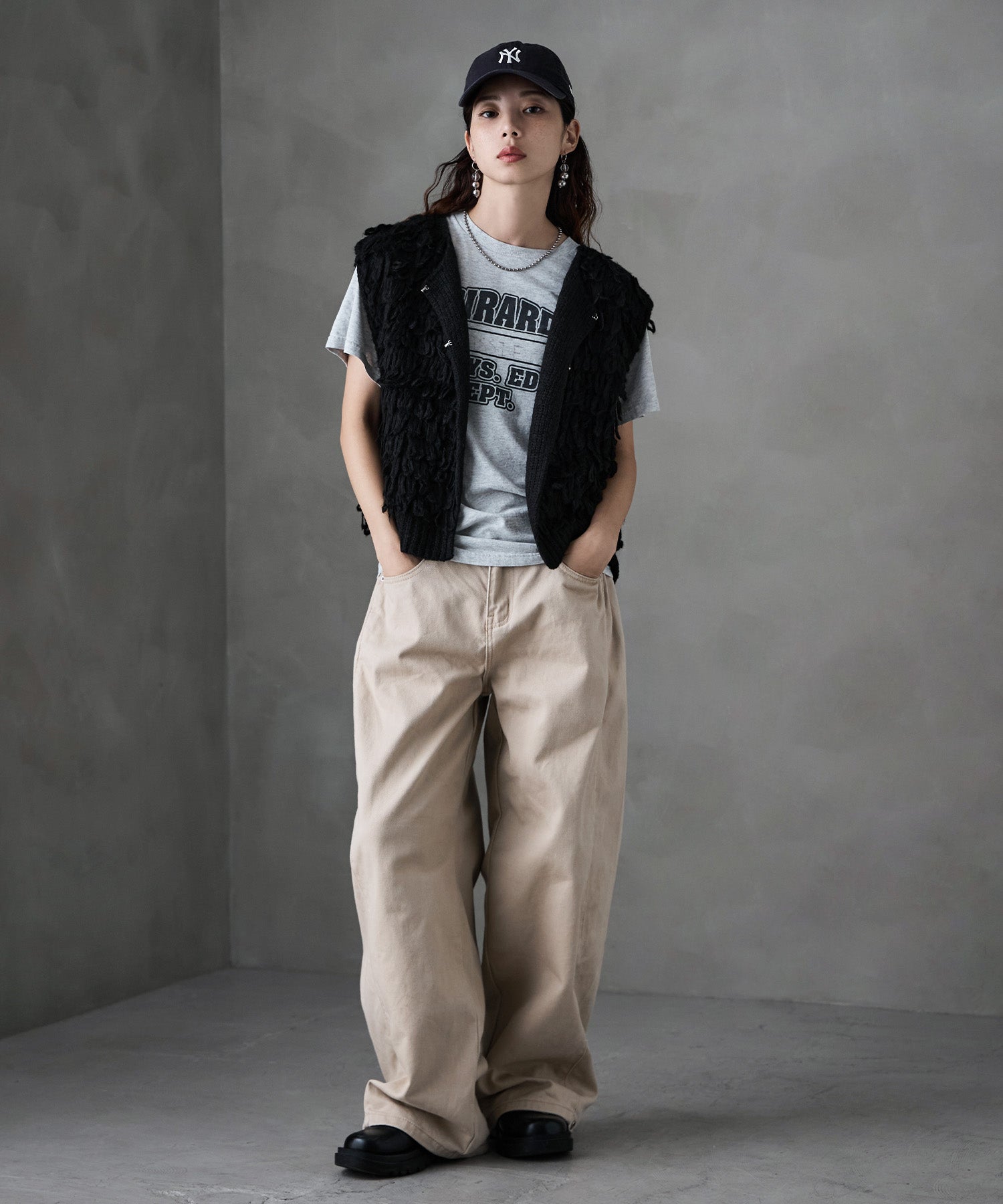 ゆったりと余裕のあるサイジングでシャツやカットソーのレイヤードのしやすさはもちろん、