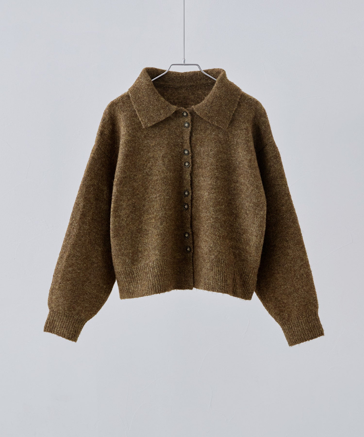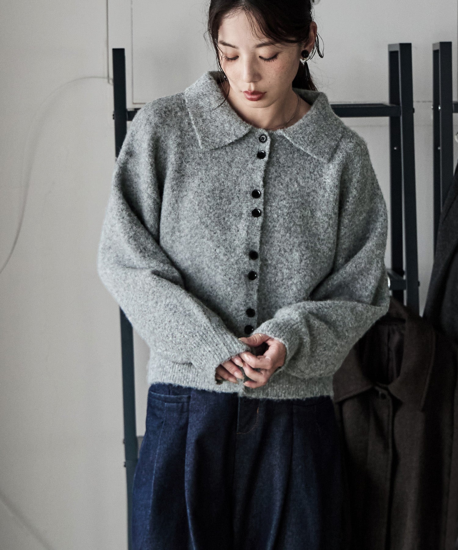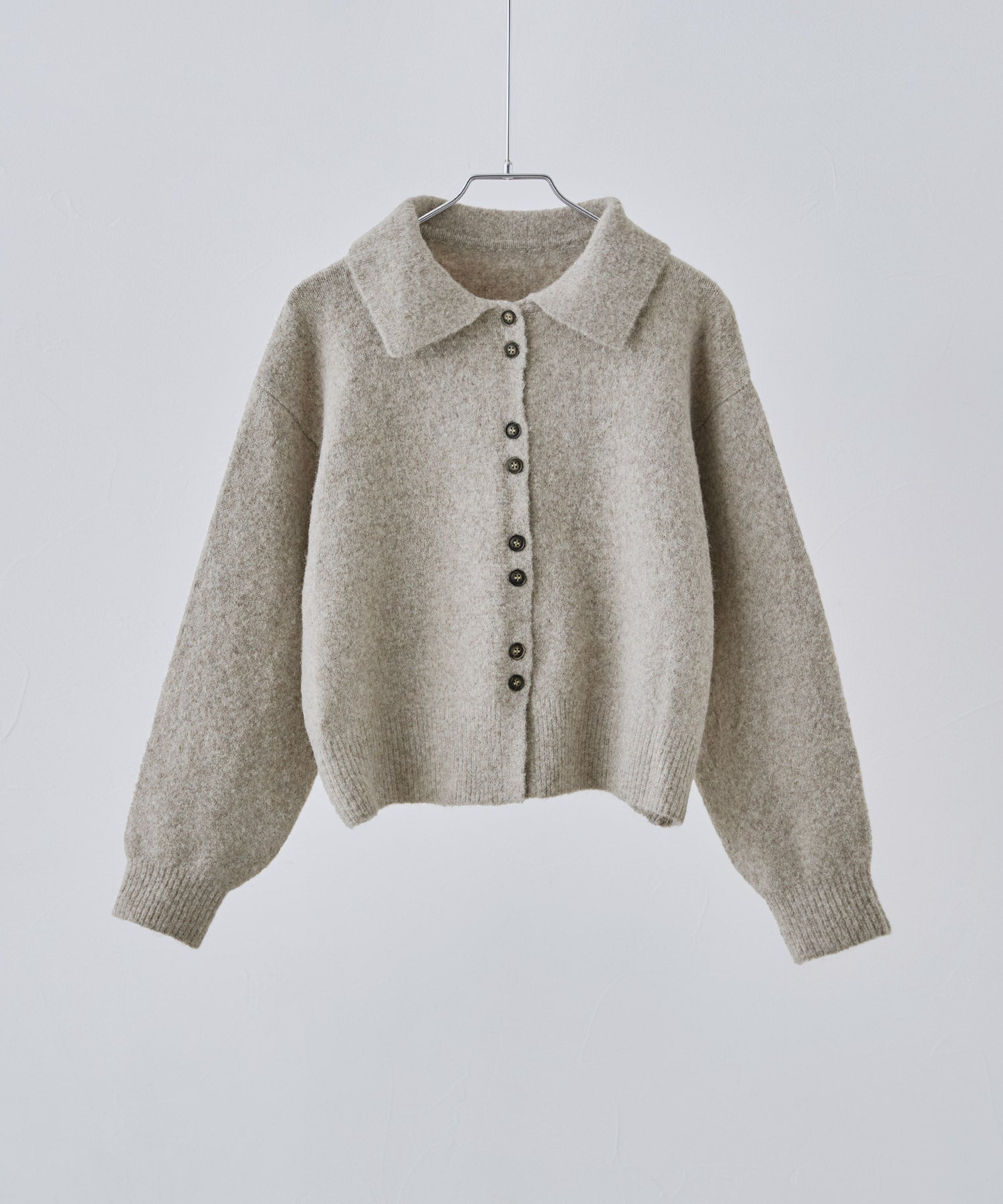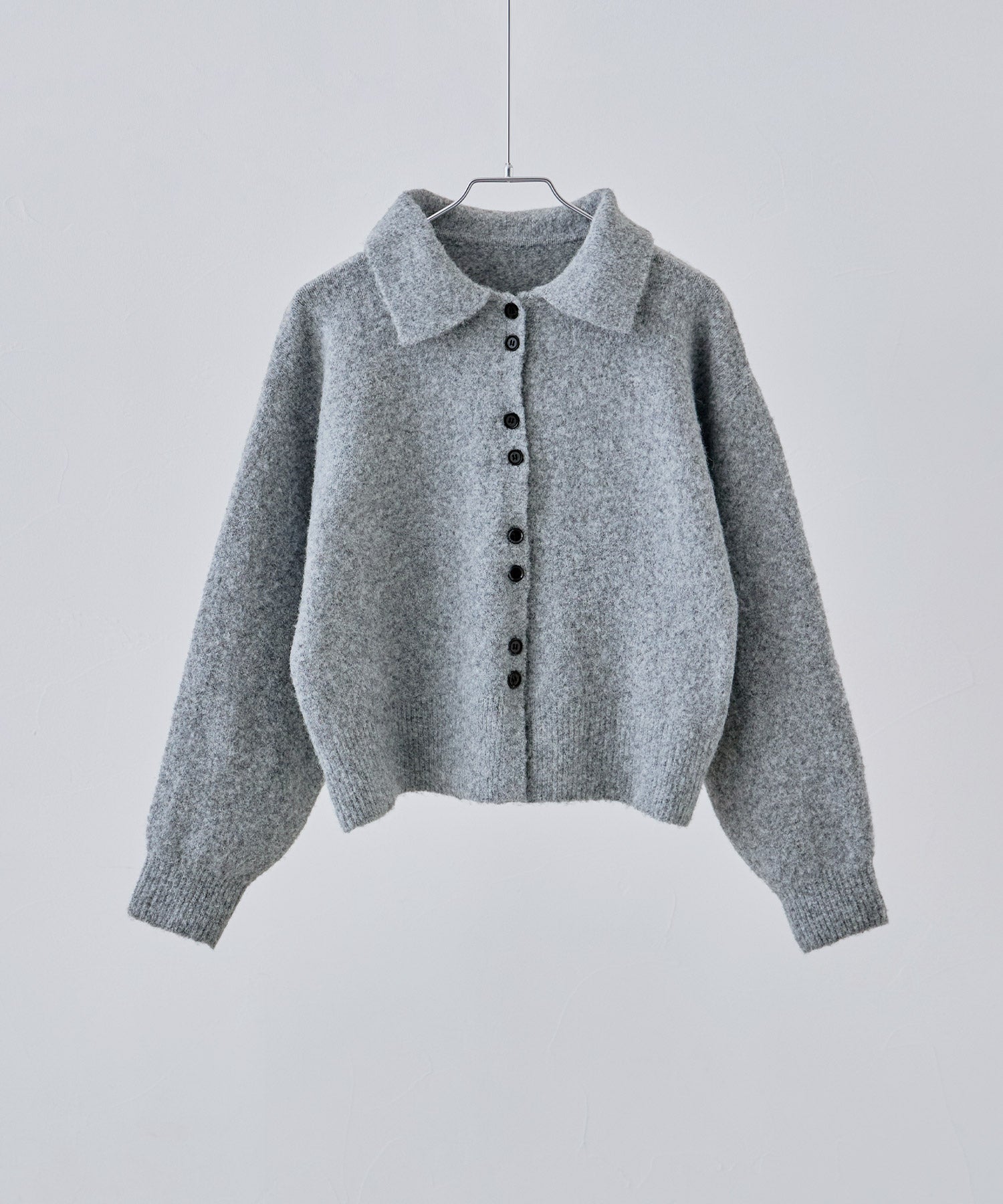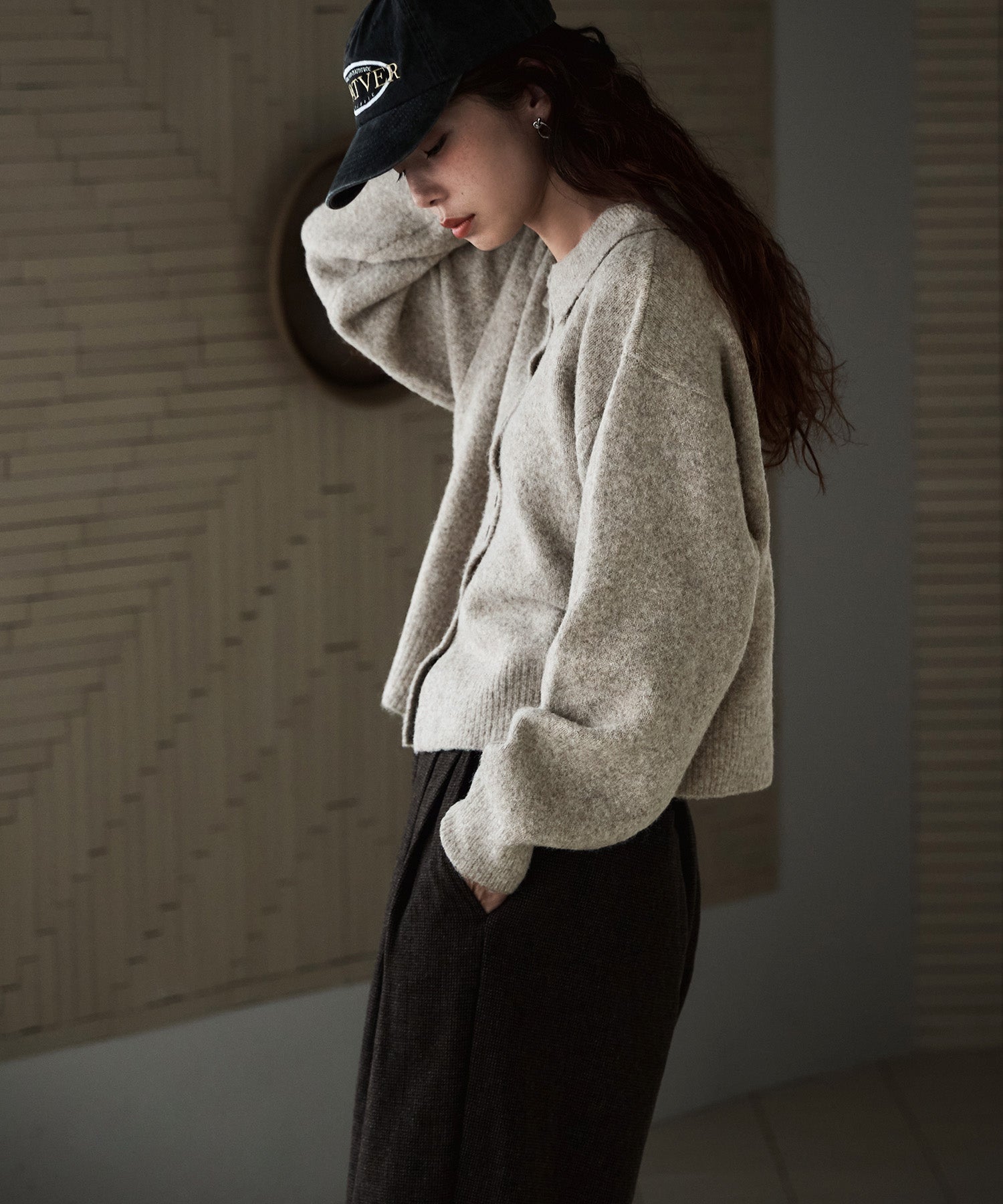 ニットの柔らかな素材感とスマートな襟デザインでこなれる、ショート丈のニットカーディガン。