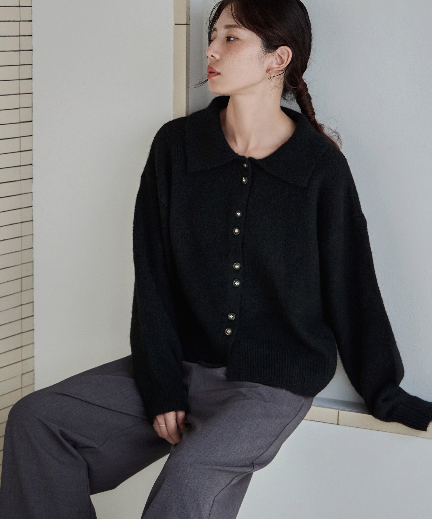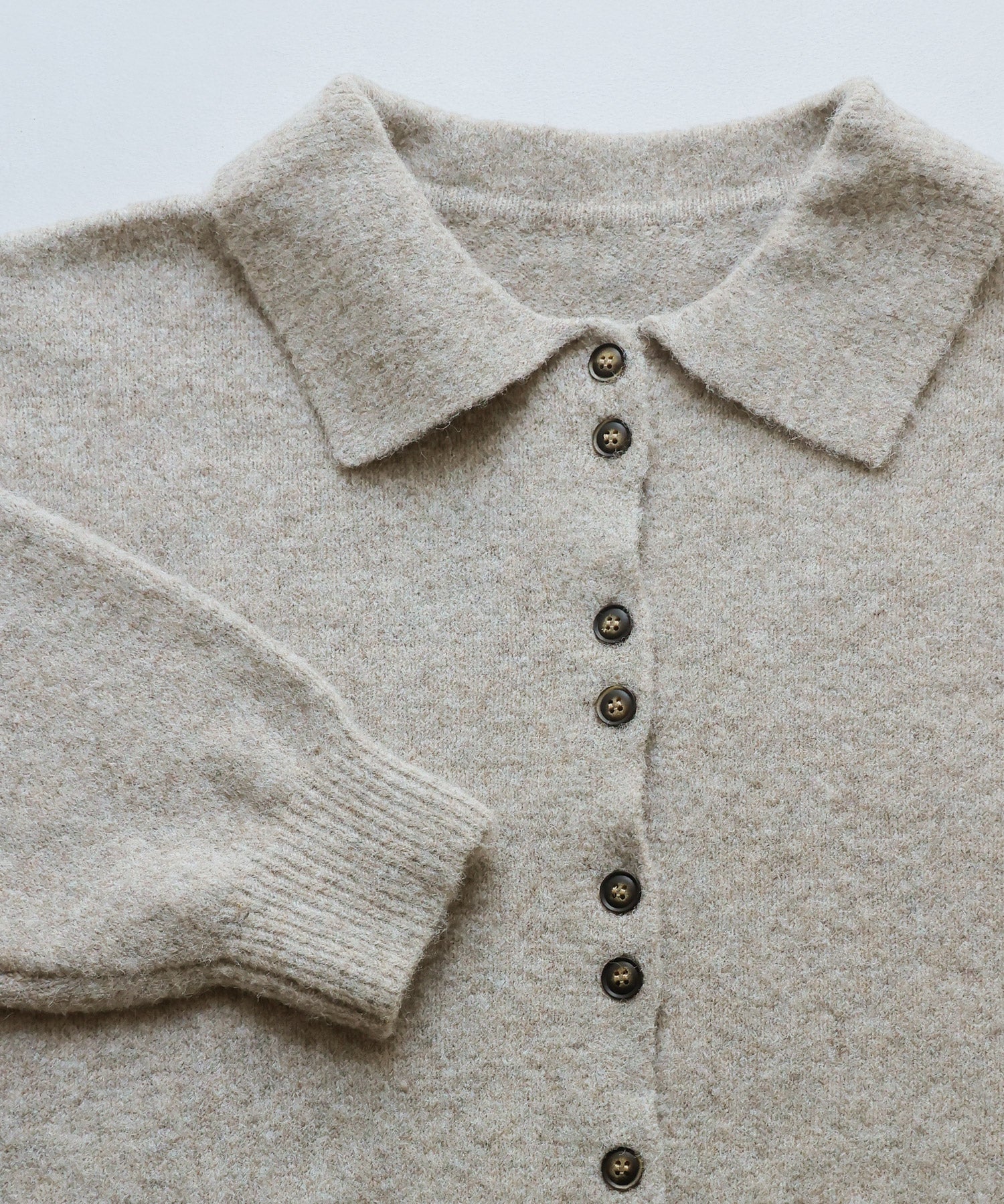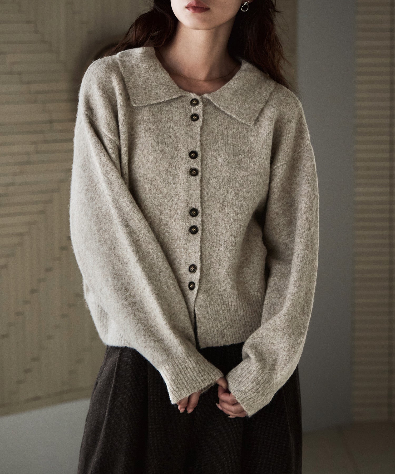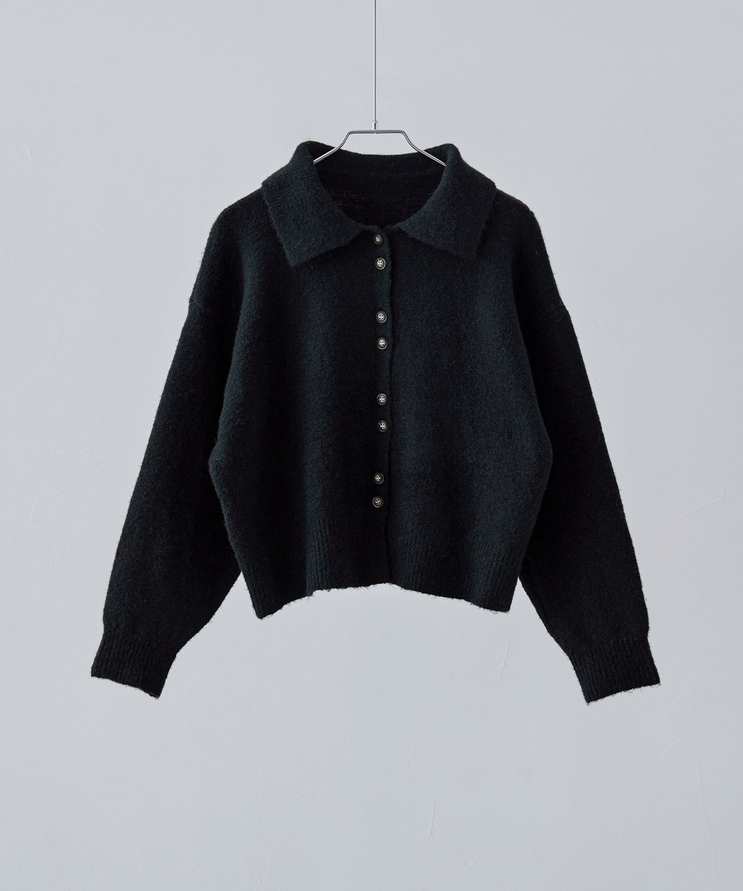 ニットの柔らかな素材感とスマートな襟デザインでこなれる、ショート丈のニットカーディガン。