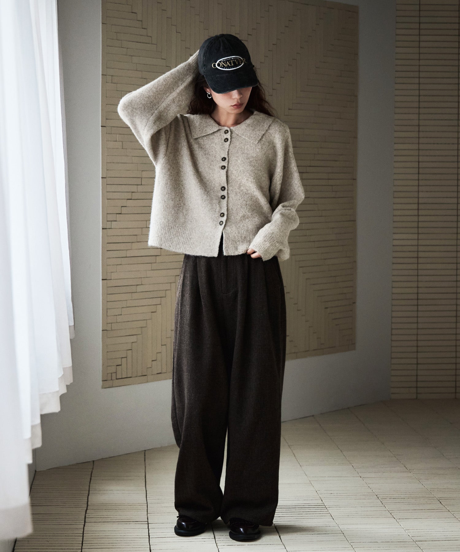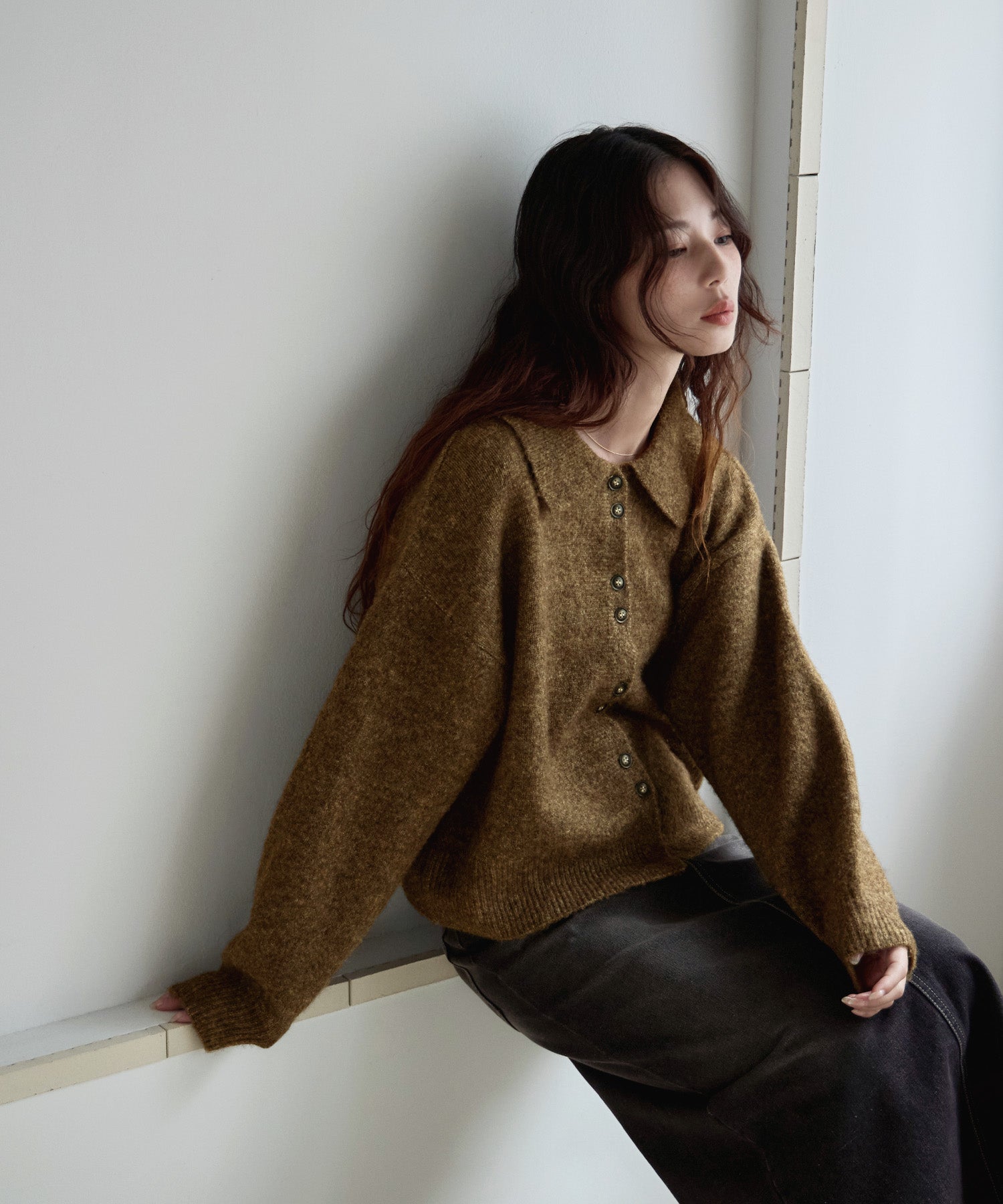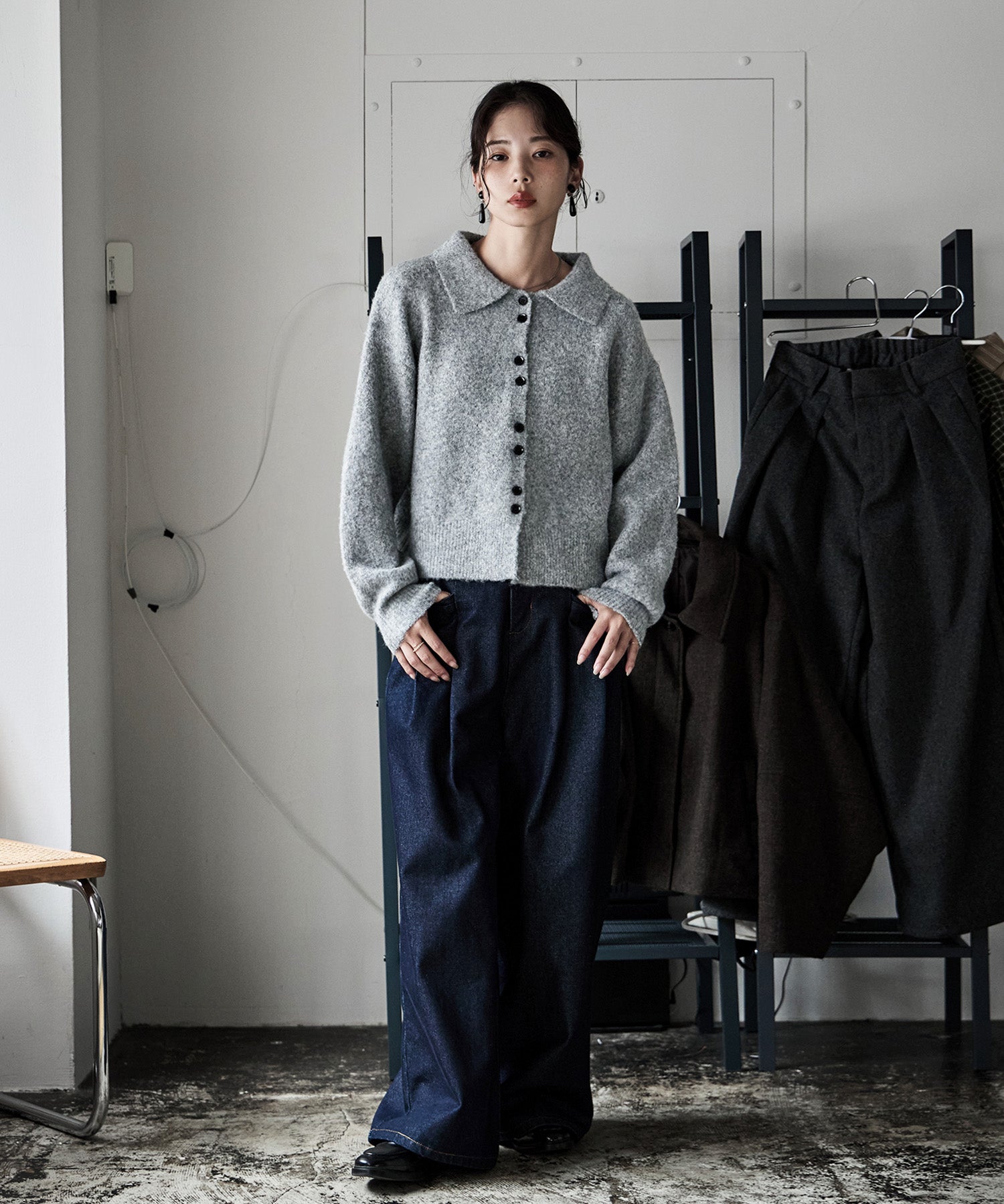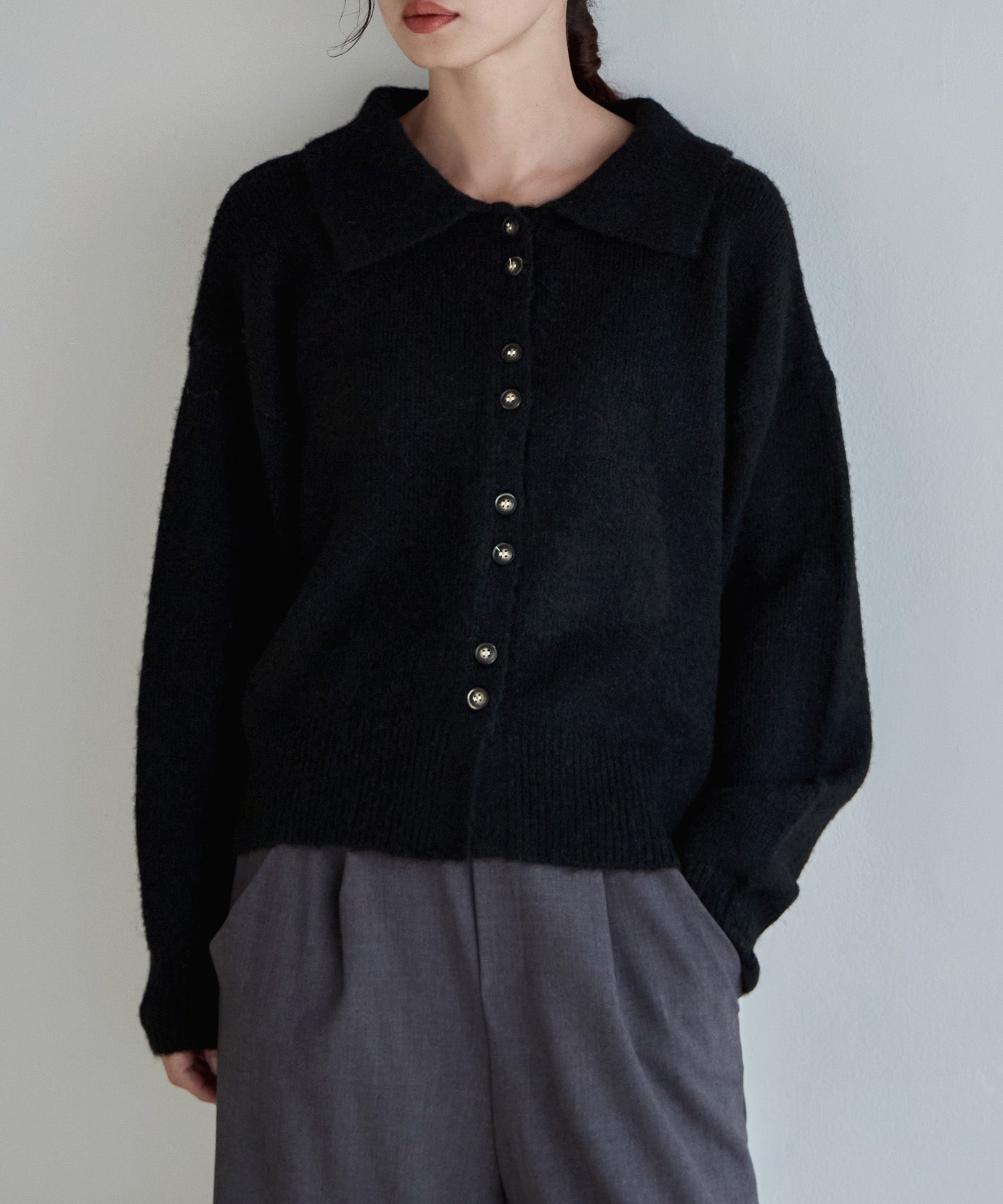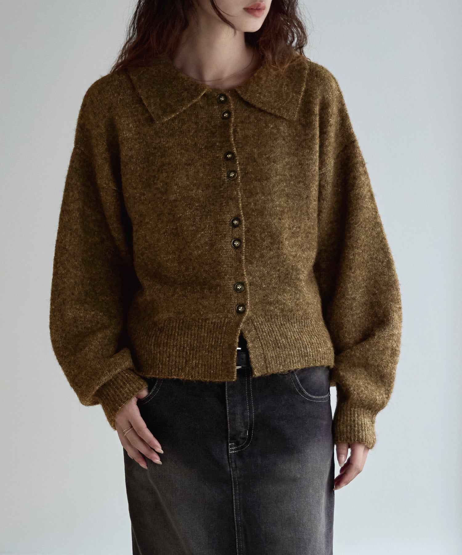 ニットの柔らかな素材感とスマートな襟デザインでこなれる、ショート丈のニットカーディガン。