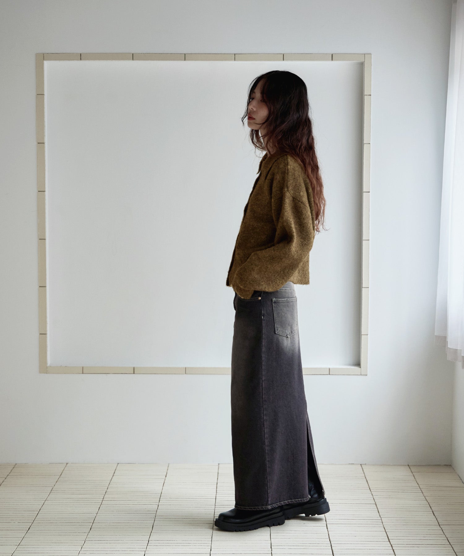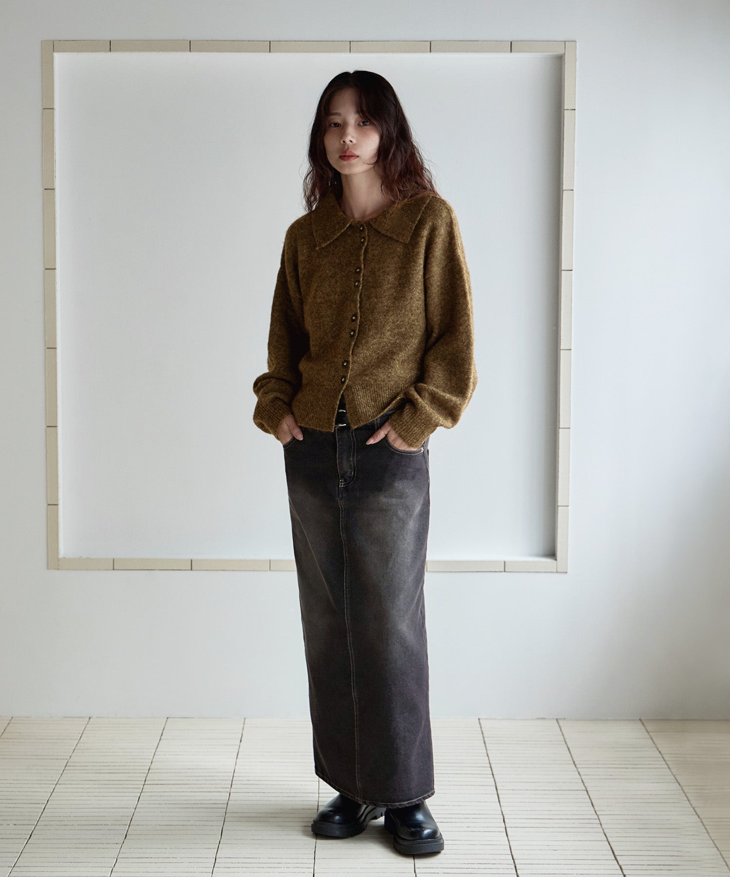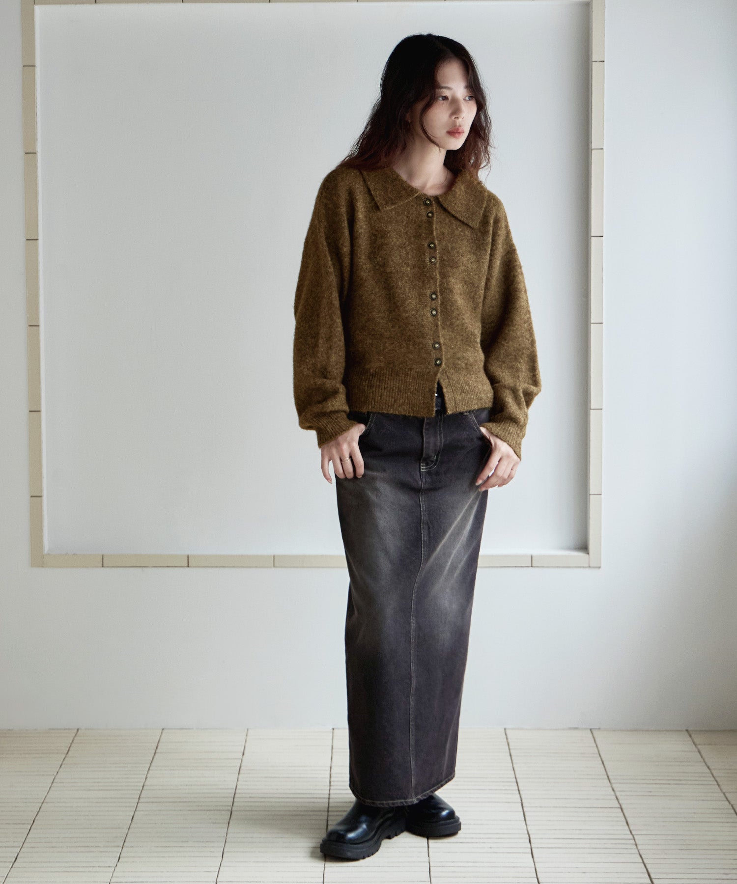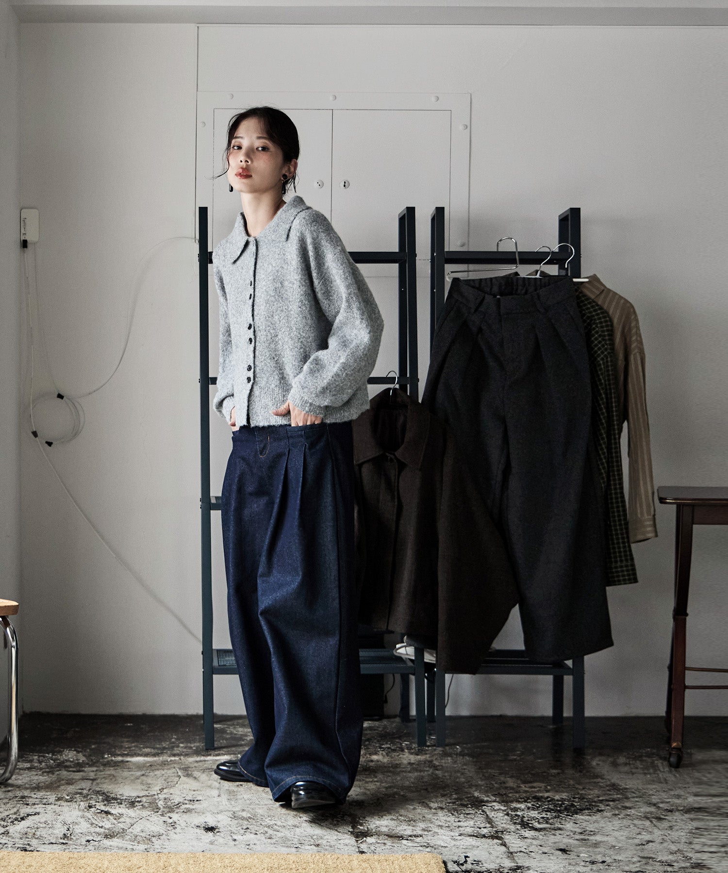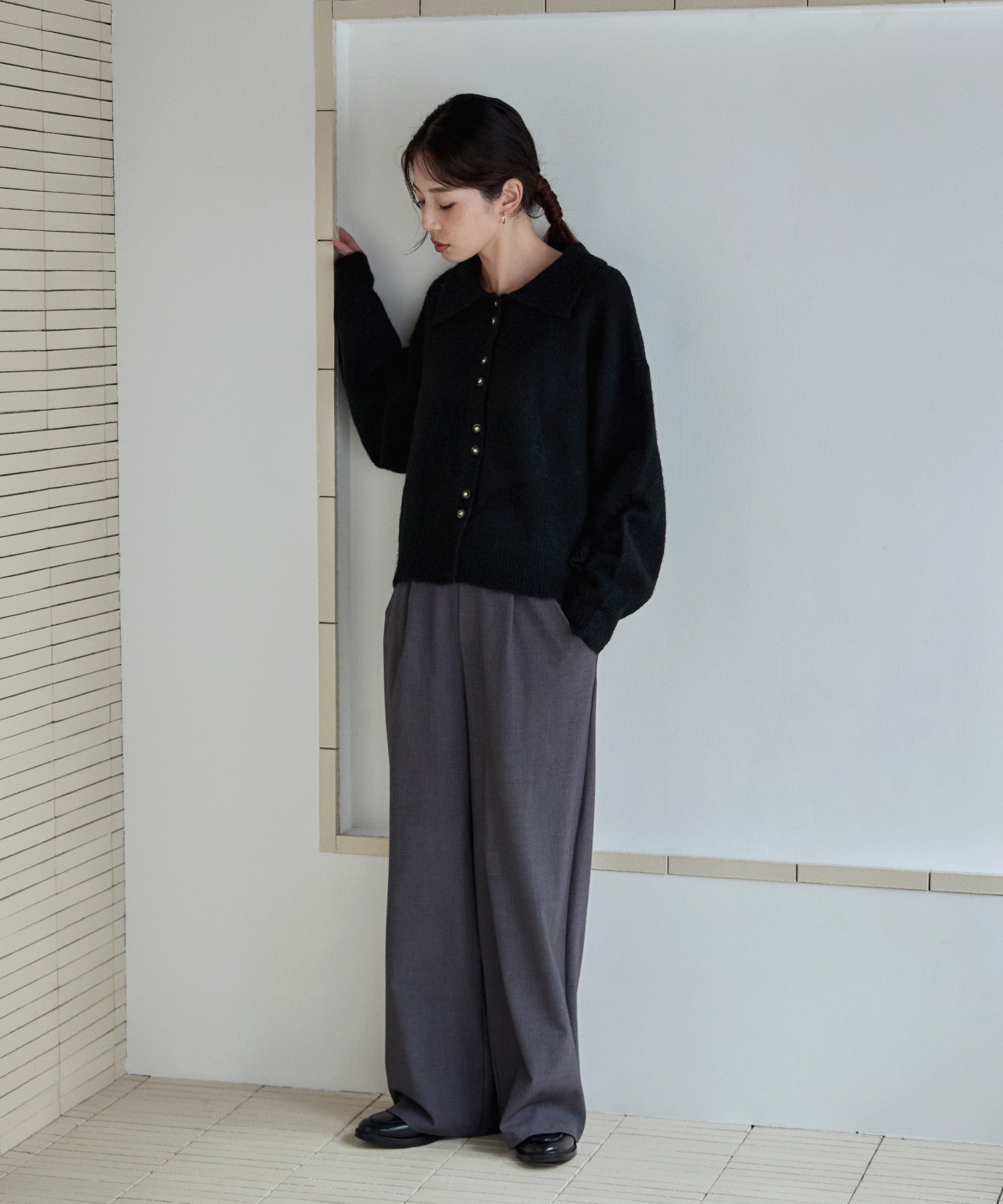 ニットの柔らかな素材感とスマートな襟デザインでこなれる、ショート丈のニットカーディガン。