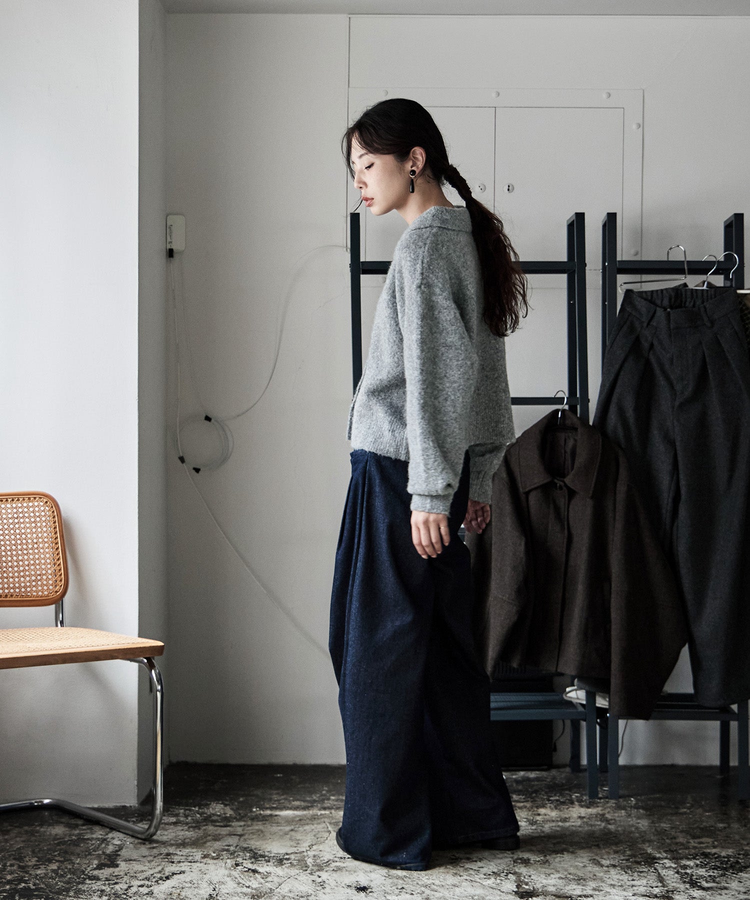 くたっと落ちる生地は、ボリューミーになりがちなニットに女性らしい骨感を残し、ゆるっと華奢見えへと導いてくれます。