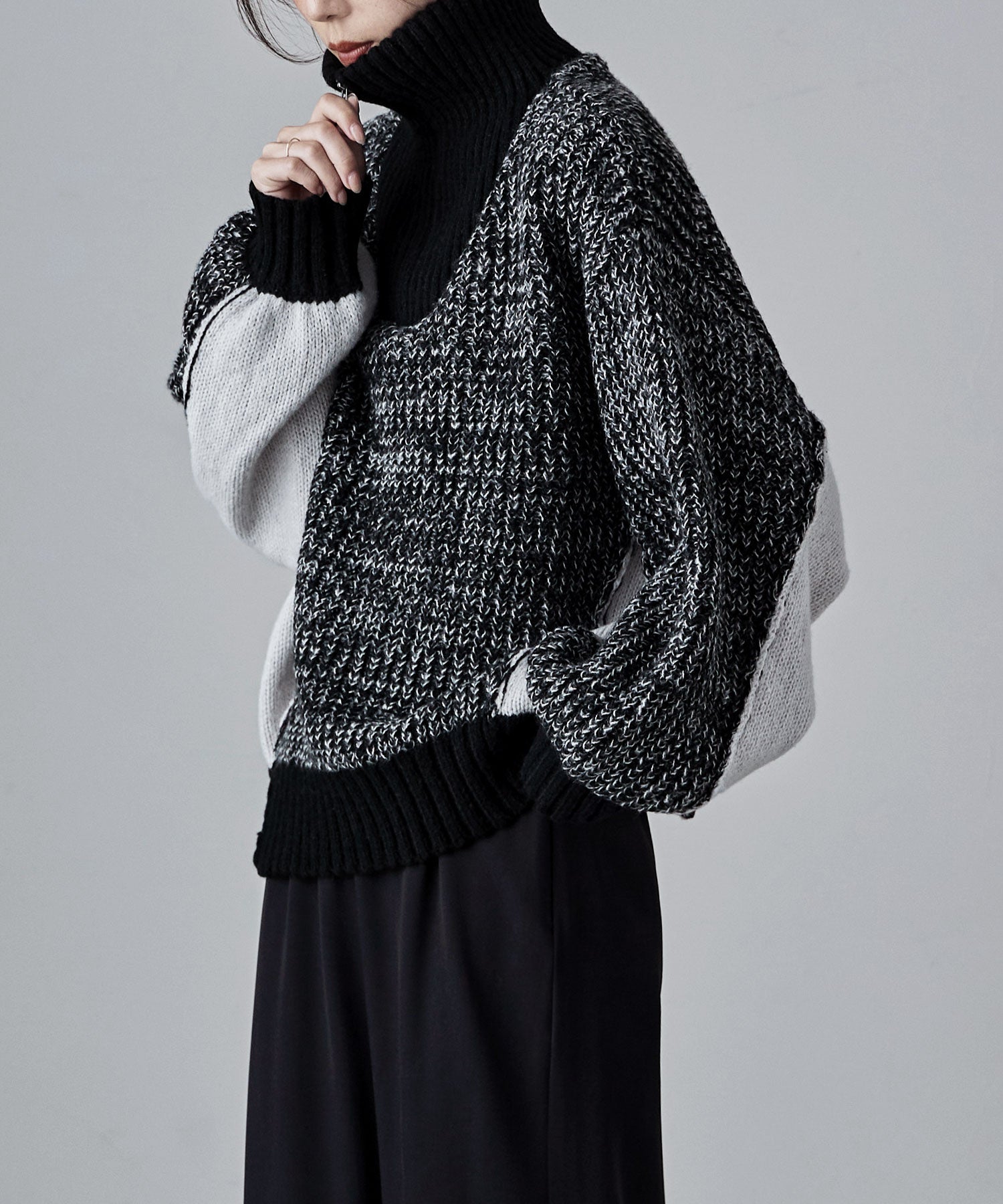 Rname バイカラーハーフジップニット トップス ニット セーター 長袖 プルオーバー ハイネック タートルネック ハーフジップ ビッグシルエット ドルマン バイカラー ZIP ファスナー オーバーサイズ