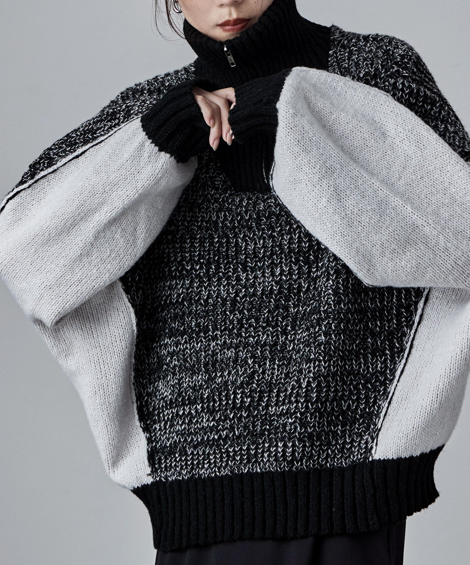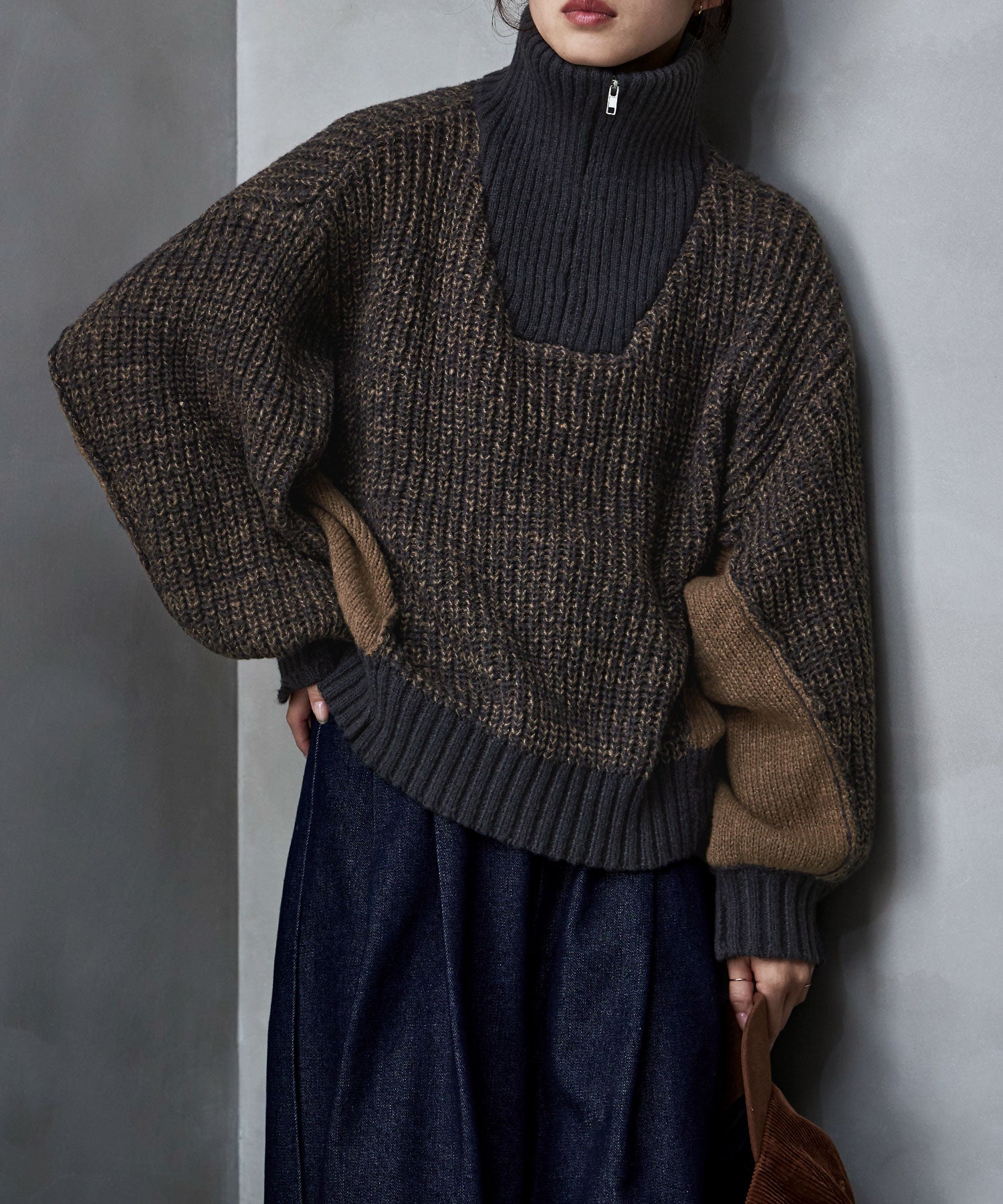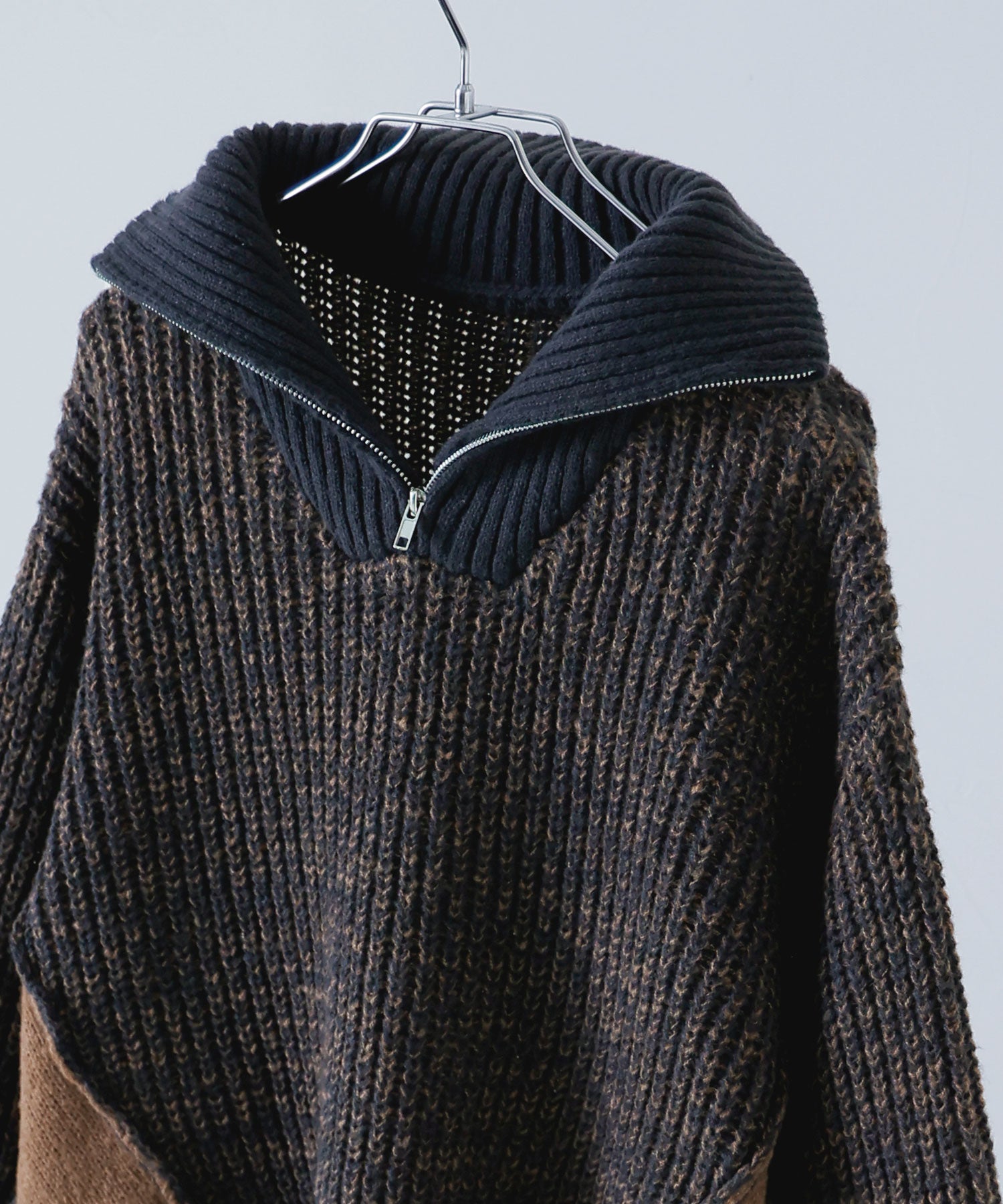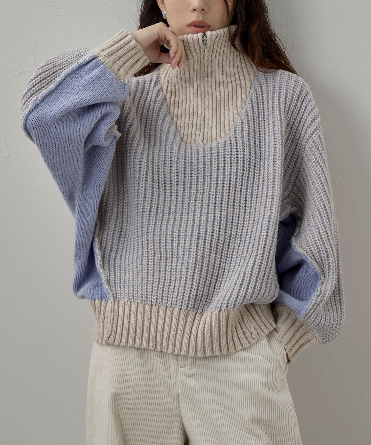 Zname バイカラーハーフジップニット