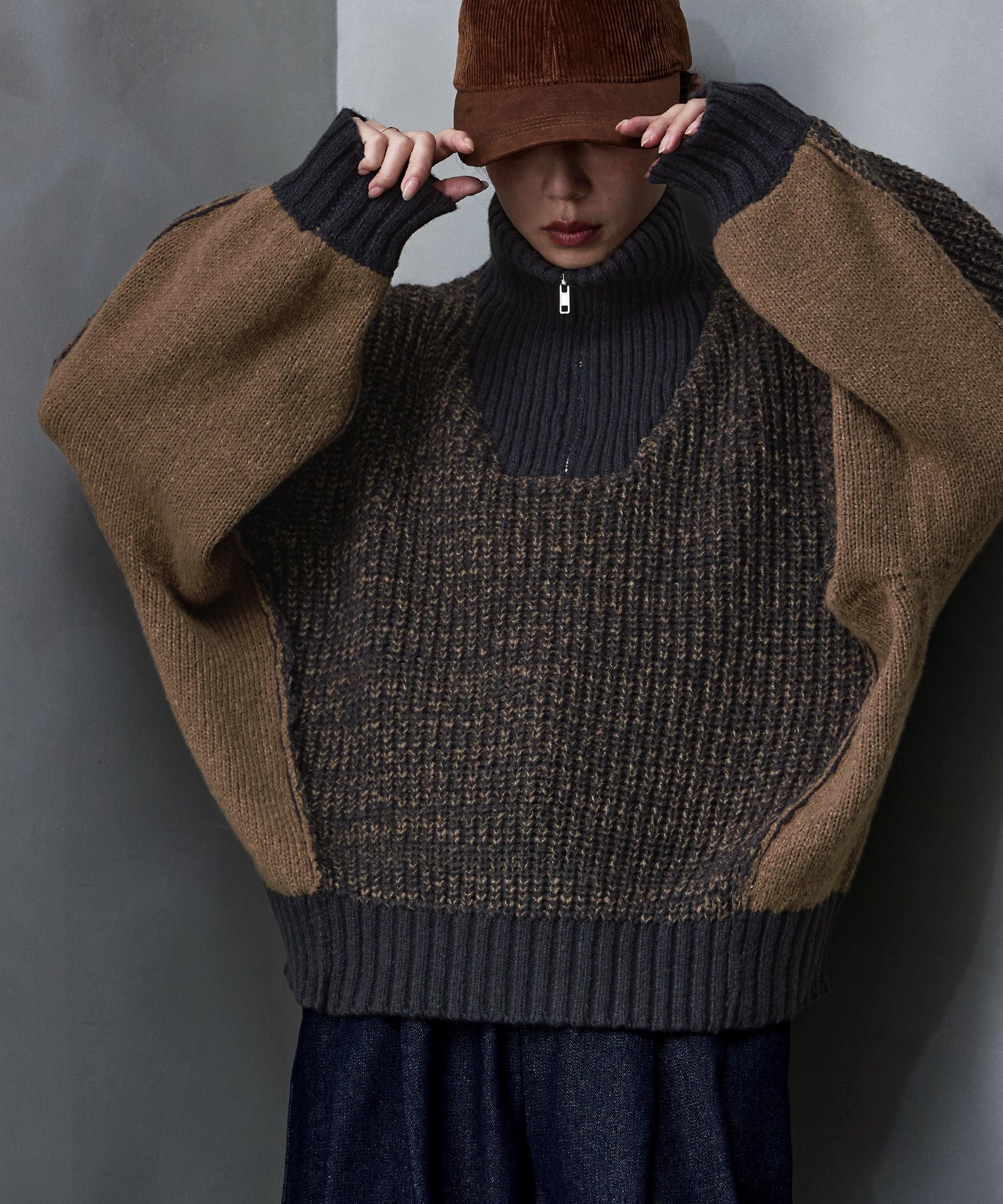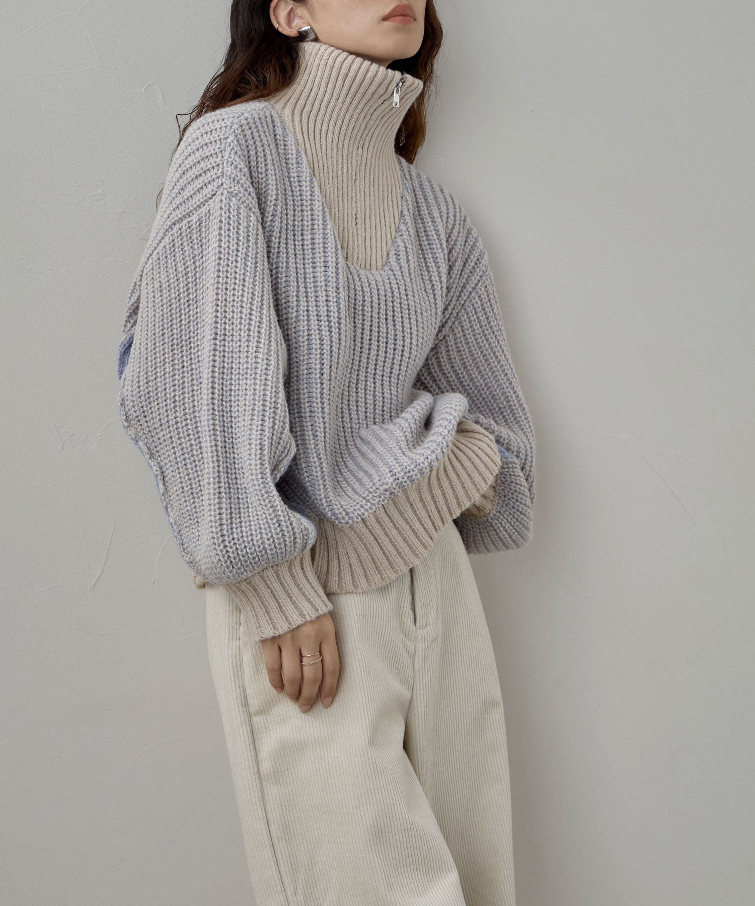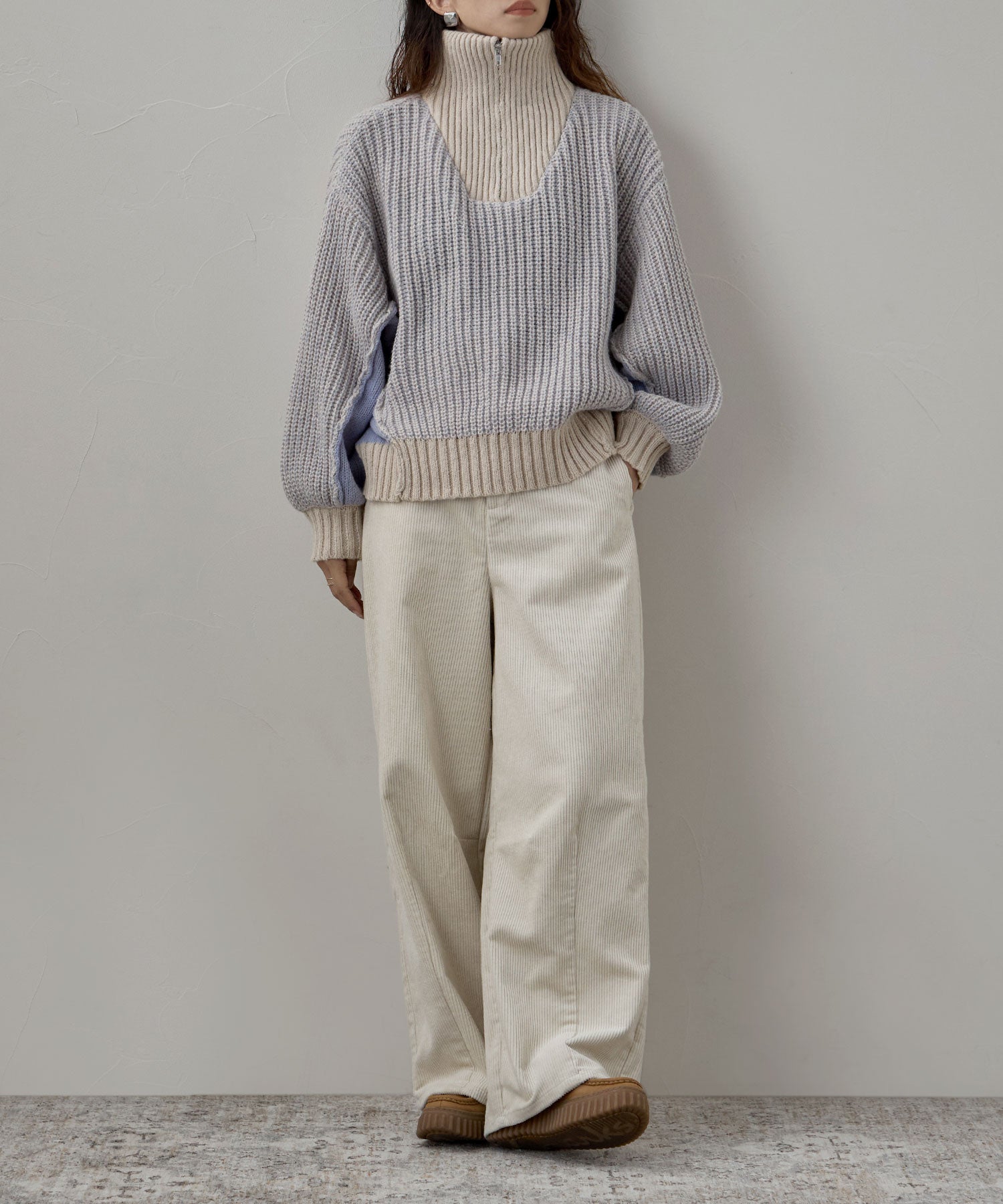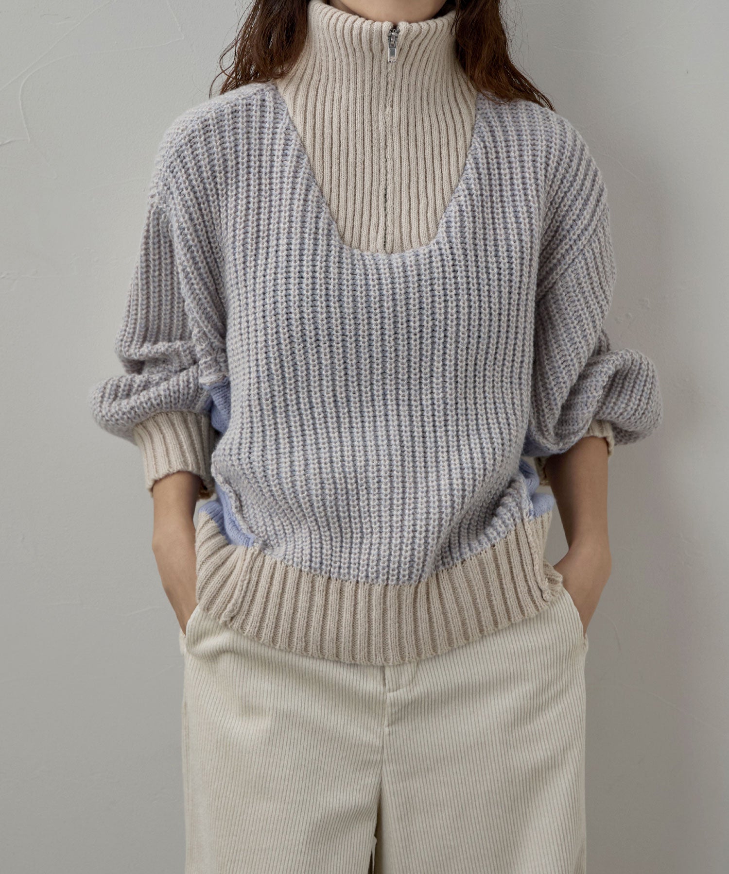 Zname バイカラーハーフジップニット