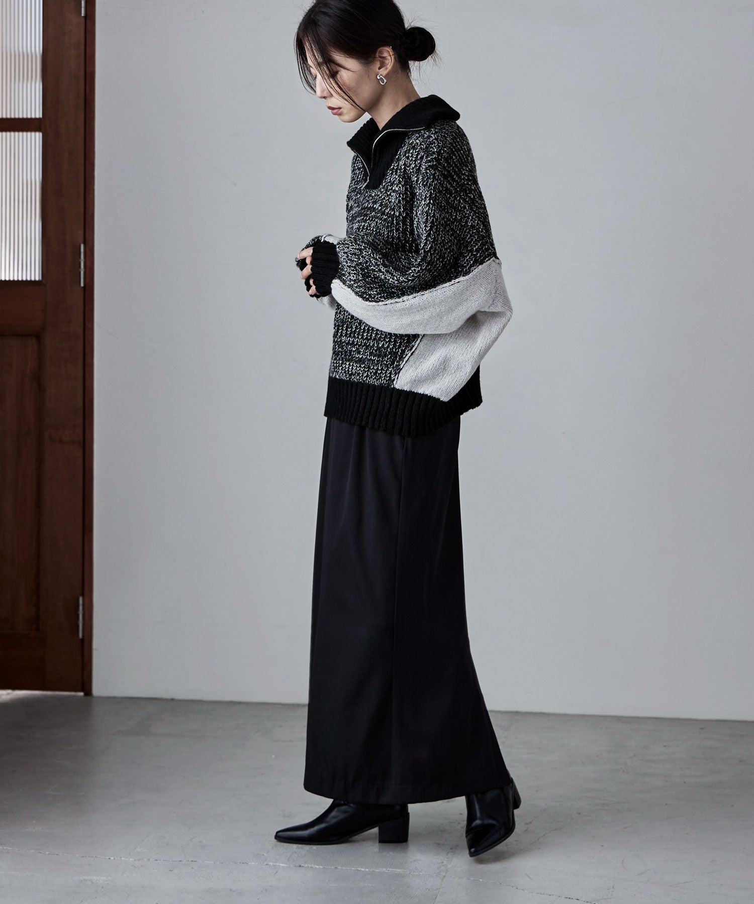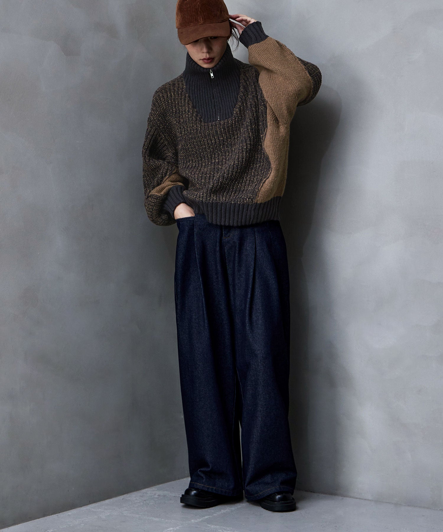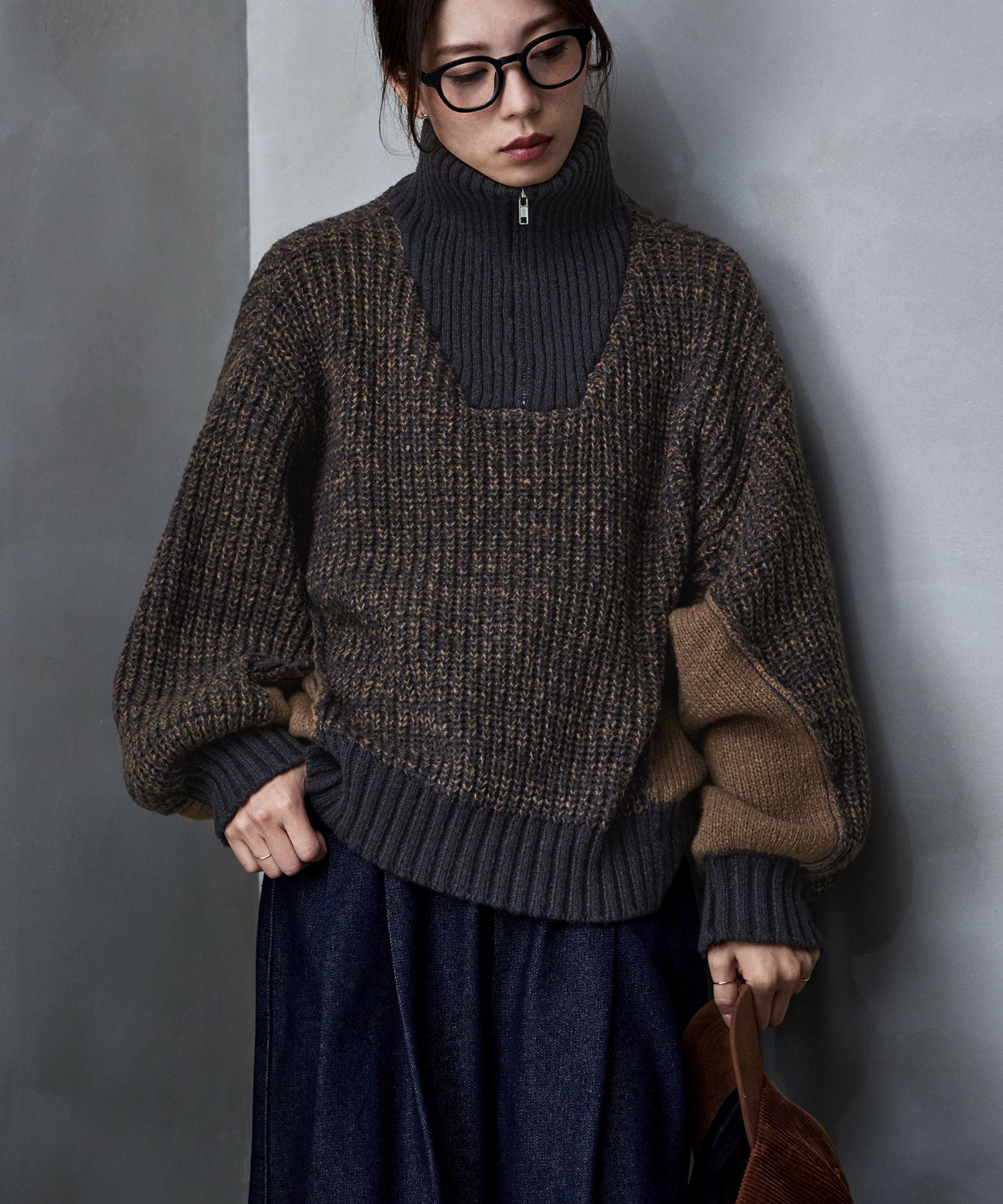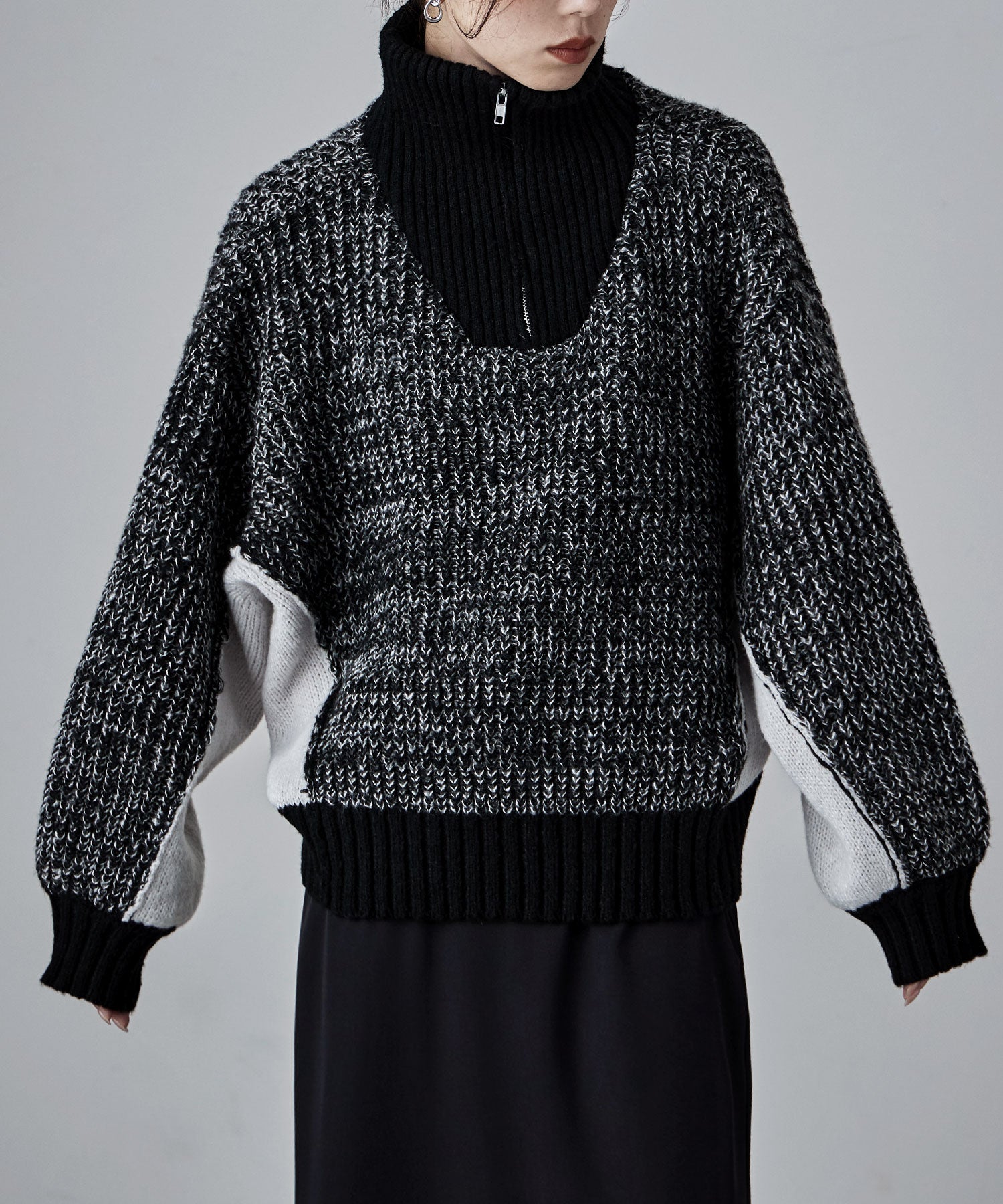 Zname バイカラーハーフジップニット