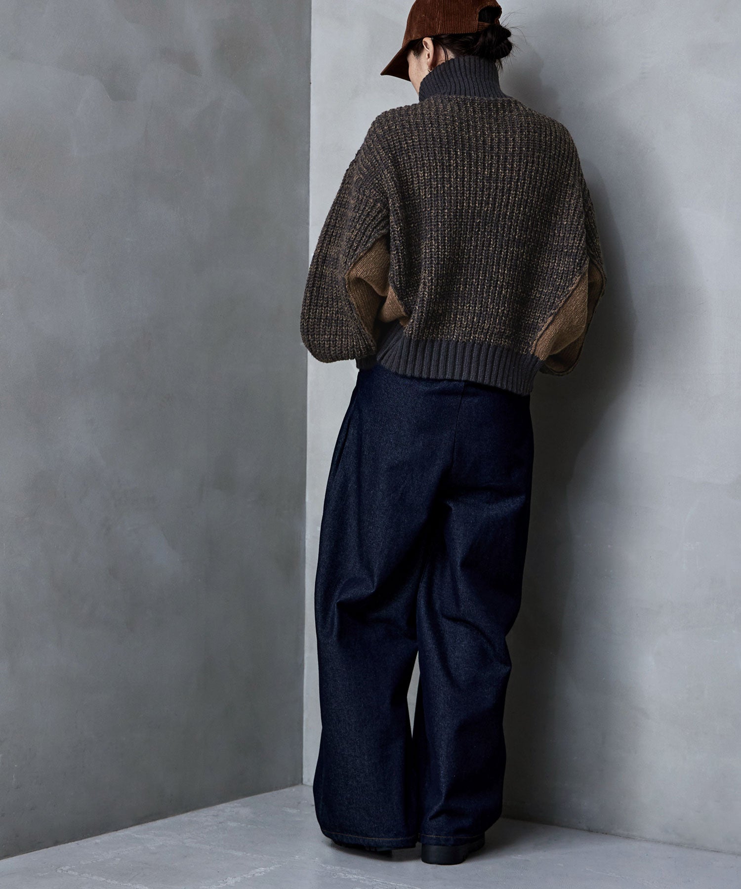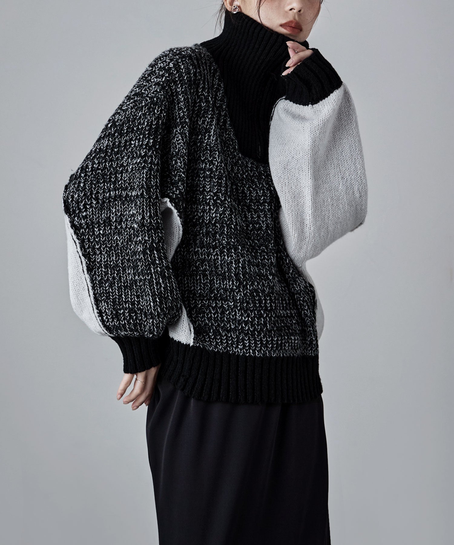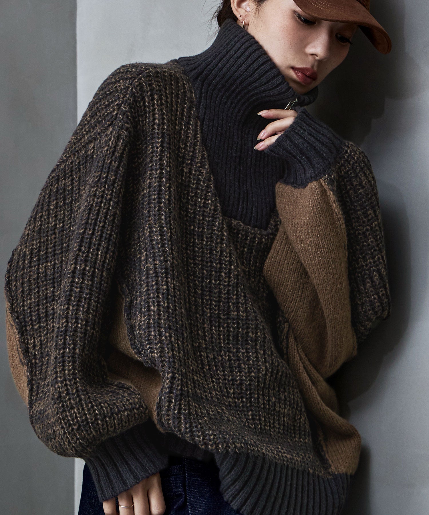 体を包み込むビッグシルエットで、たっぽりとした袖の立体感ある切り替えデザインと配色がコーデのアクセントに。