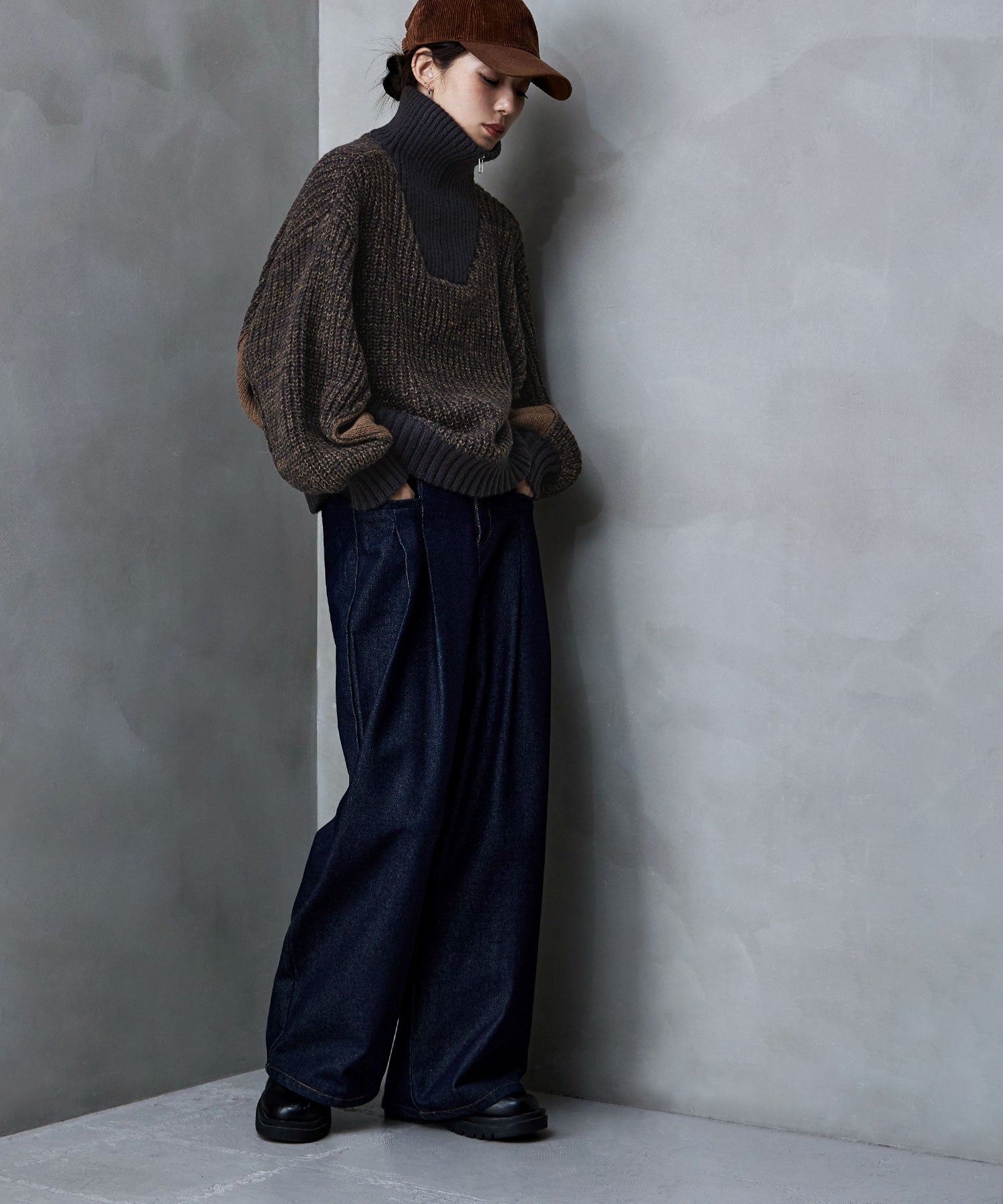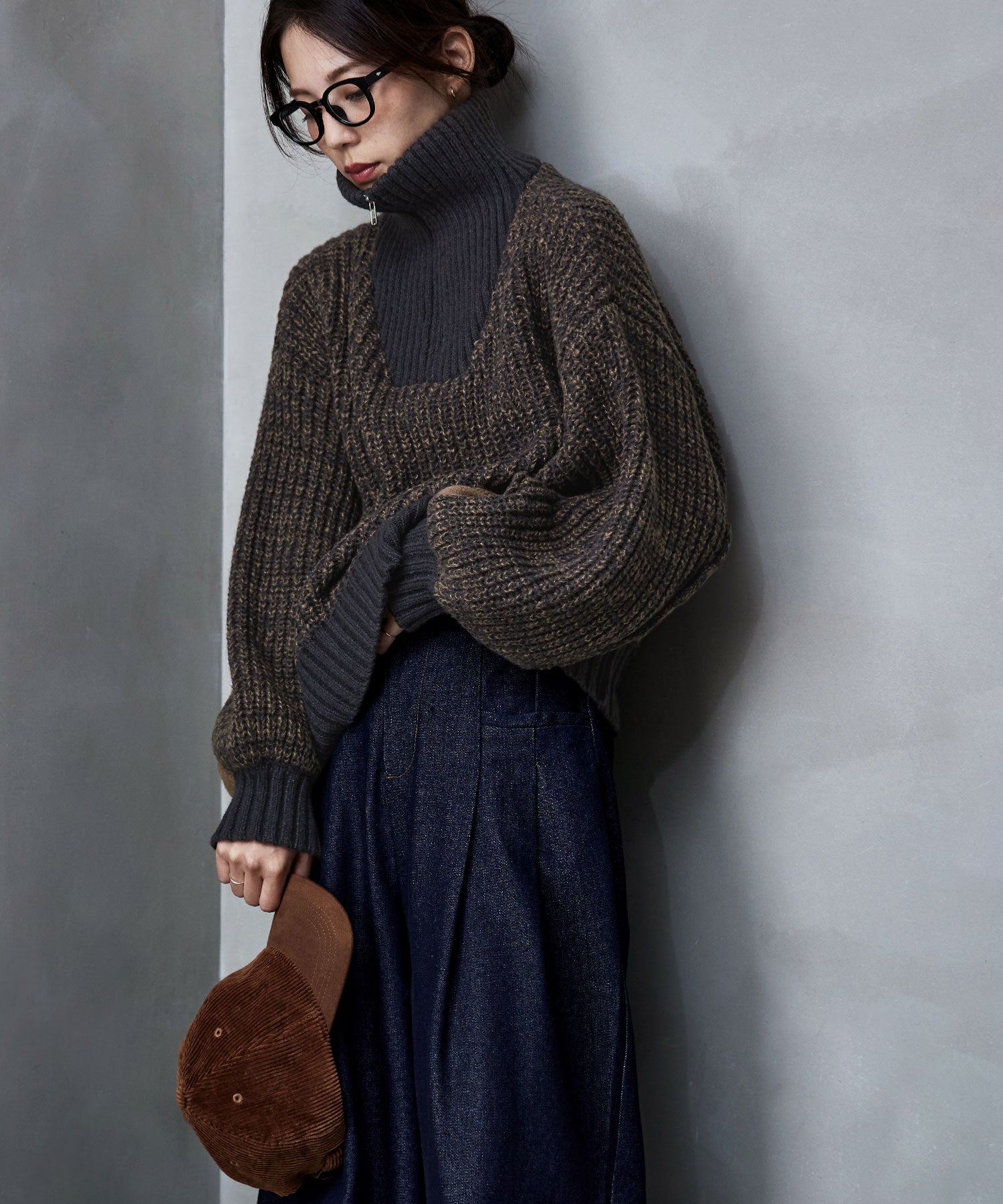 1枚でも着映えて首まわりをあたたかく包み込み、思わず顔をうずめたくなる襟の高さは、