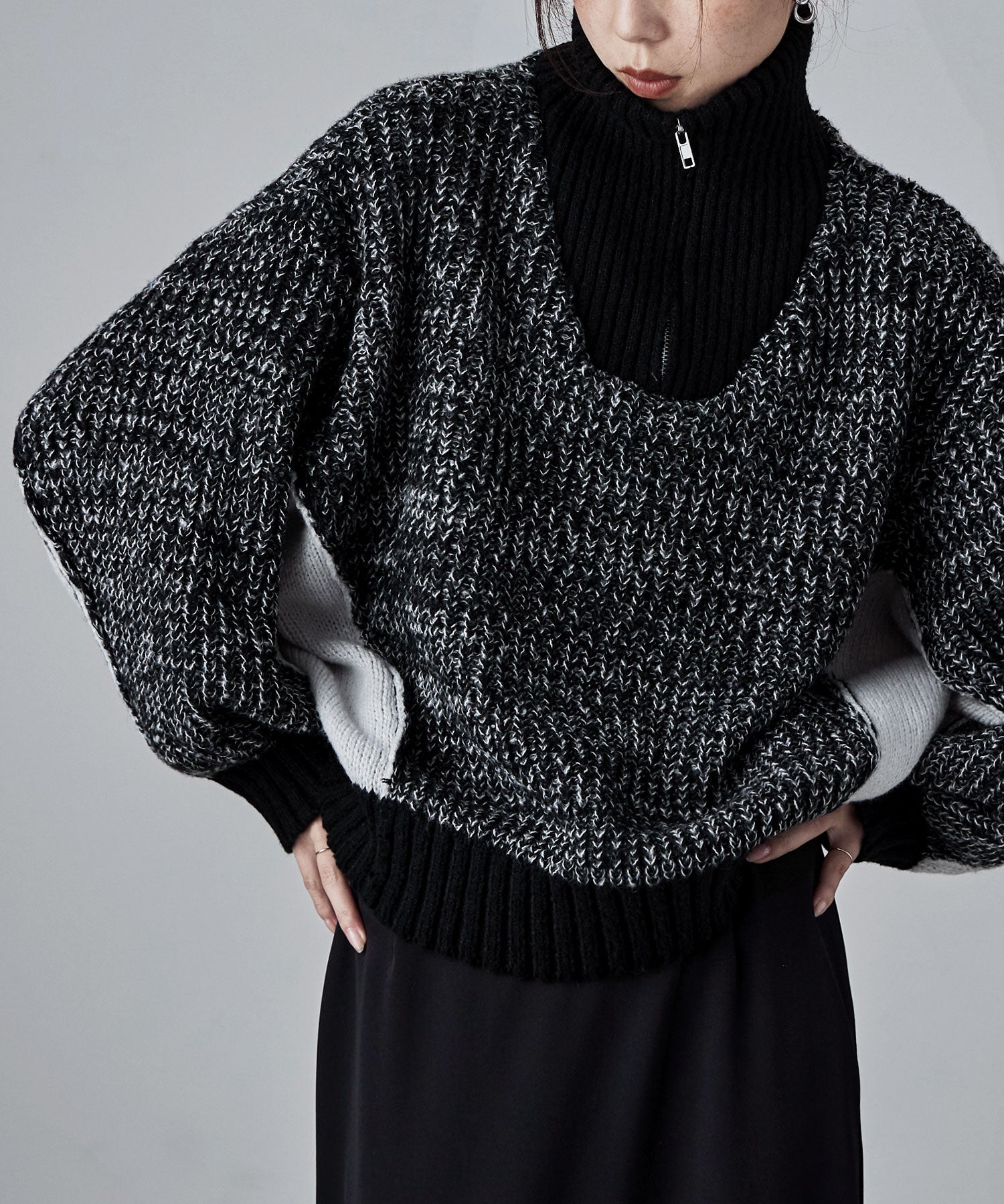 重ねがいのあるハーフジップデザインは、合わせるインナーによってジップの開きを調整することで表情を変えて楽しめ、