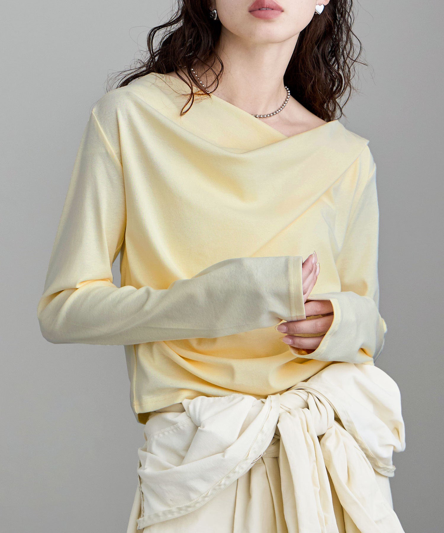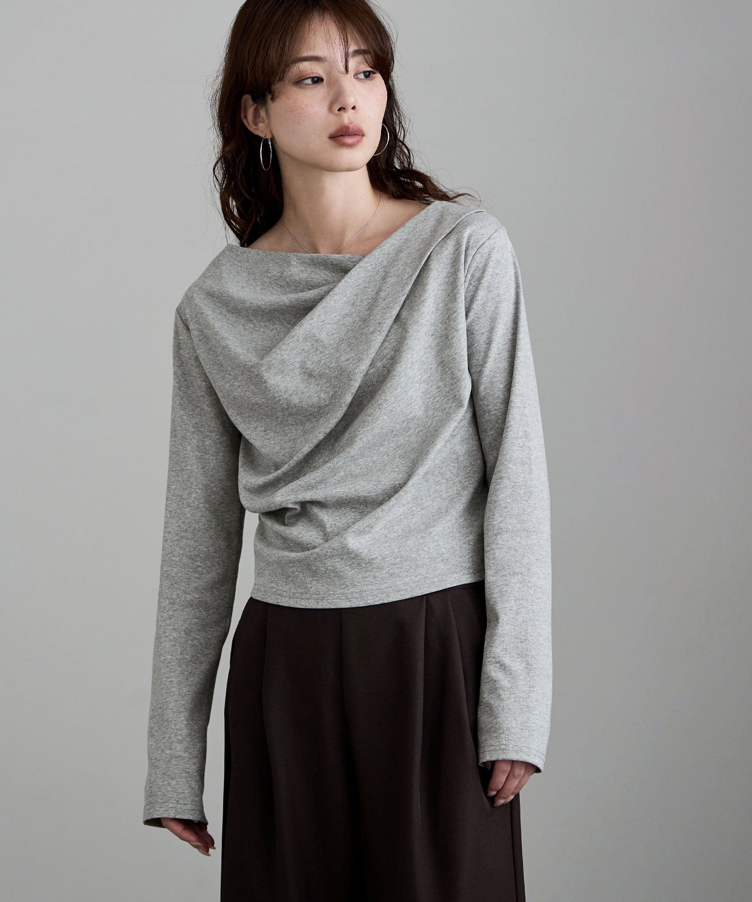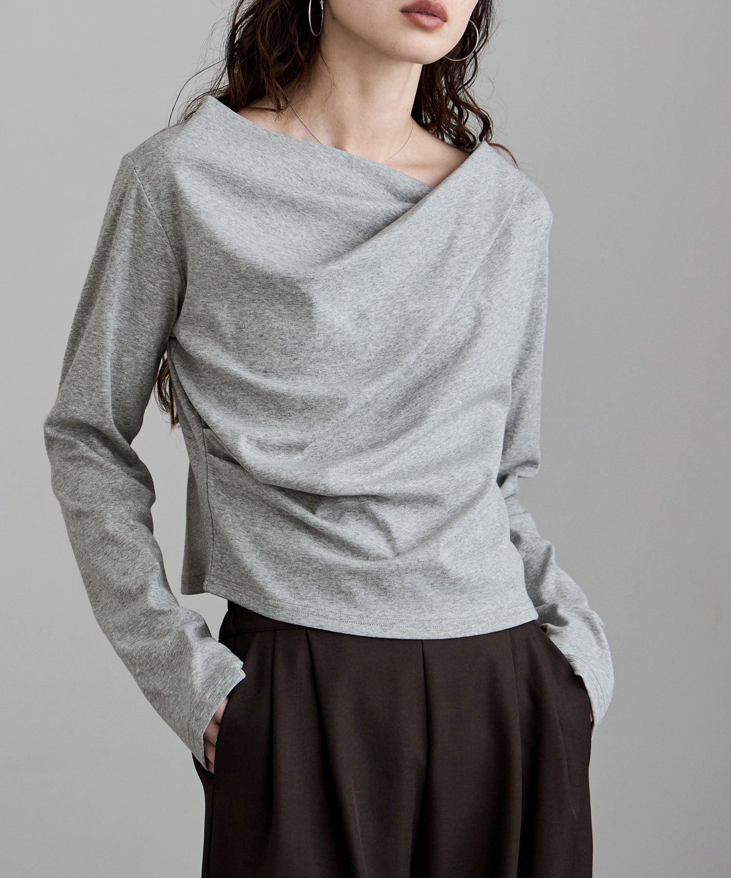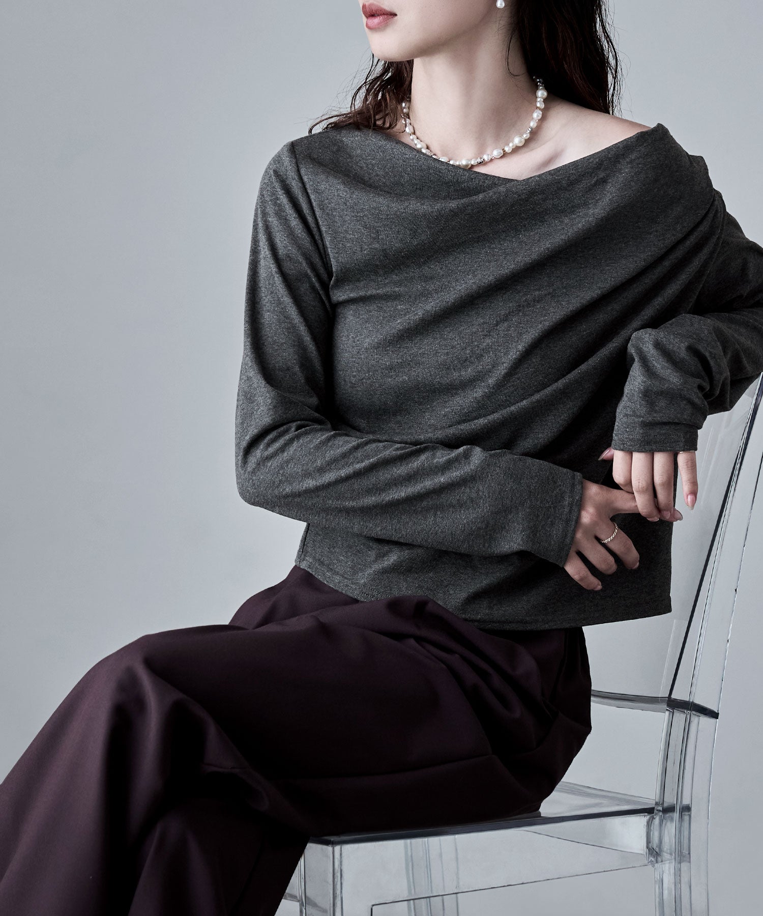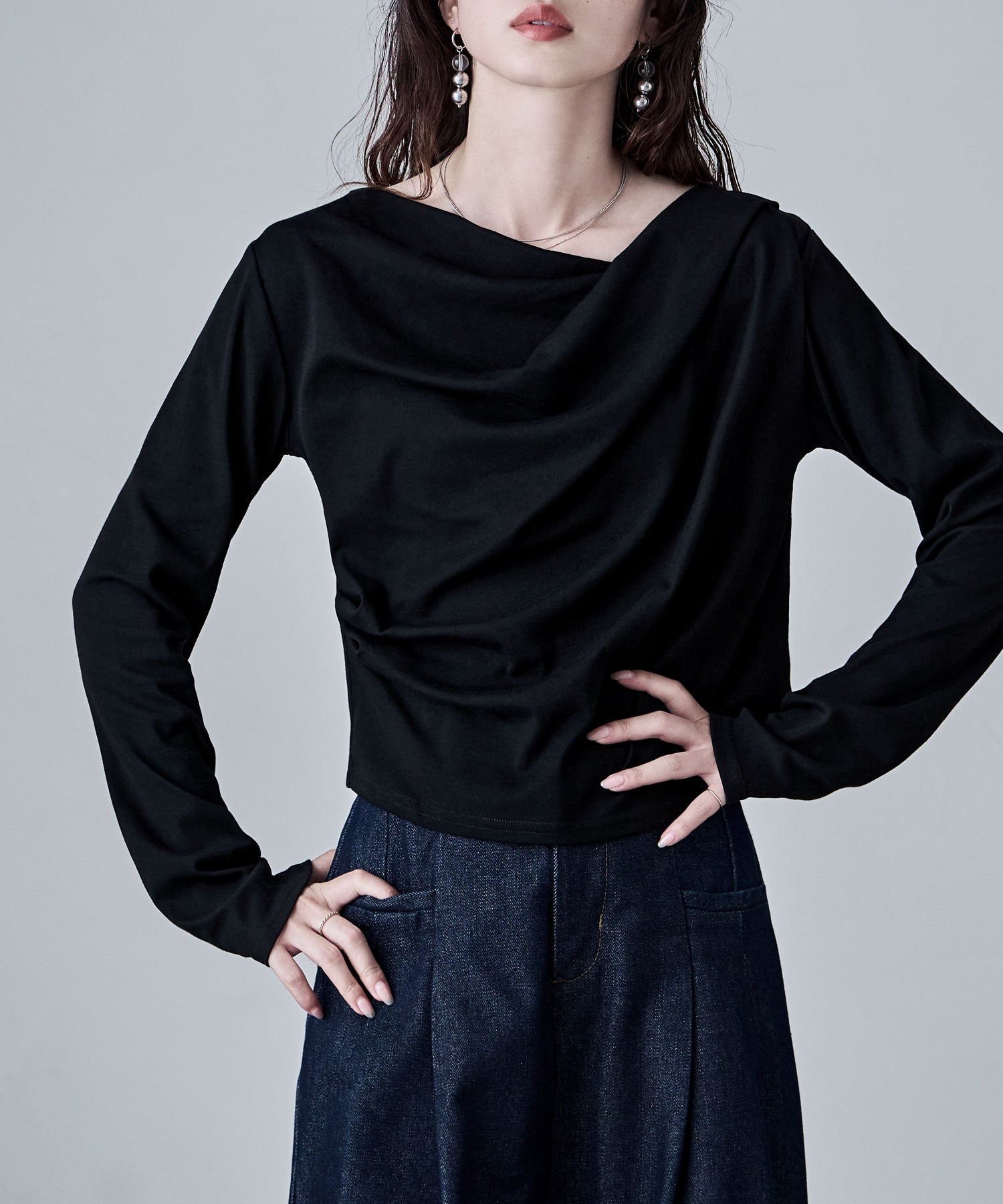 大人っぽさを宿した、ドレープデザインのカットソー。