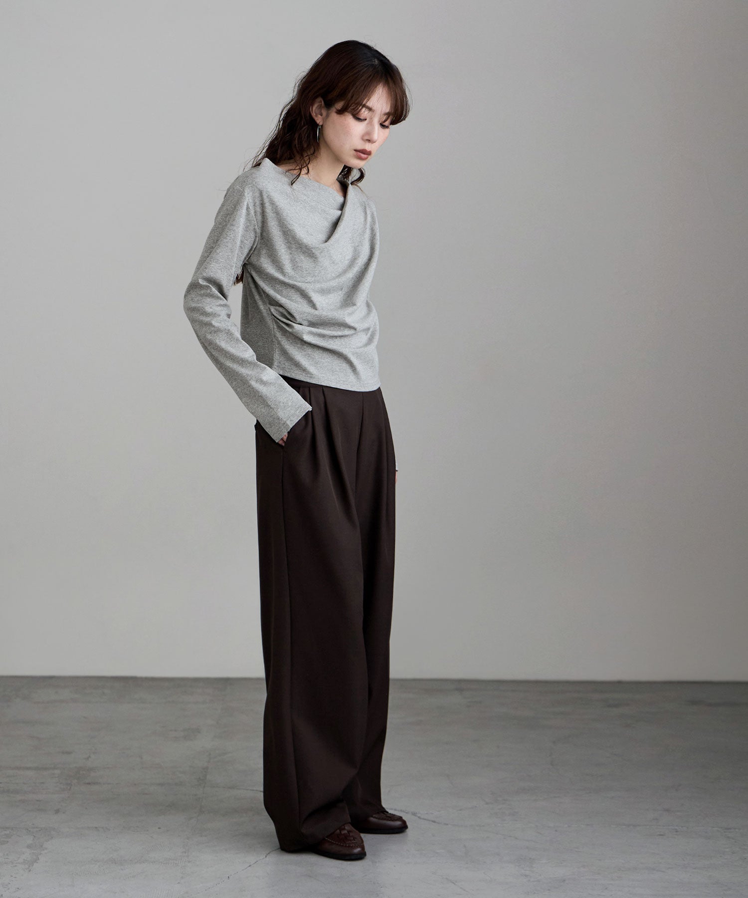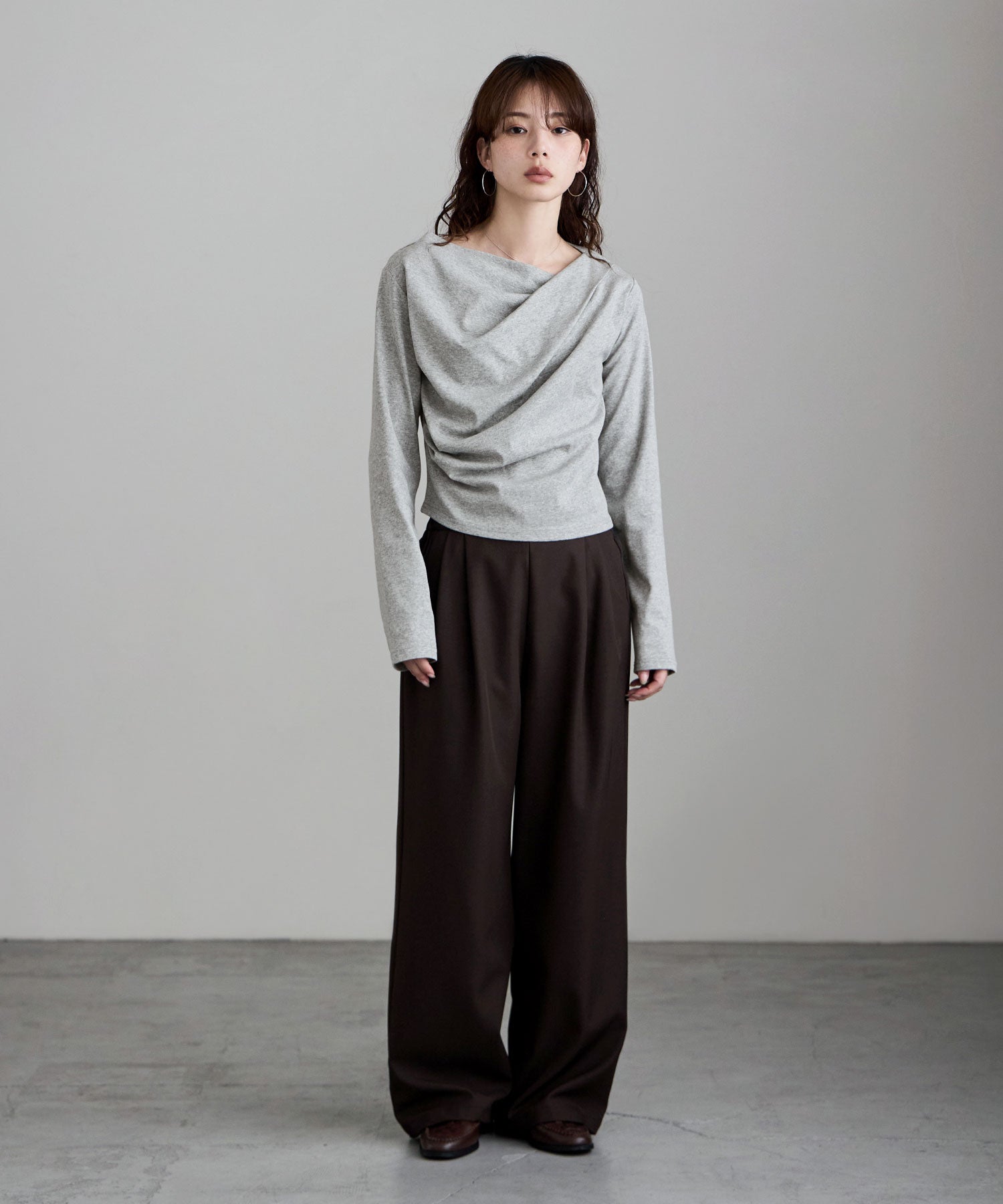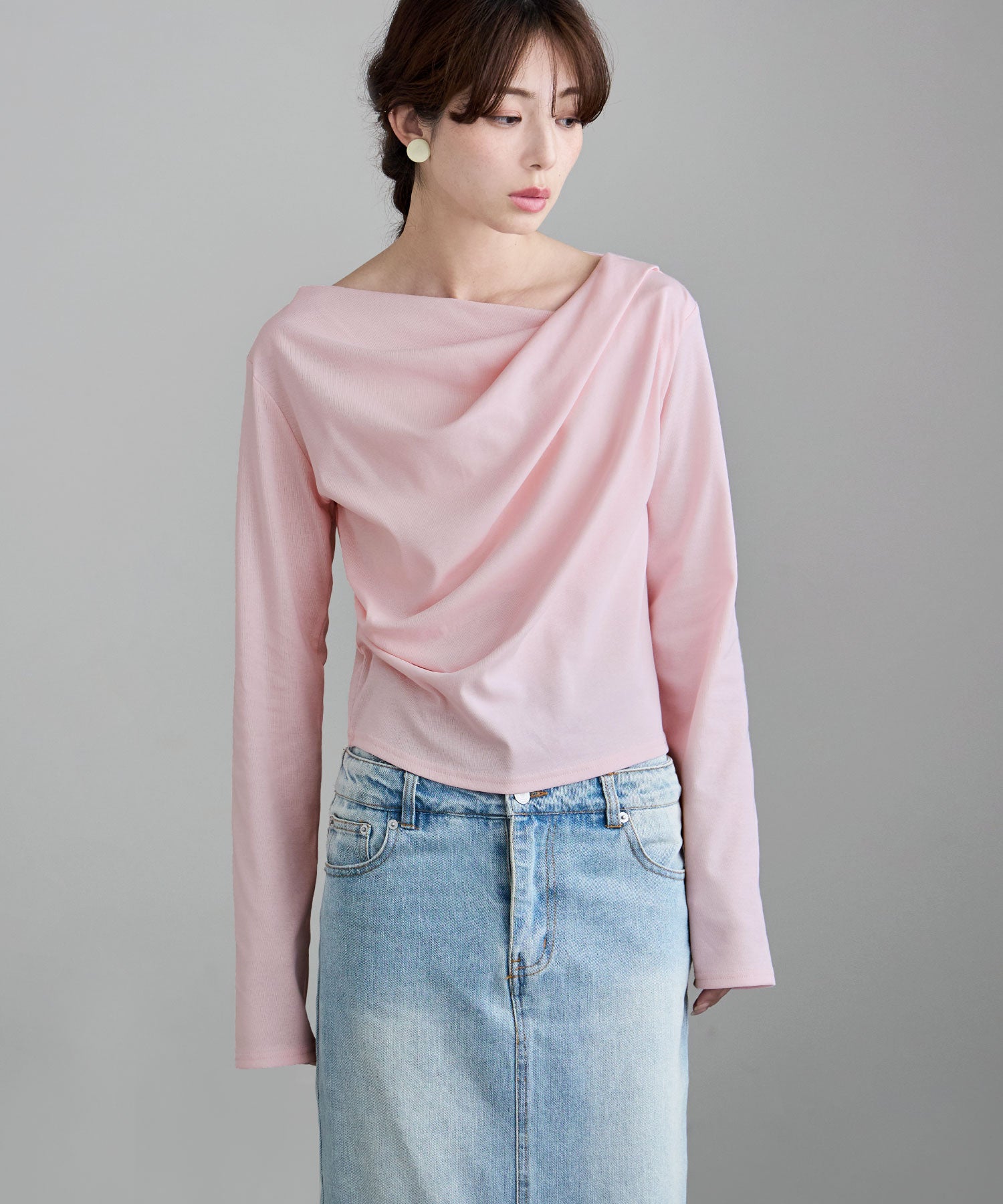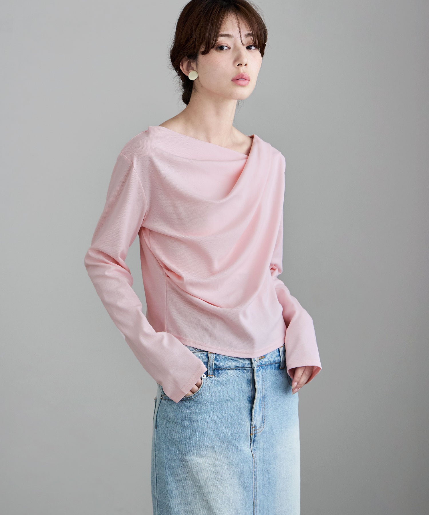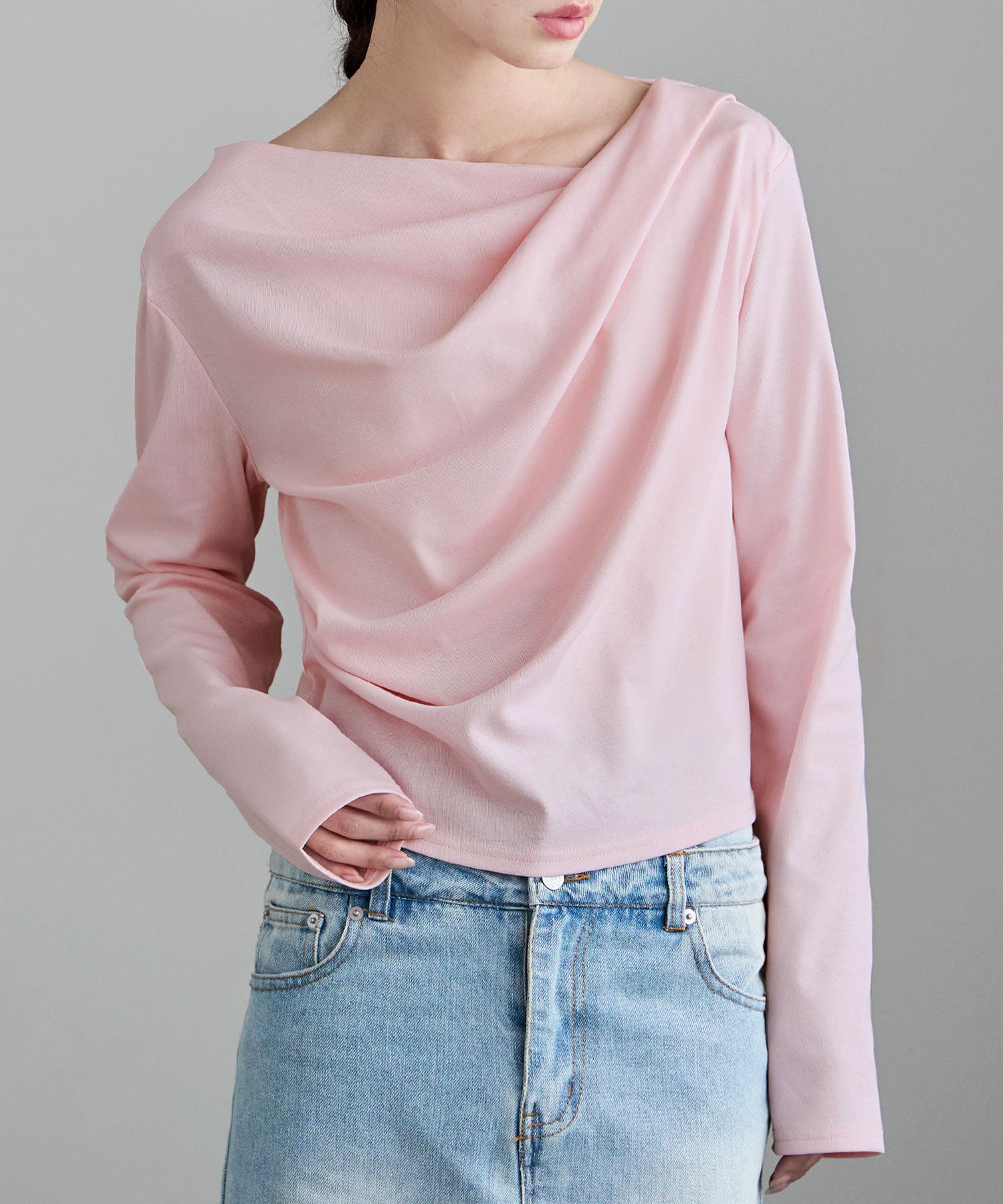 大人っぽさを宿した、ドレープデザインのカットソー。