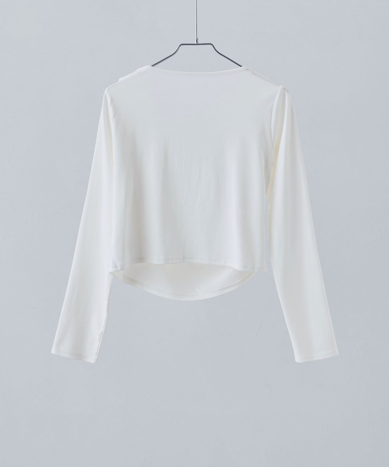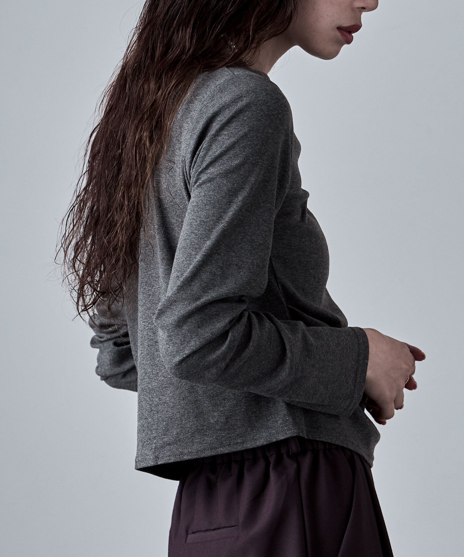 1枚でも着映えが図れて、女らしさの中に強めな部分も持ち合わせた構築的でモードな長袖トップス。