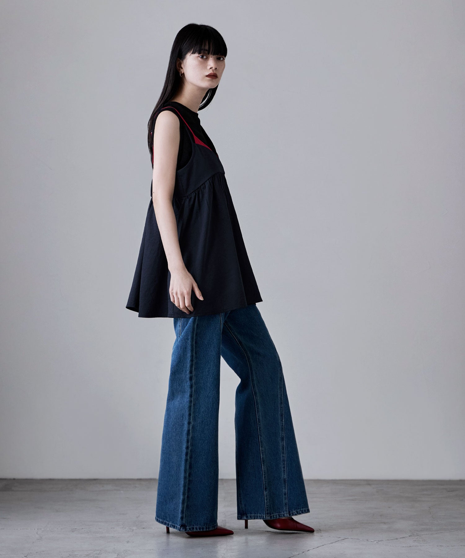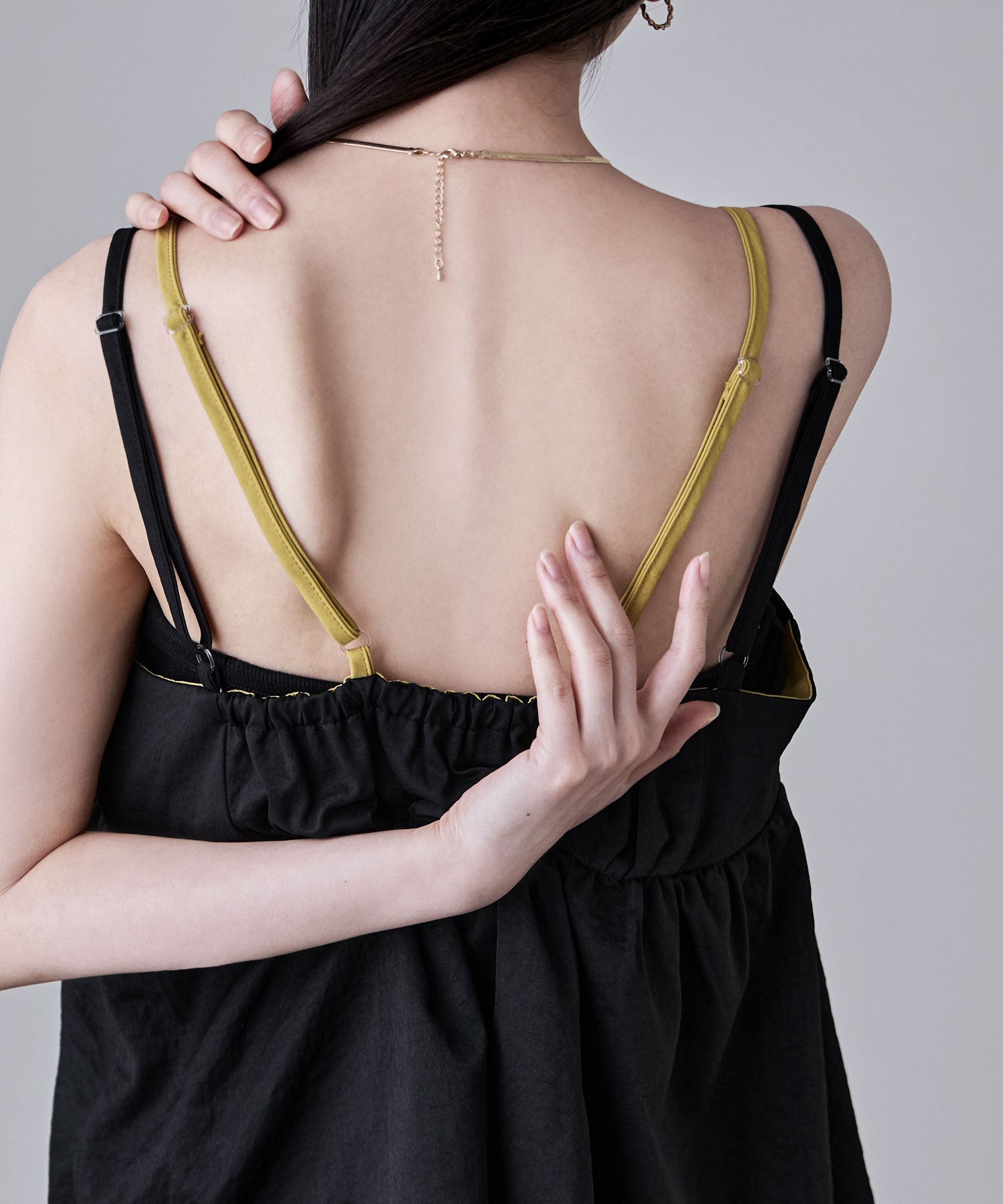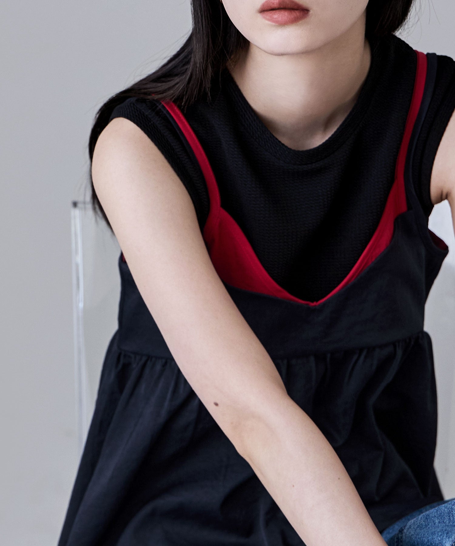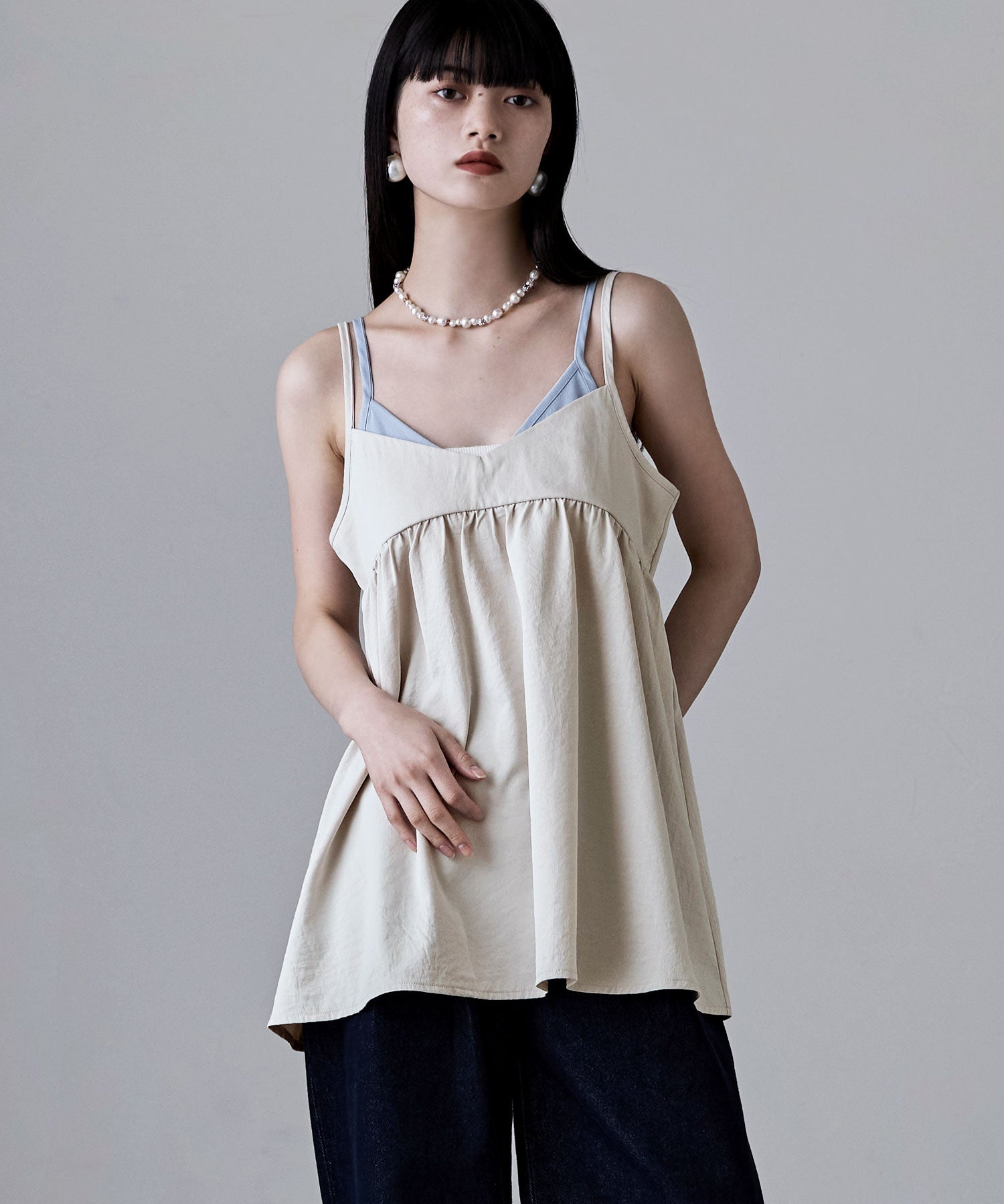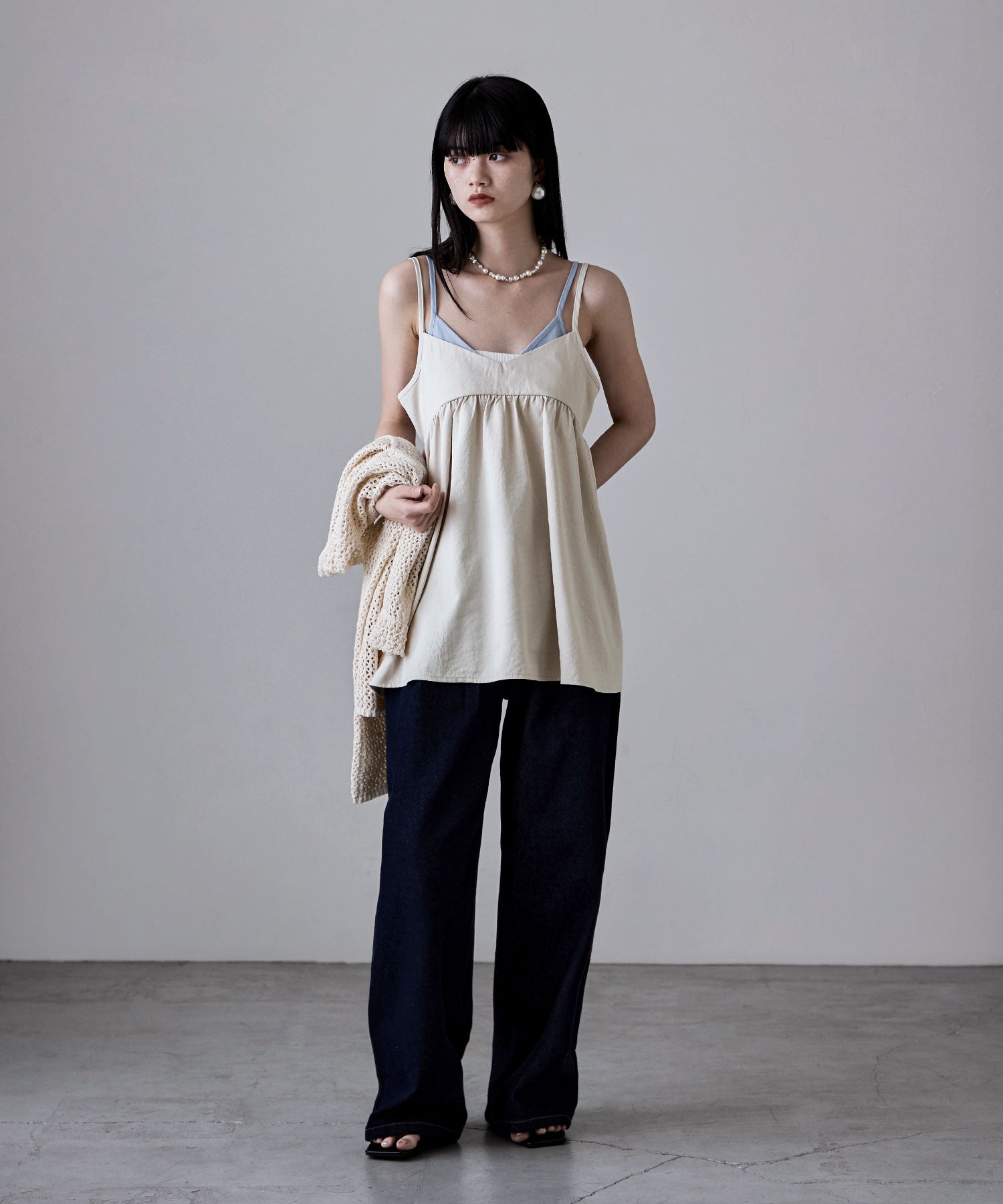 存在感のある色とボリュームがポイントのレイヤード風キャミソールビスチェ。