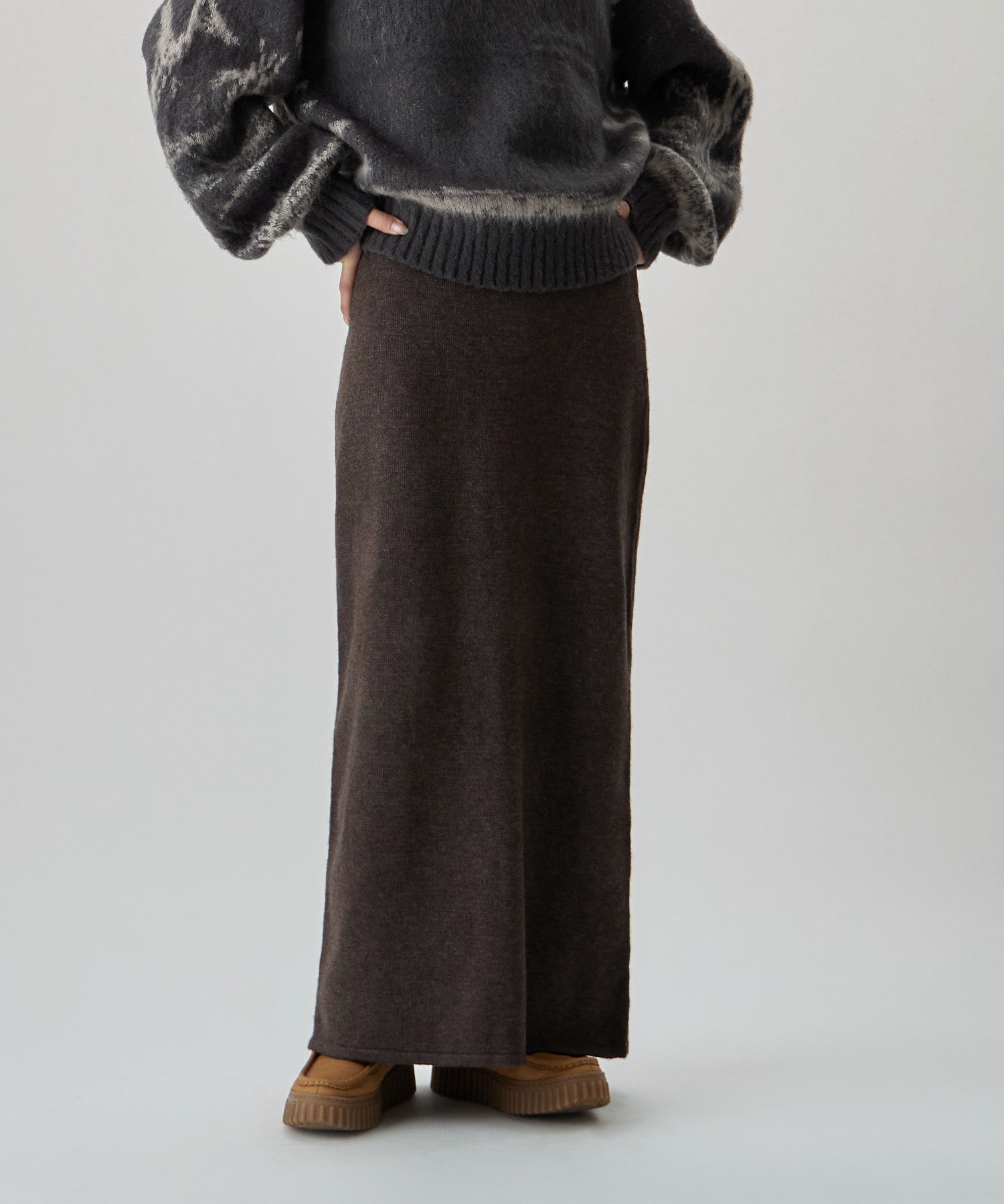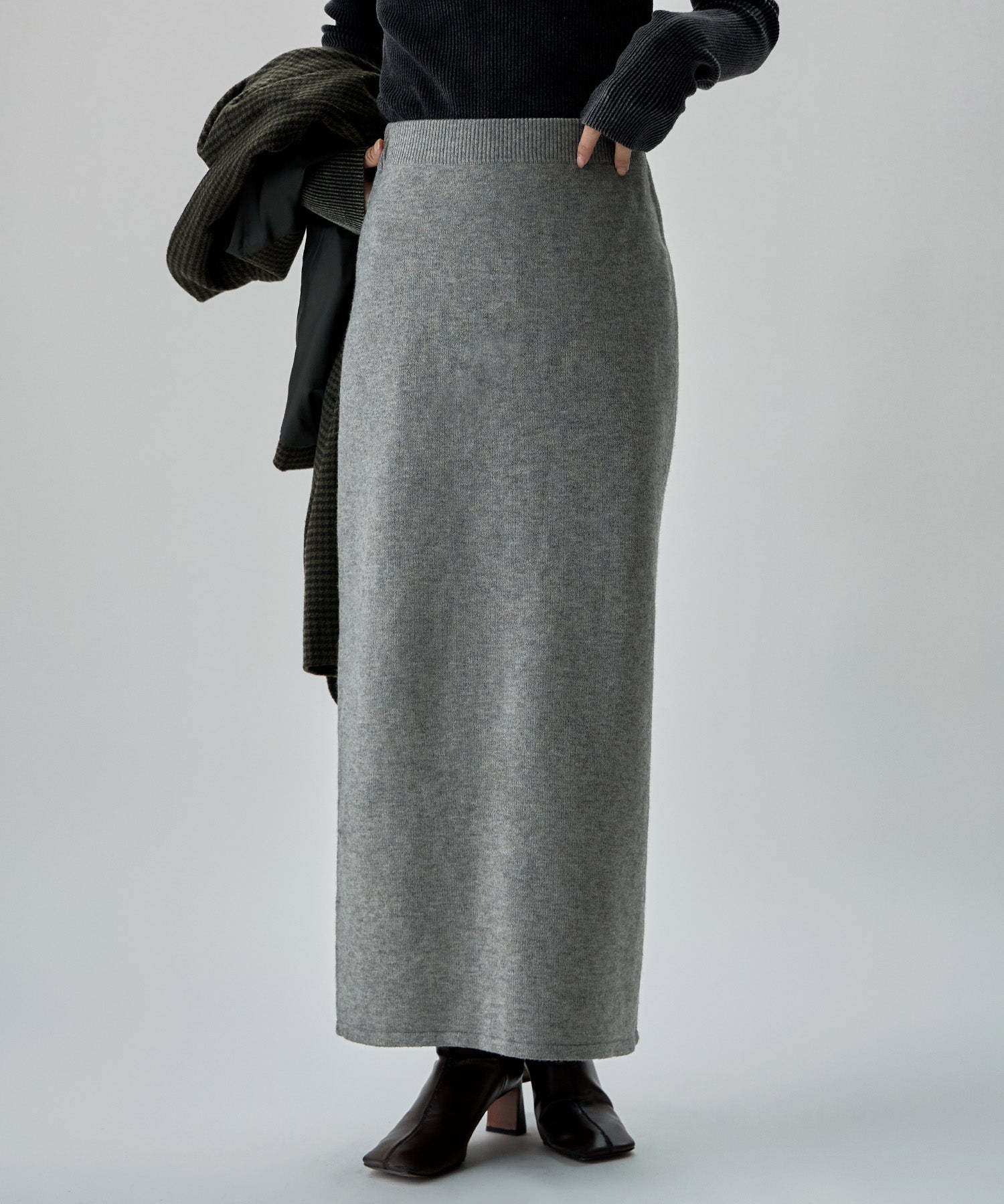 スタイリングに鮮度をもたらし、ラクな素材でラフすぎず、お洒落を保てるニットスカート。