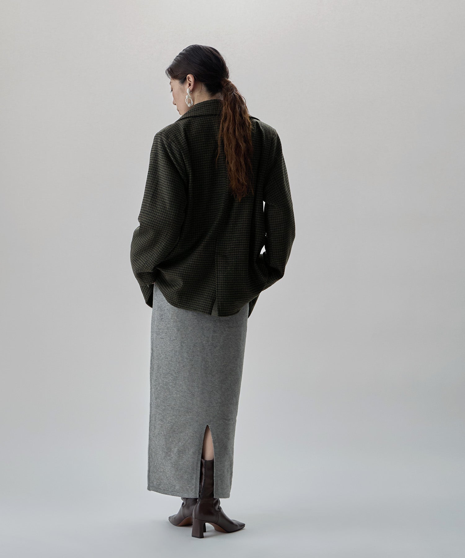 力みなく女らしさを上げてくれるIラインのタイトスカートで仕上げました。