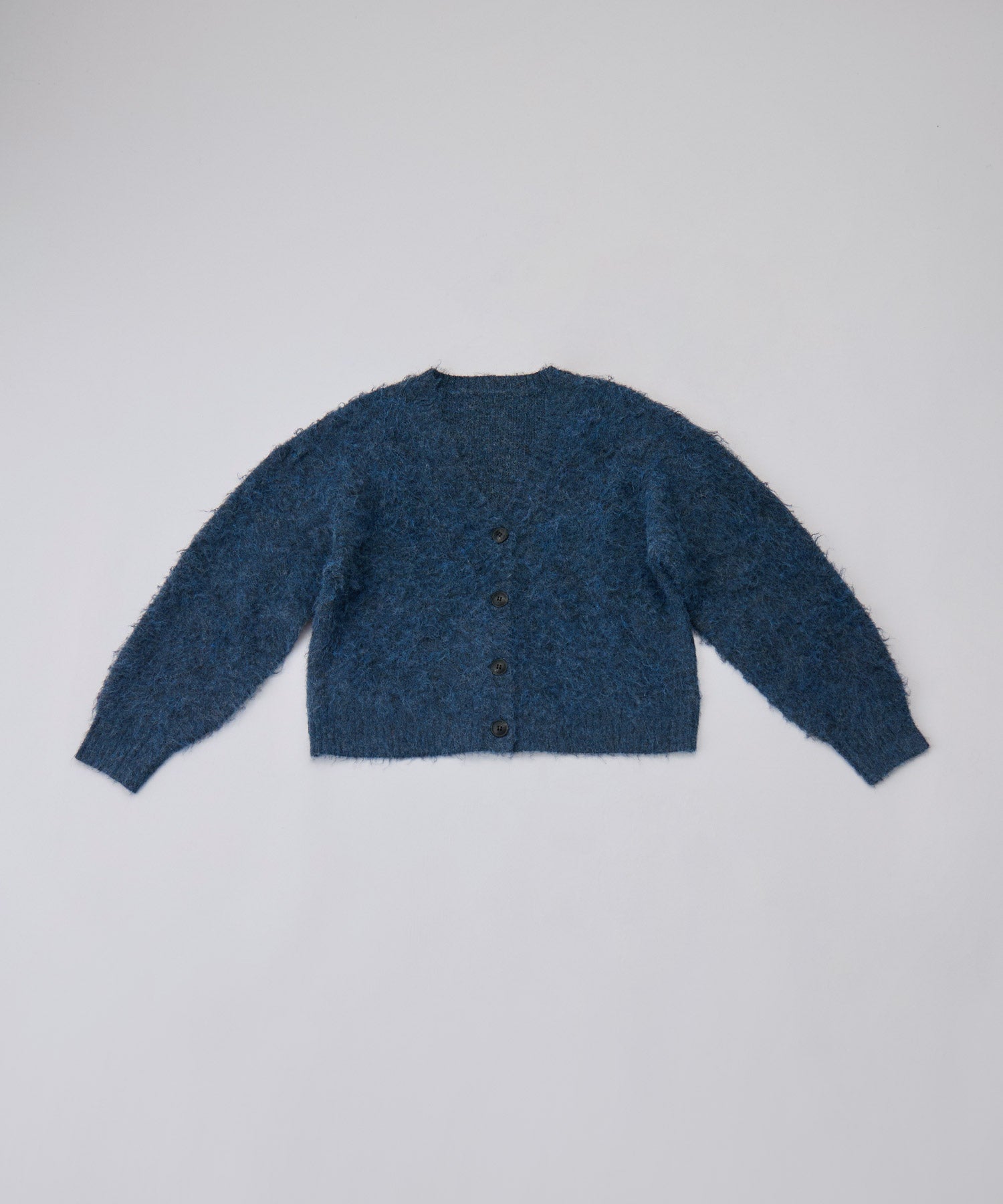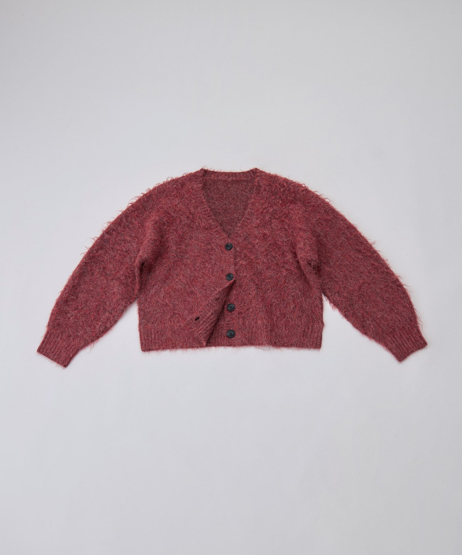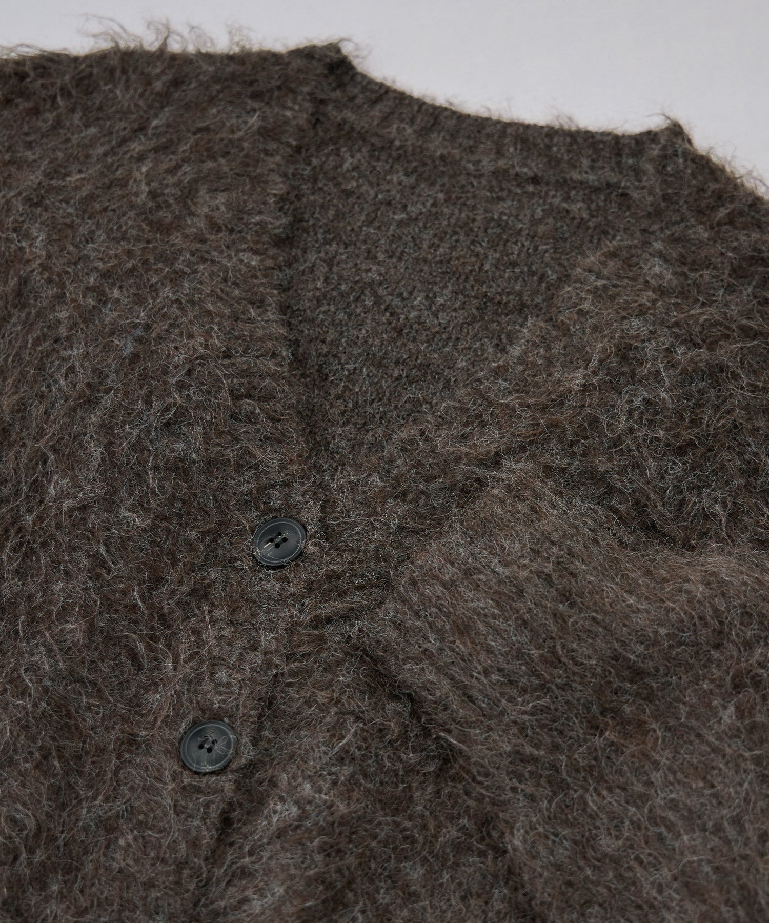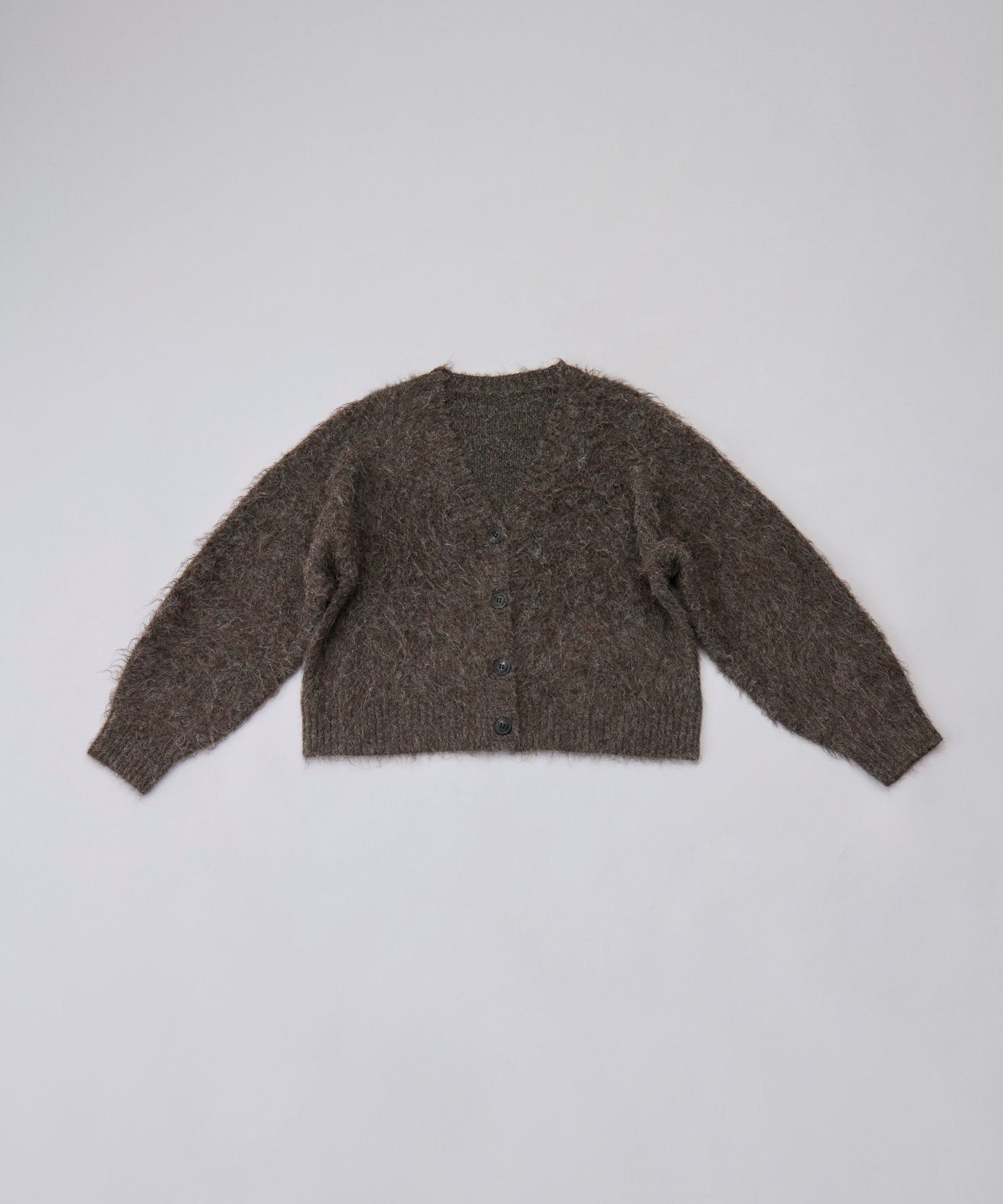 ウォーム感のある起毛糸で仕上げたシャギーVネックカーディガン。