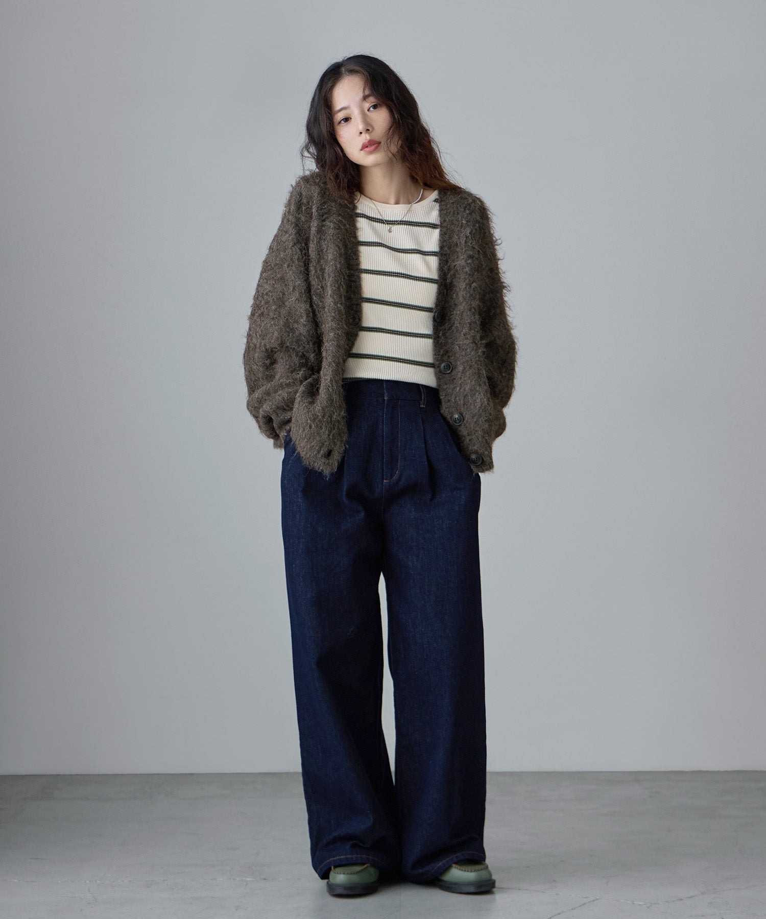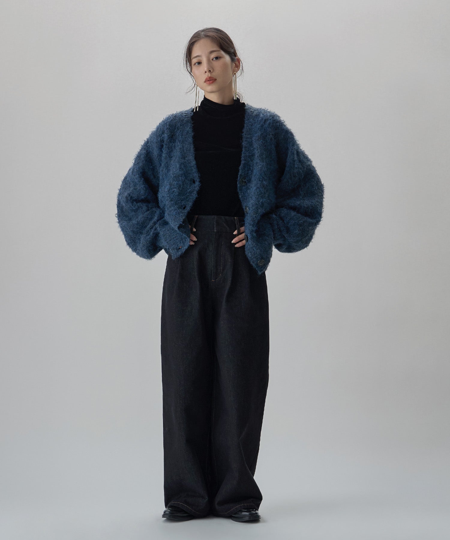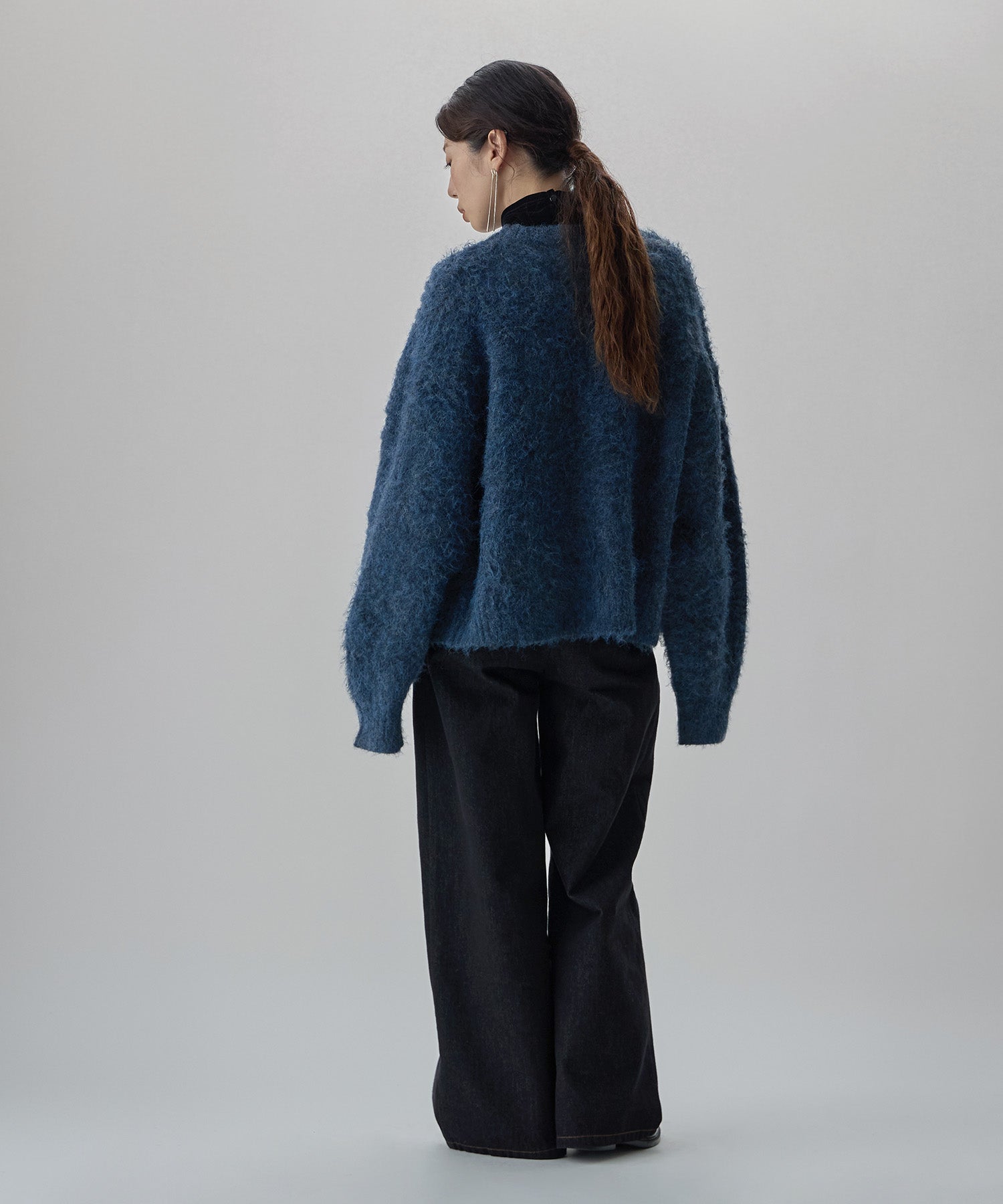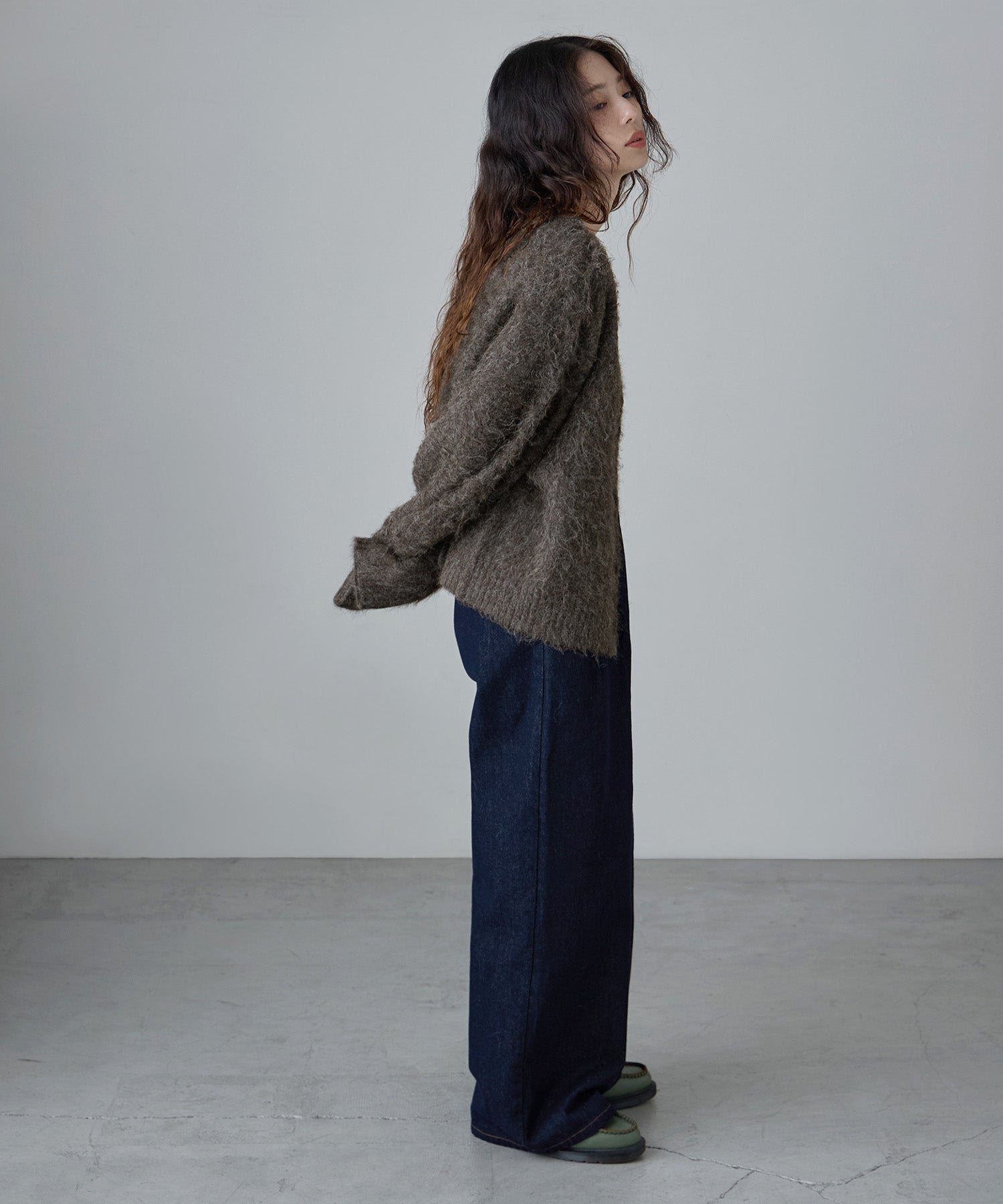 ウォーム感のある起毛糸で仕上げたシャギーVネックカーディガン。