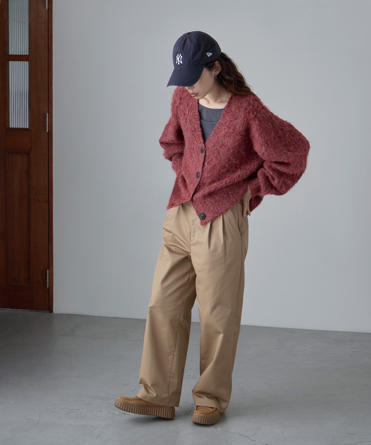 シーズンムードを盛り上げるニットカーディガンは羽織りとしても着回せるため、