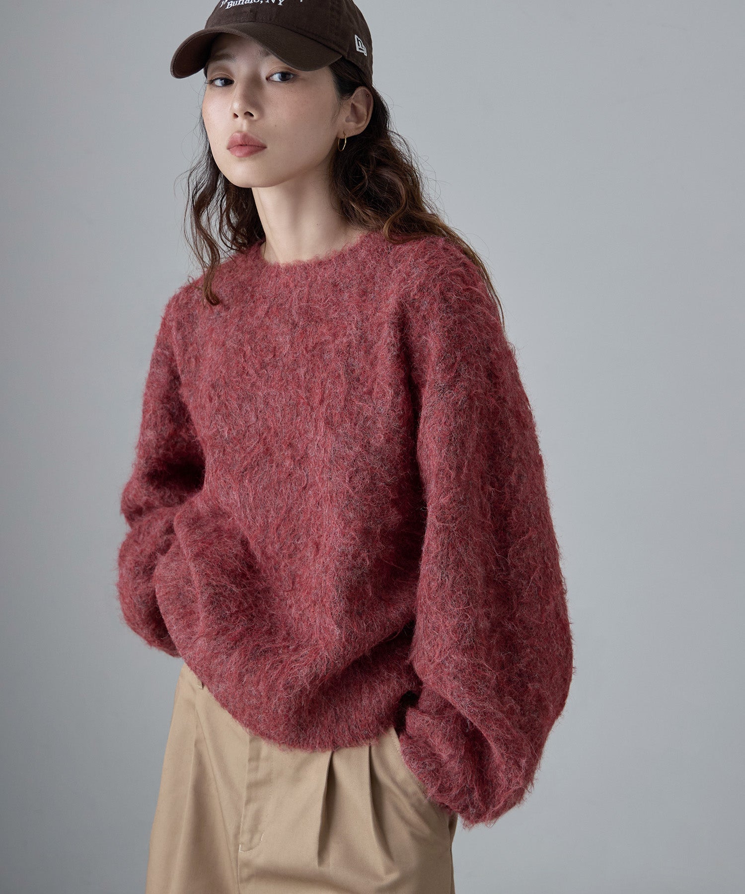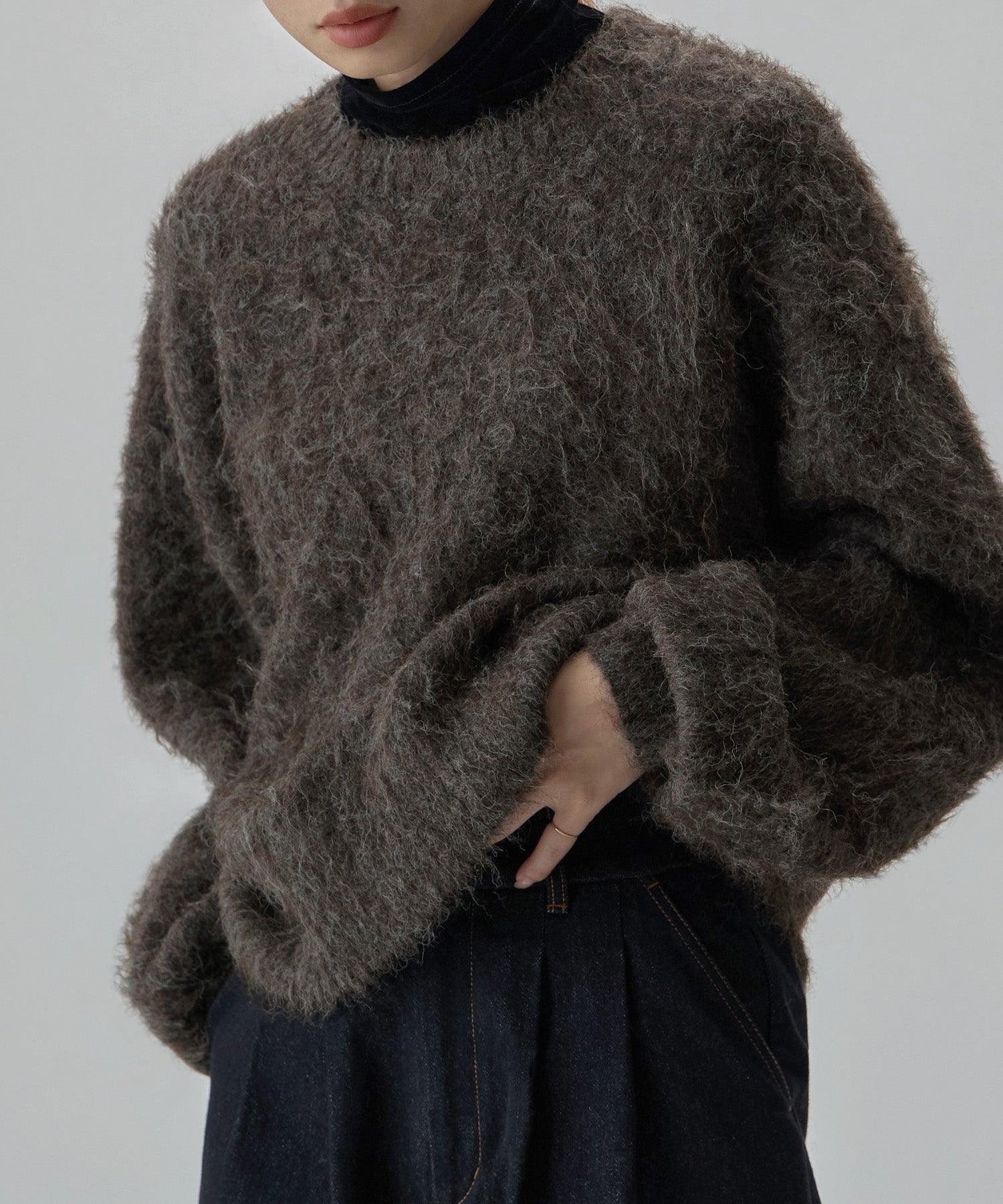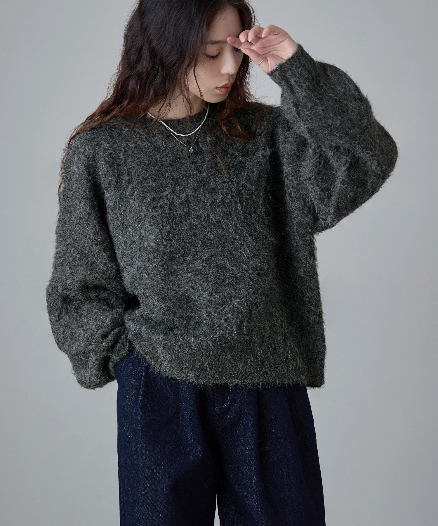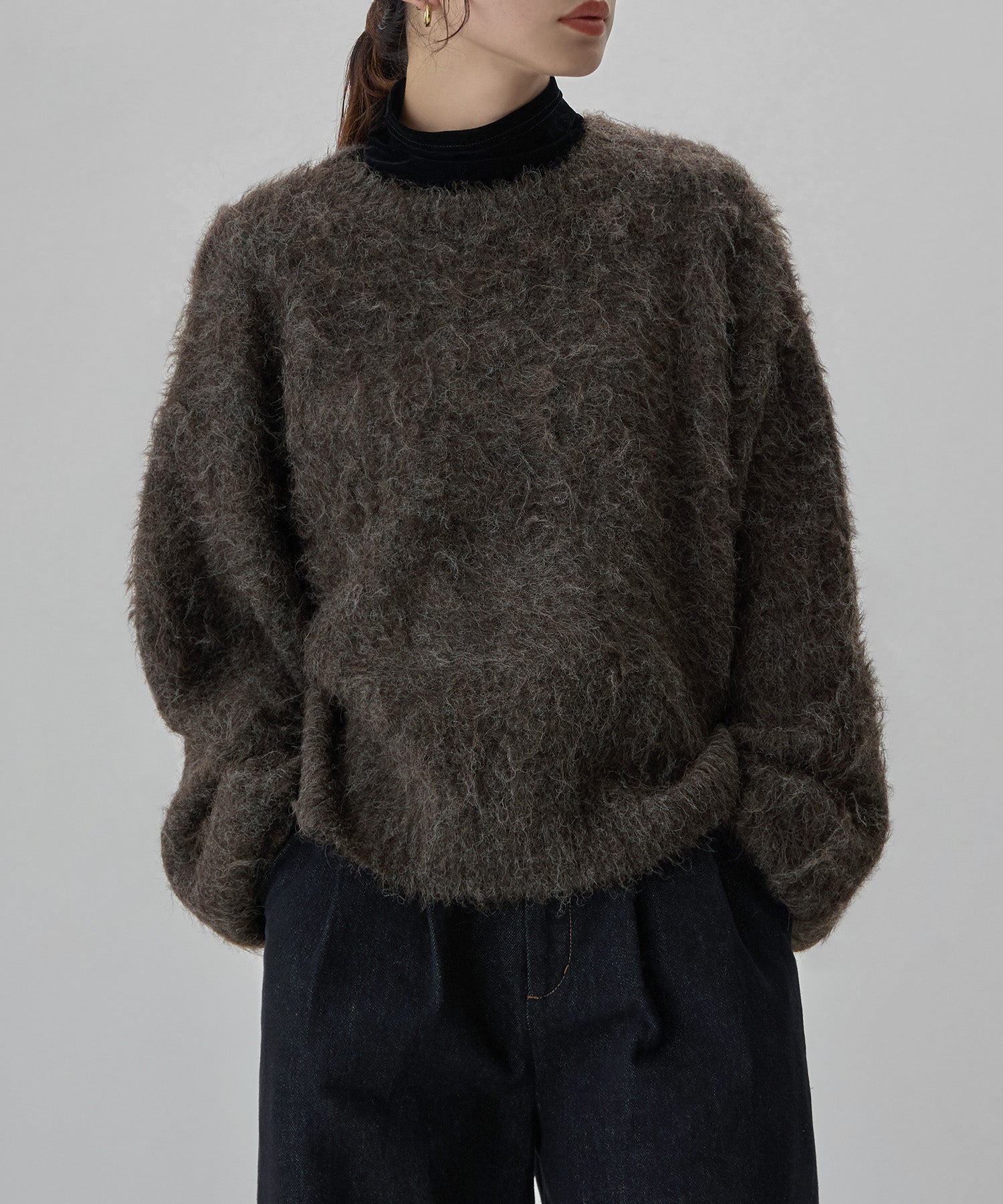 ウォーム感のある起毛糸で仕上げたミドル丈のシャギーニットプルオーバー。