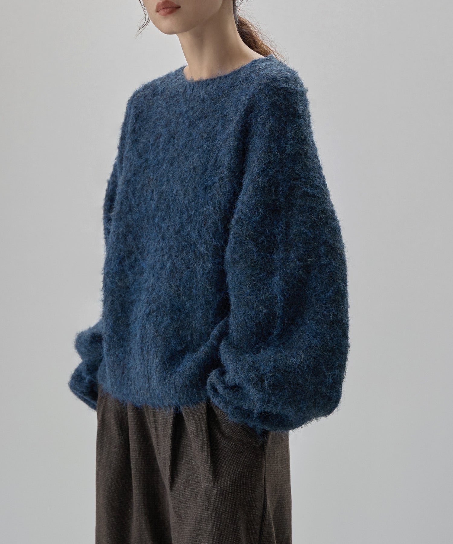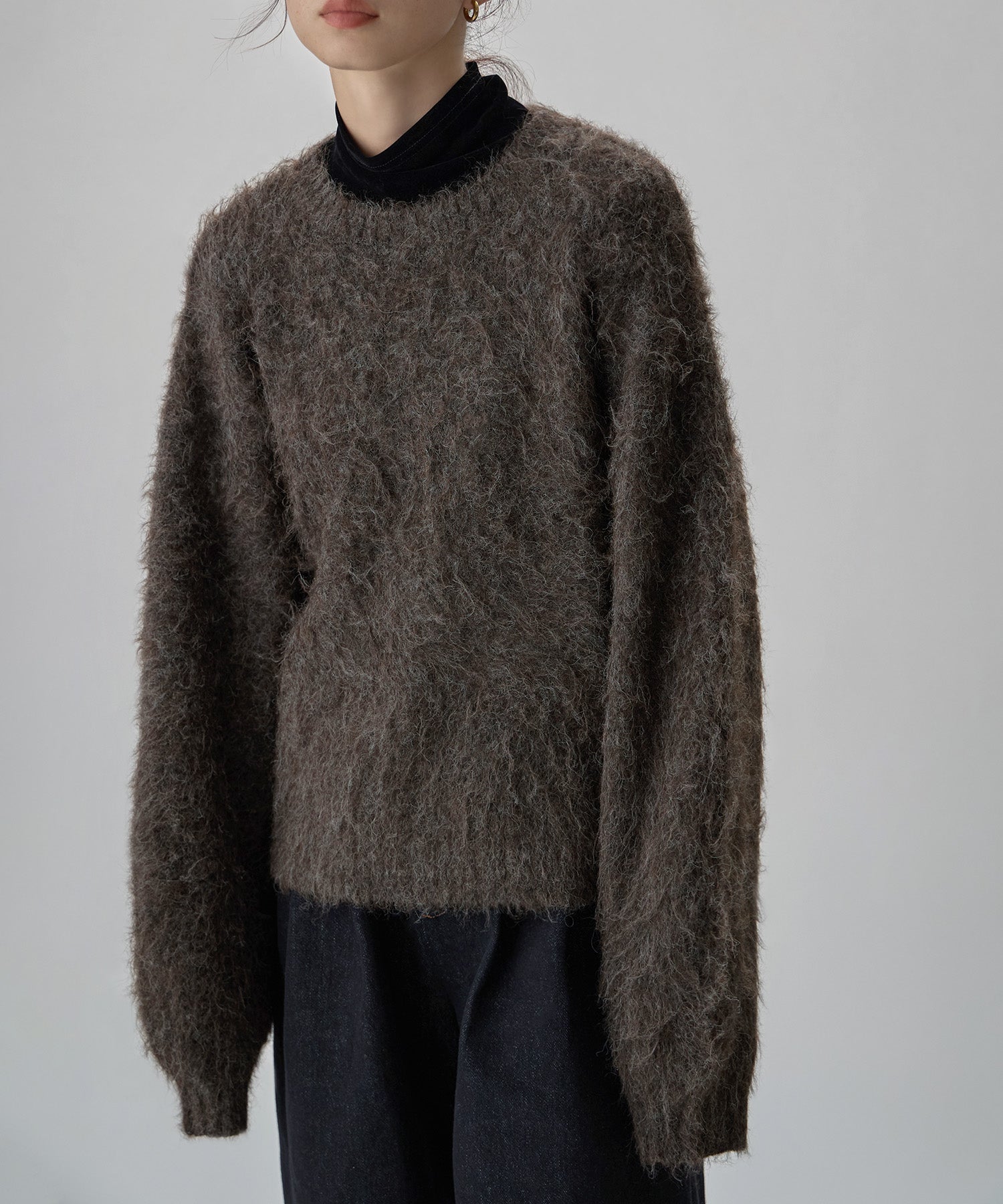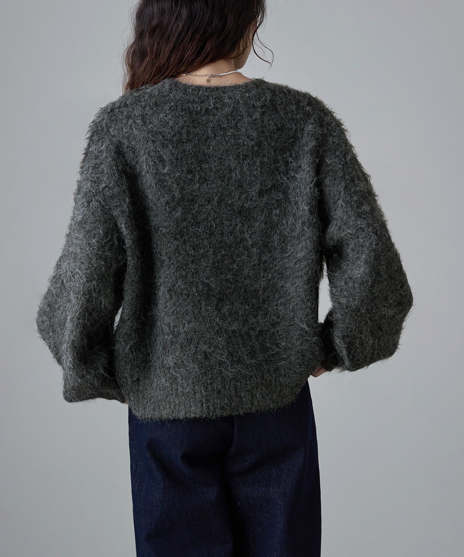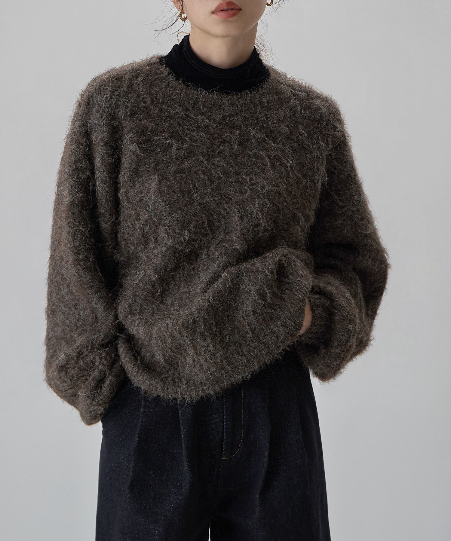 ウォーム感のある起毛糸で仕上げたミドル丈のシャギーニットプルオーバー。