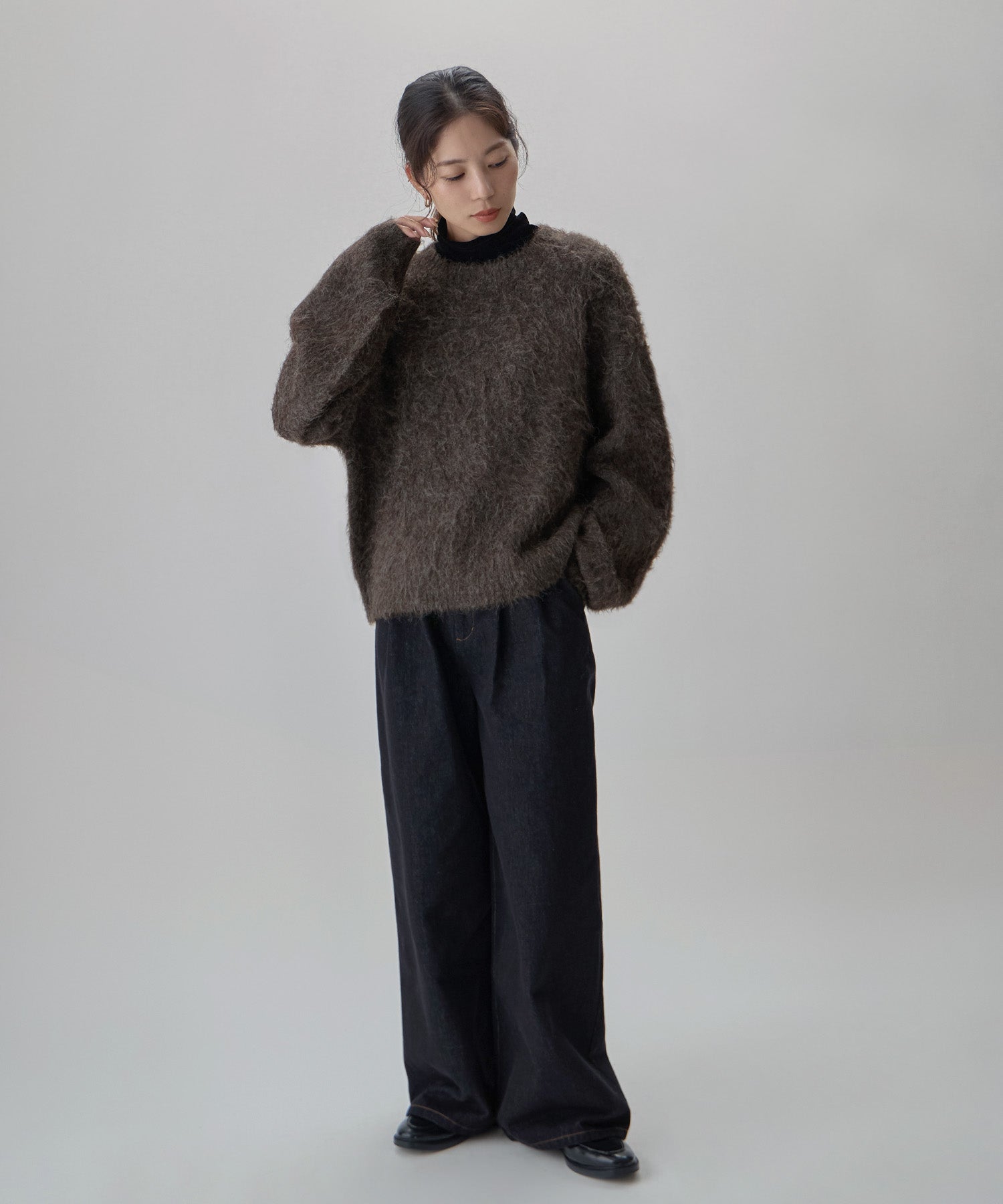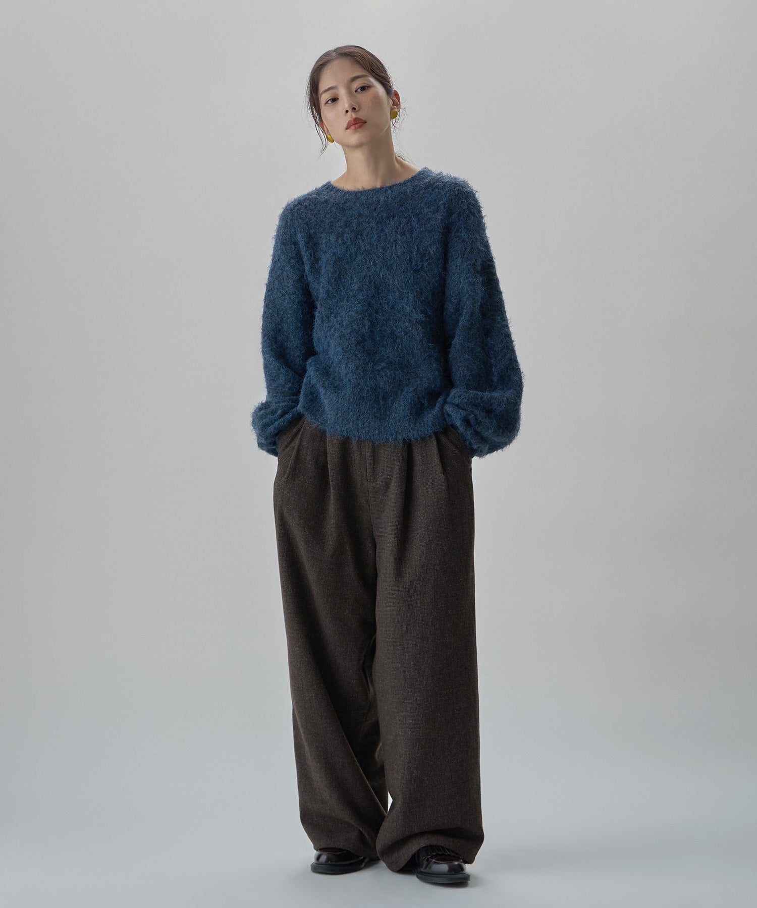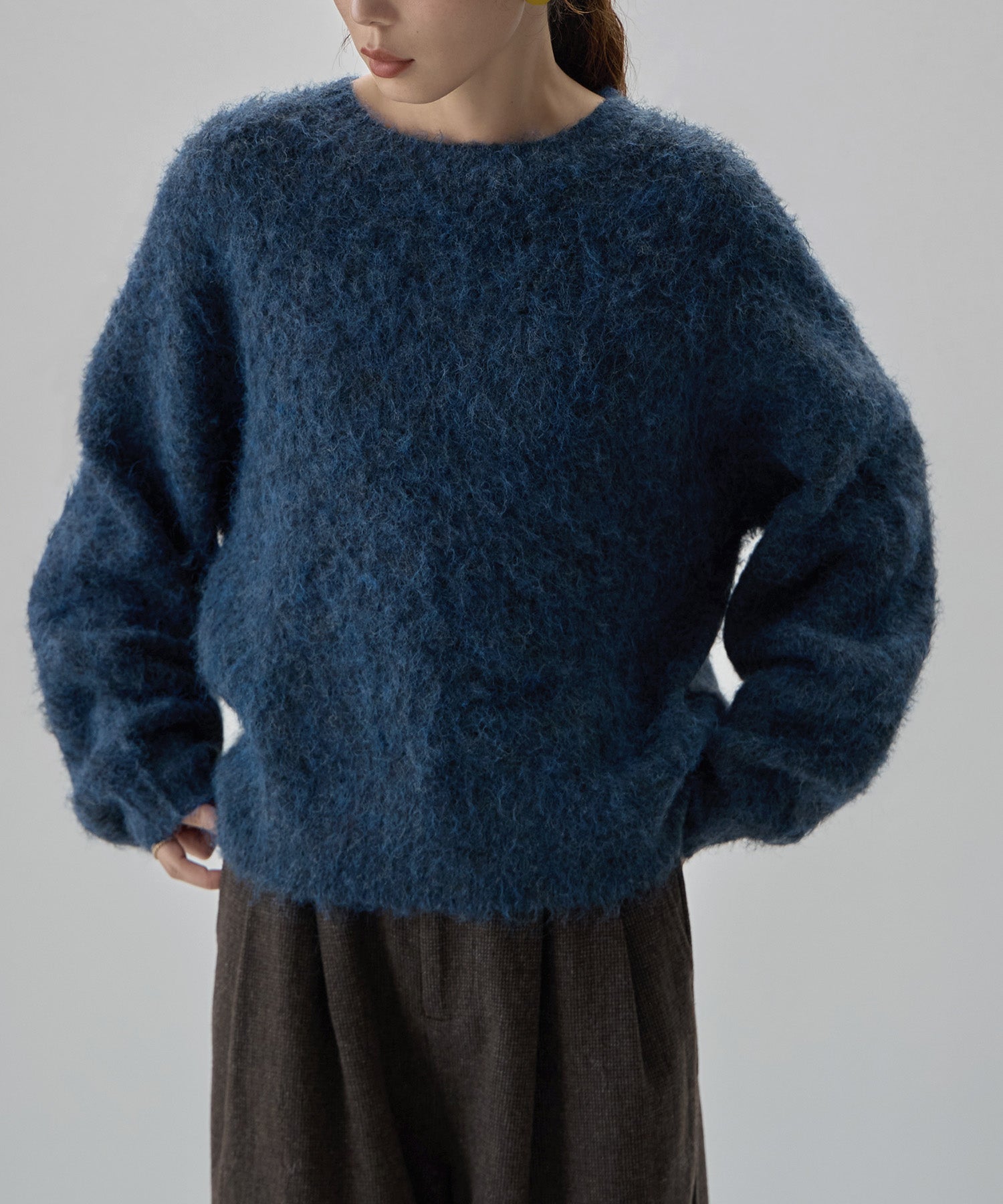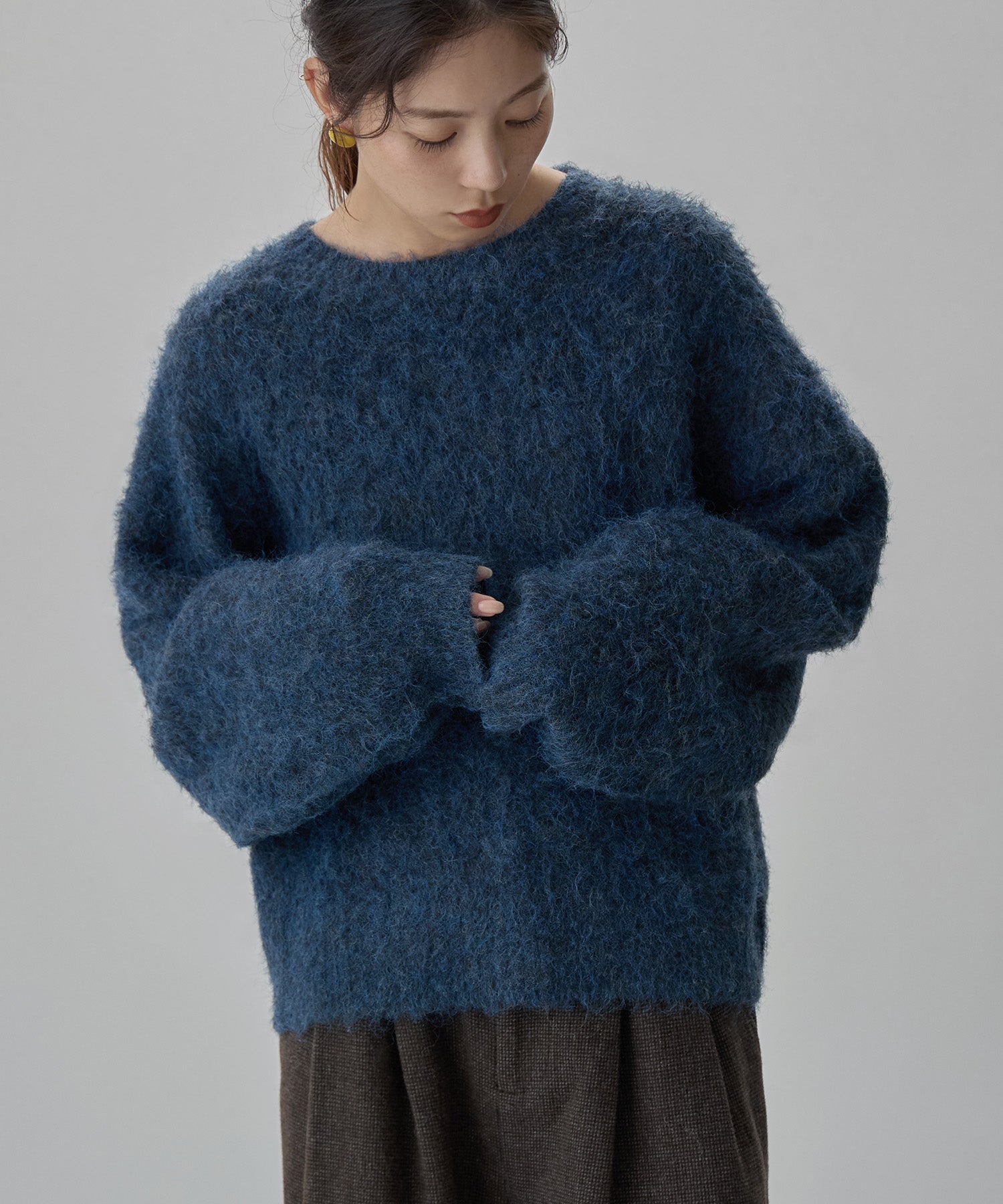 ウォーム感のある起毛糸で仕上げたミドル丈のシャギーニットプルオーバー。