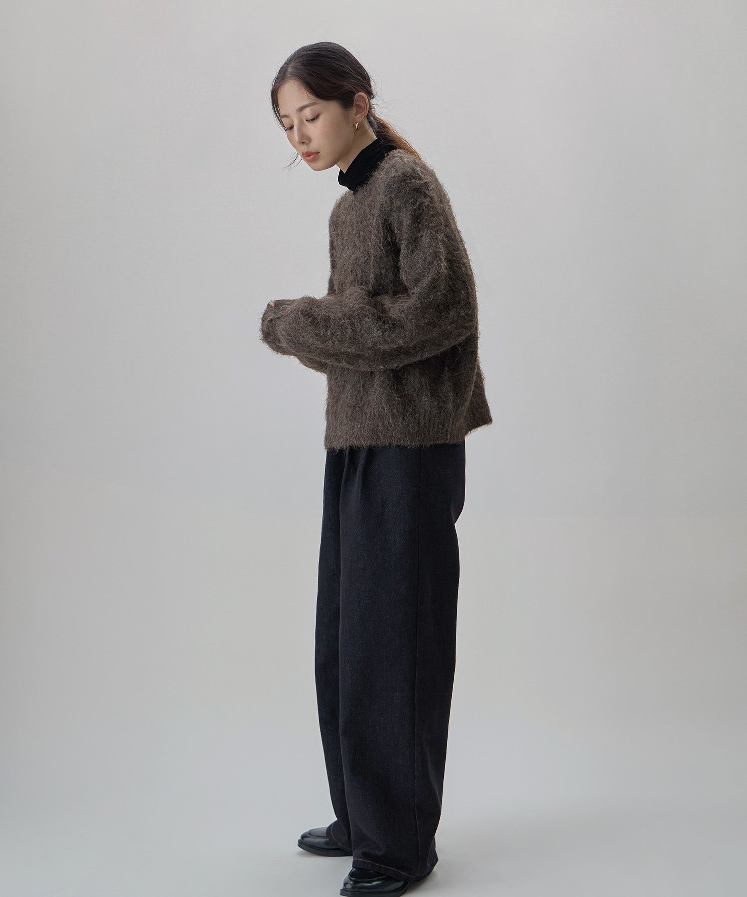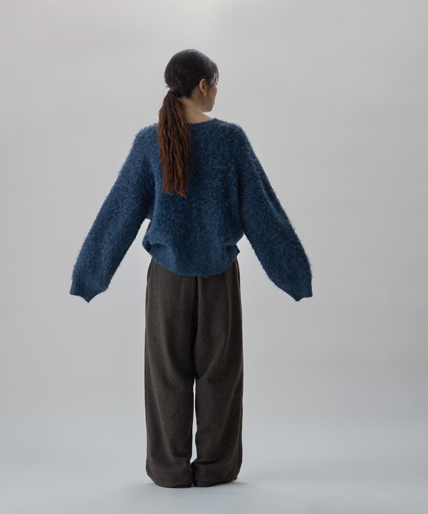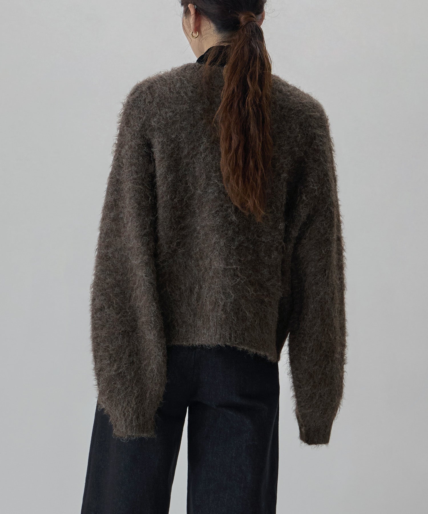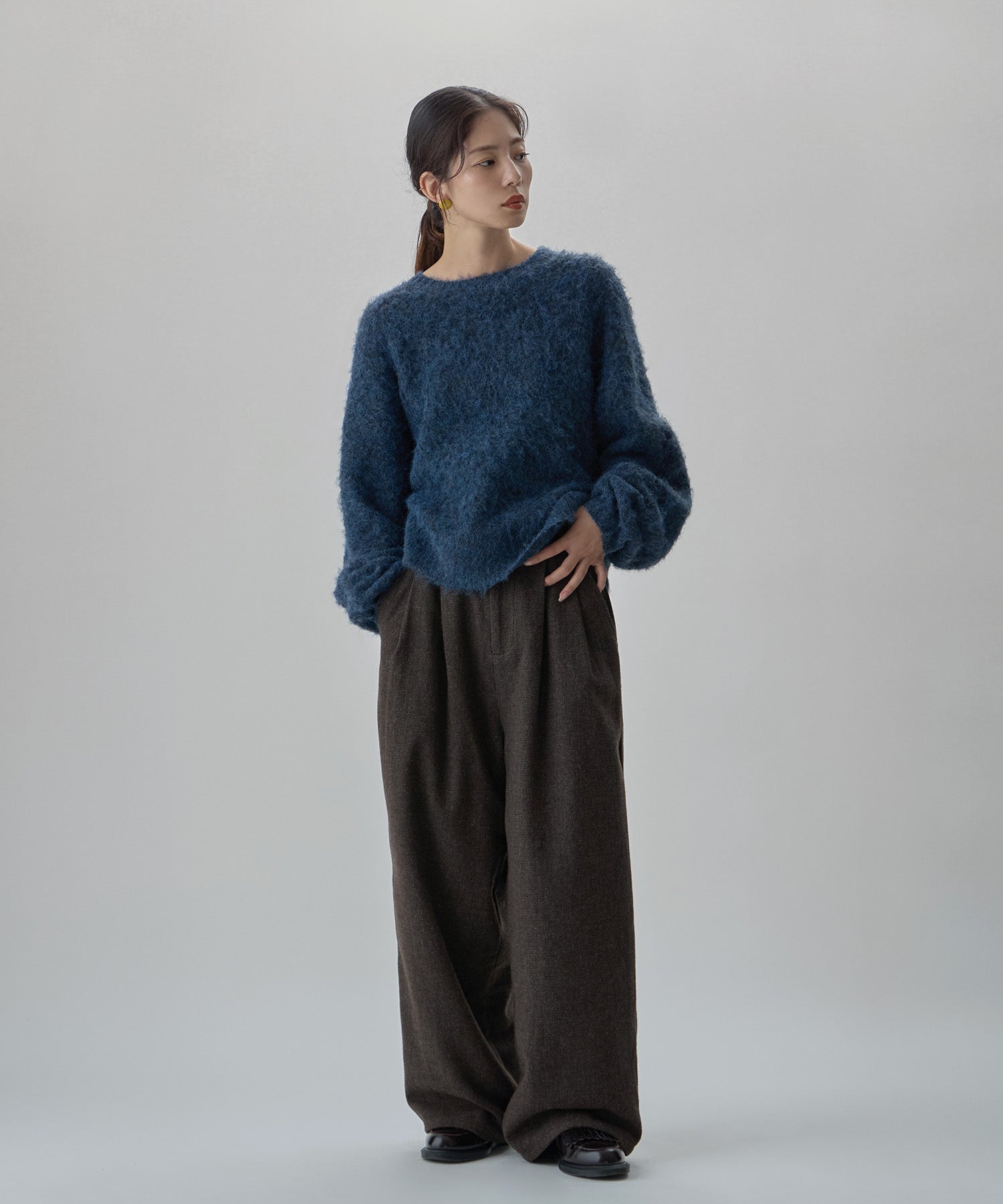 ウォーム感のある起毛糸で仕上げたミドル丈のシャギーニットプルオーバー。