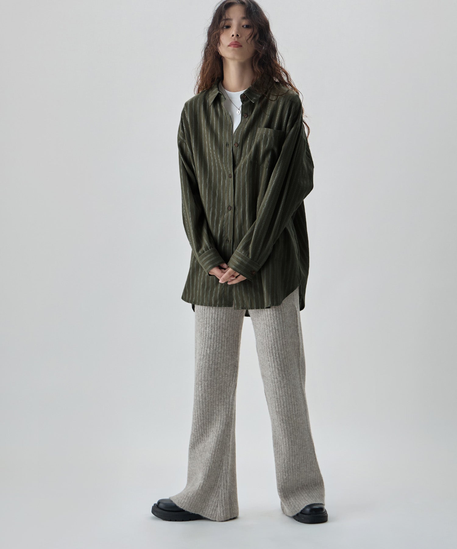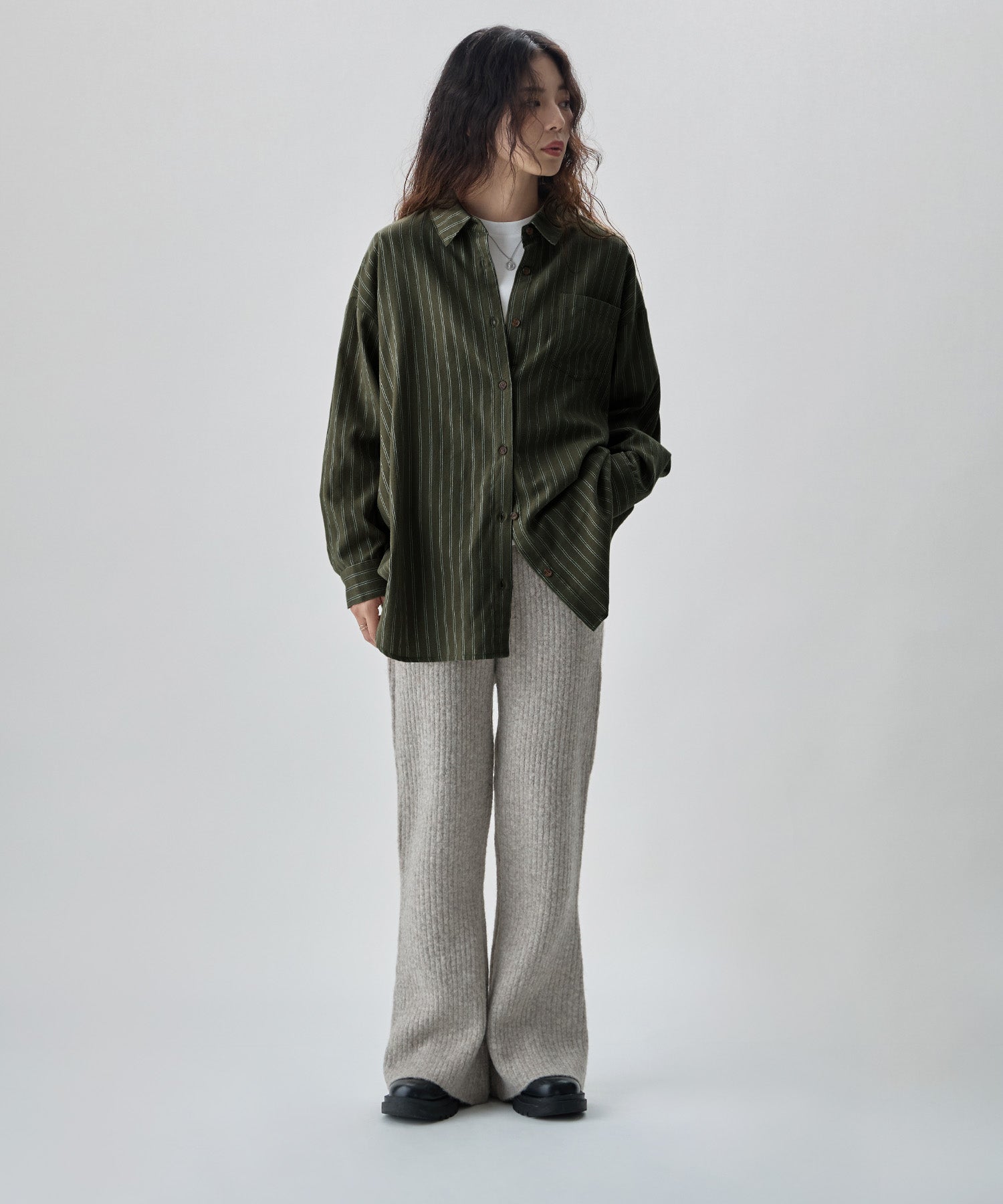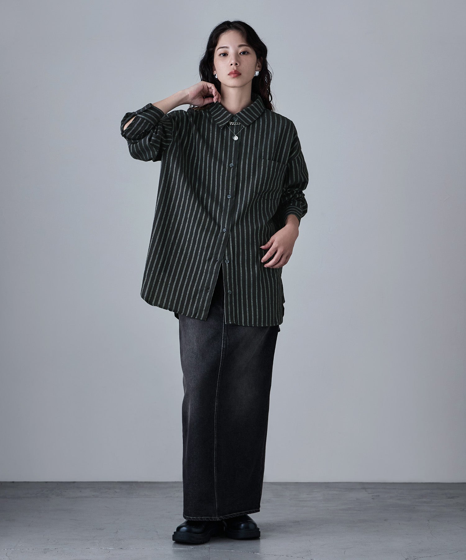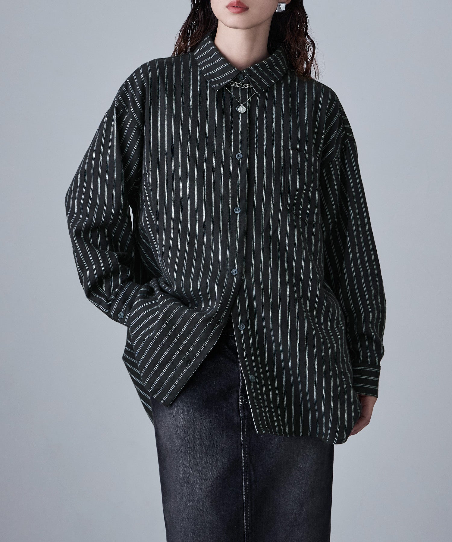 Rname ストライプコットンオーバーシャツ トップス シャツ 長袖 ストライプ 綿 綿100 ビッグシルエット オーバーサイズ レギュラーカラー 起毛 ネルシャツ レトロ 羽織り ストライプシャツ
