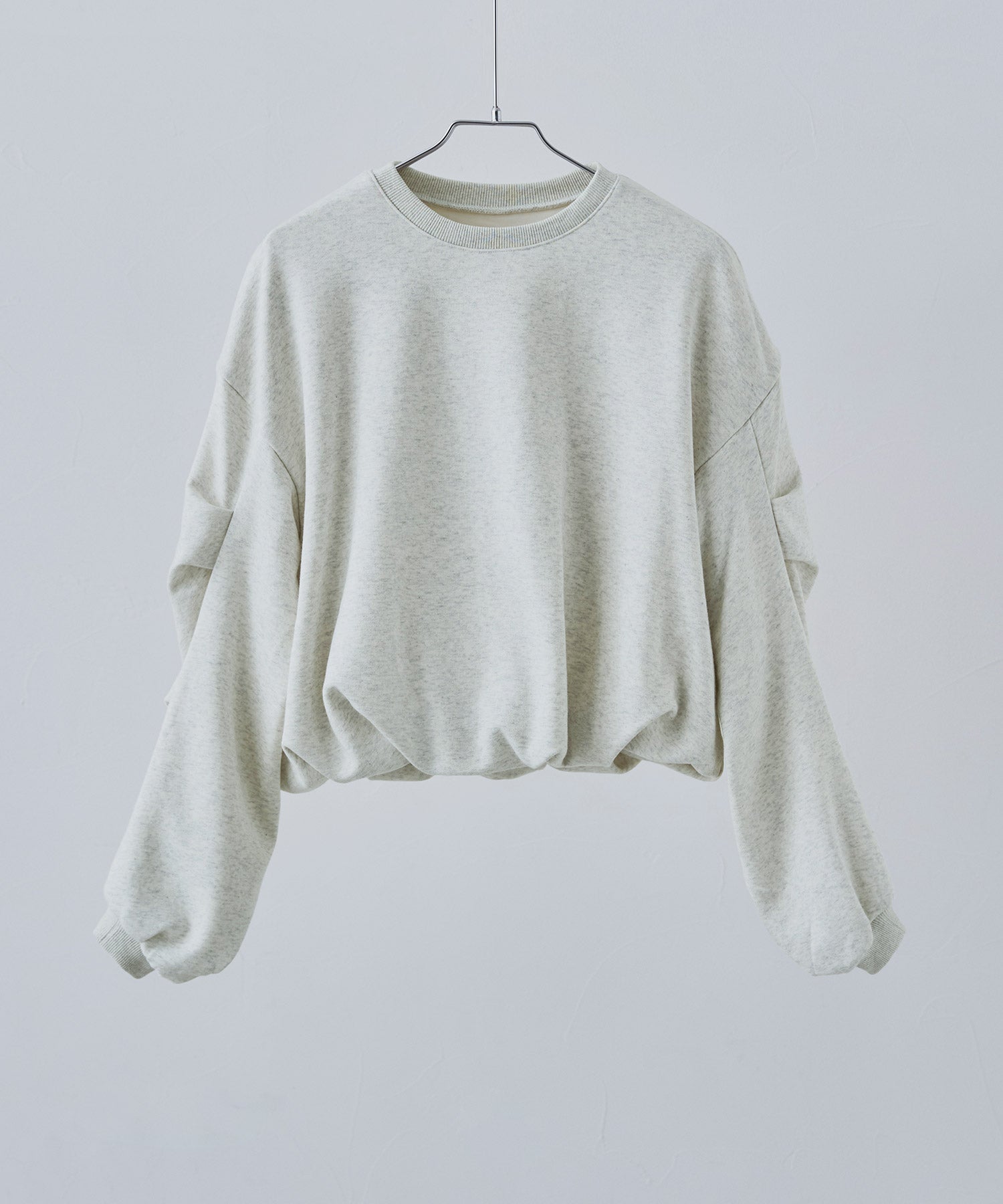 Rname タックスリーブバルーンスウェット トップス スウェット 長袖 クロップド ショート丈 プルオーバー タックスリーブ ボリューム袖 バルーン ビッグシルエット オーバーサイズ 無地 裏毛 綿混 短丈 ゆったり シャーリング