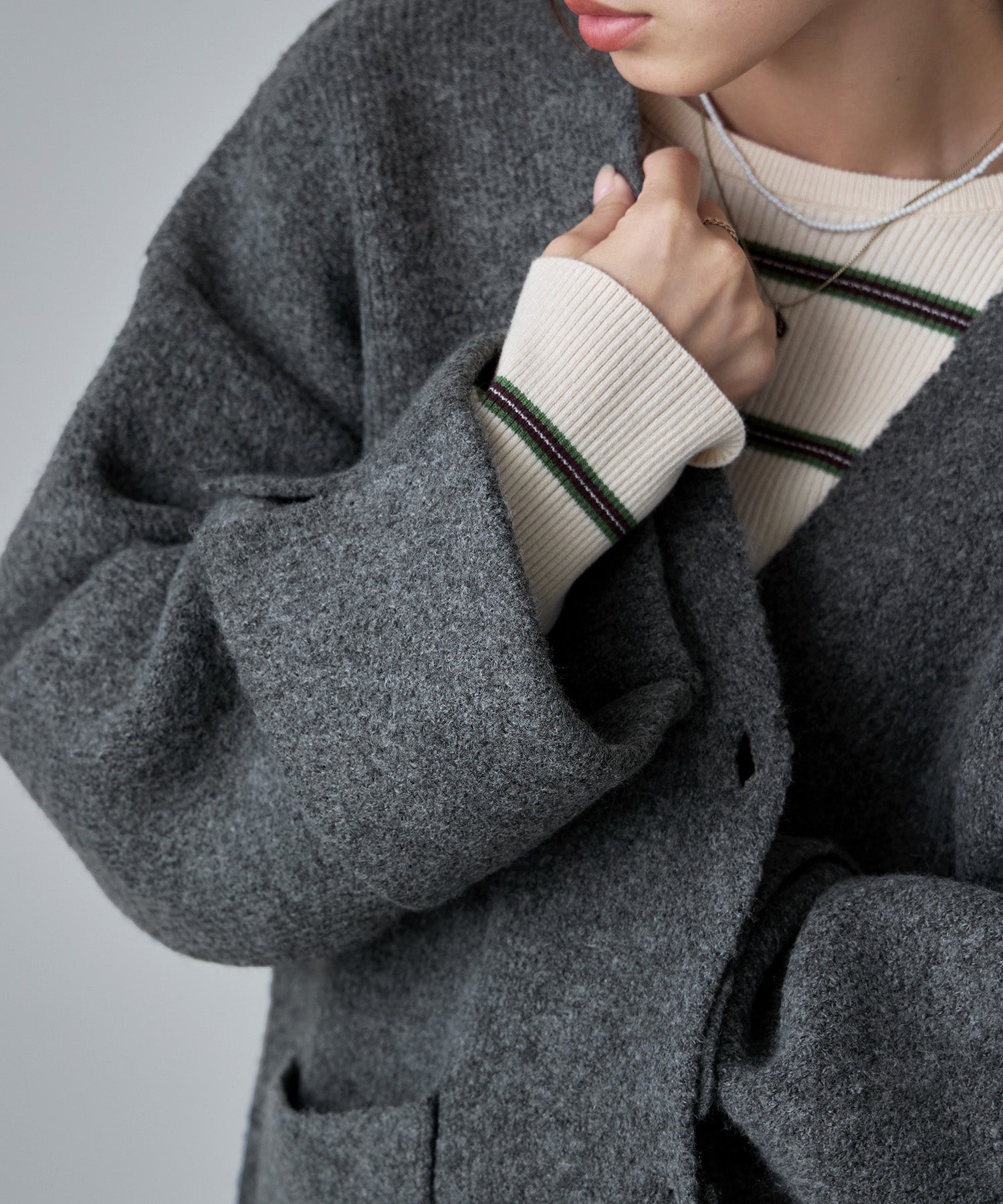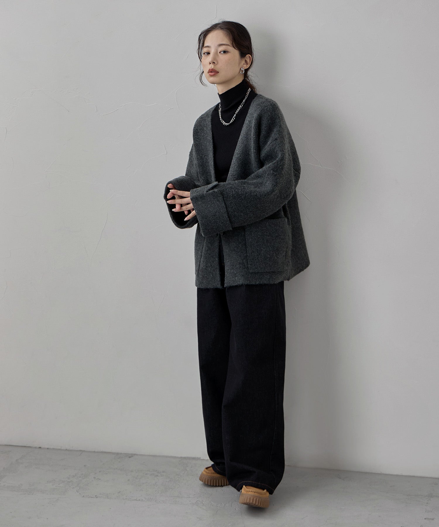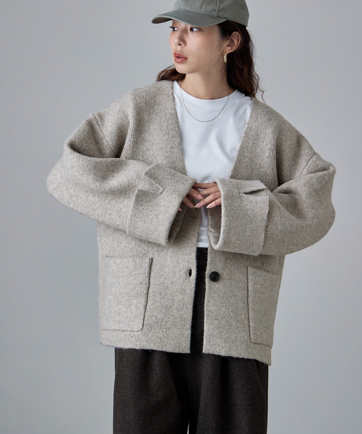 ジャケットのスマートさと、カーディガンのカジュアルな雰囲気をいいとこ取りしたアイテムです。