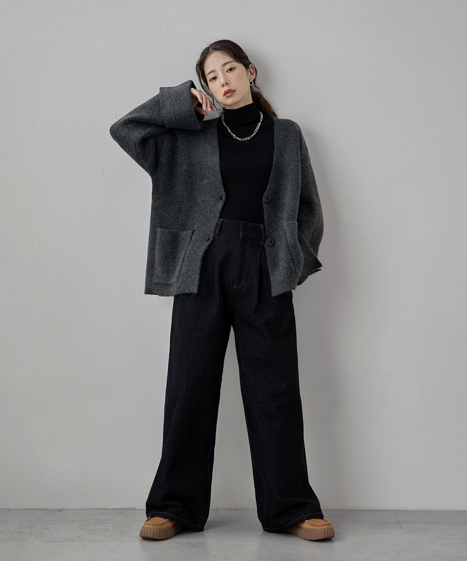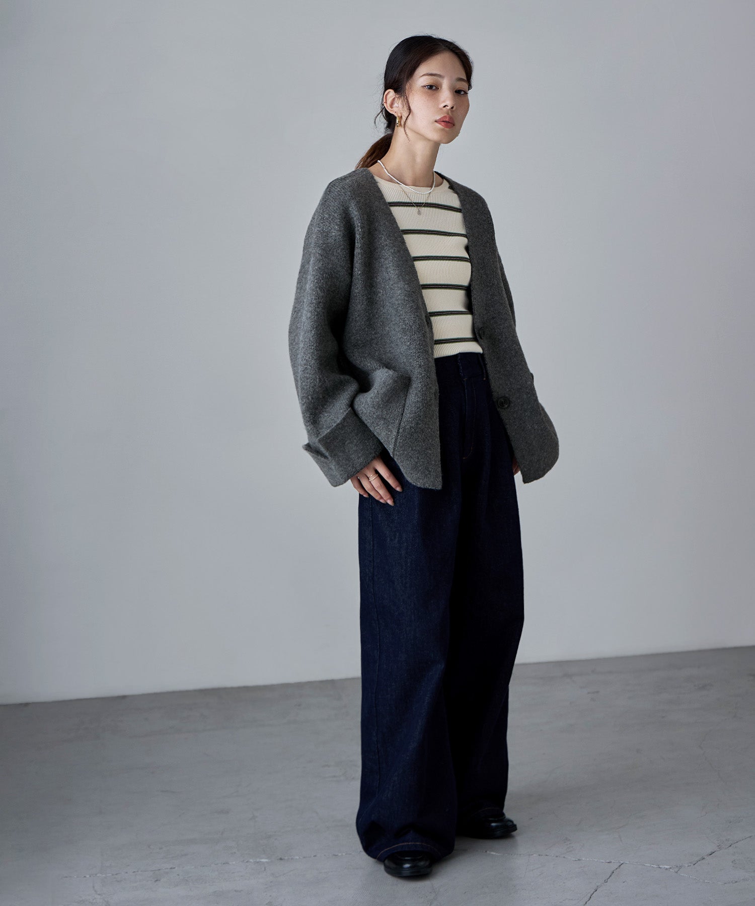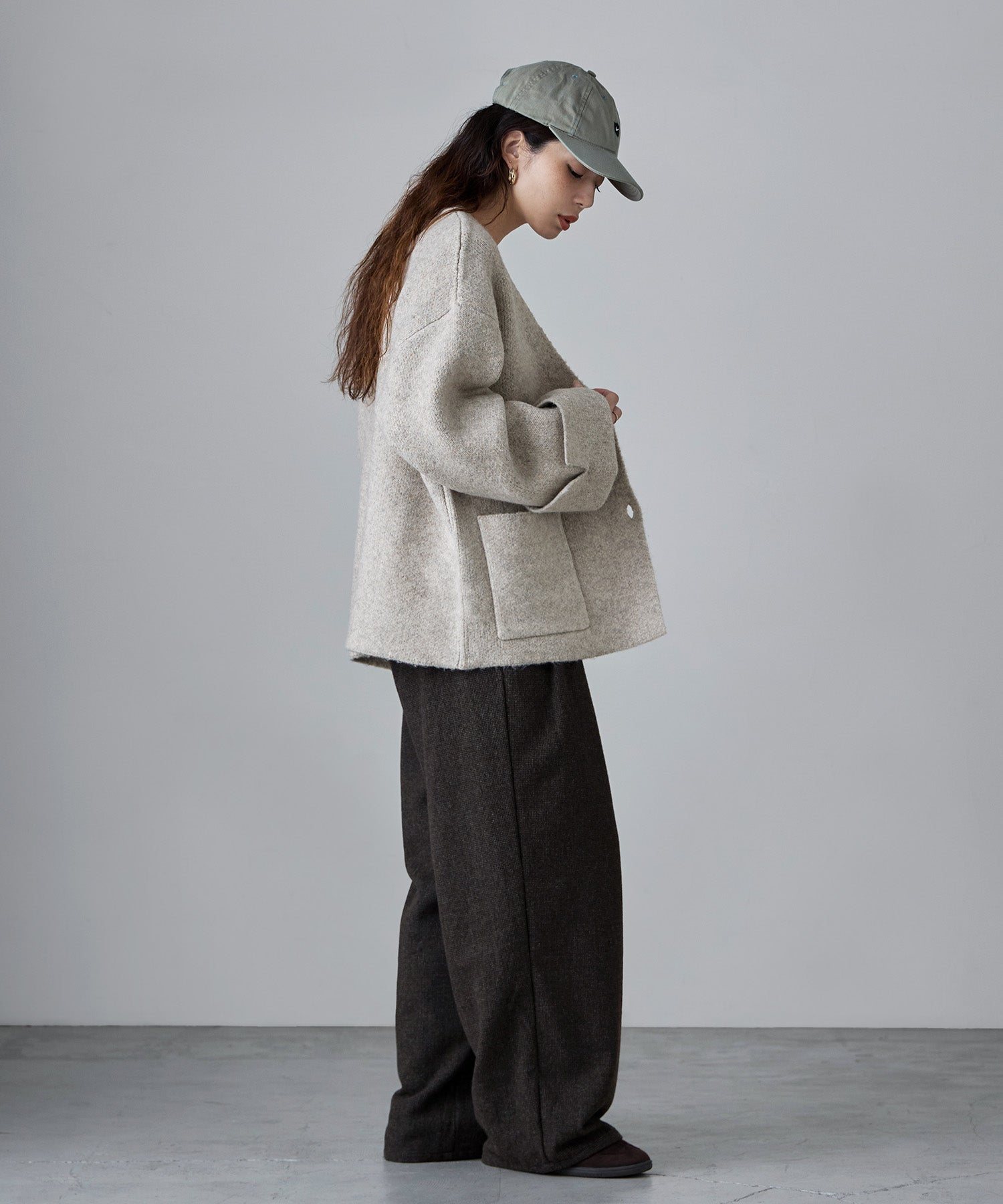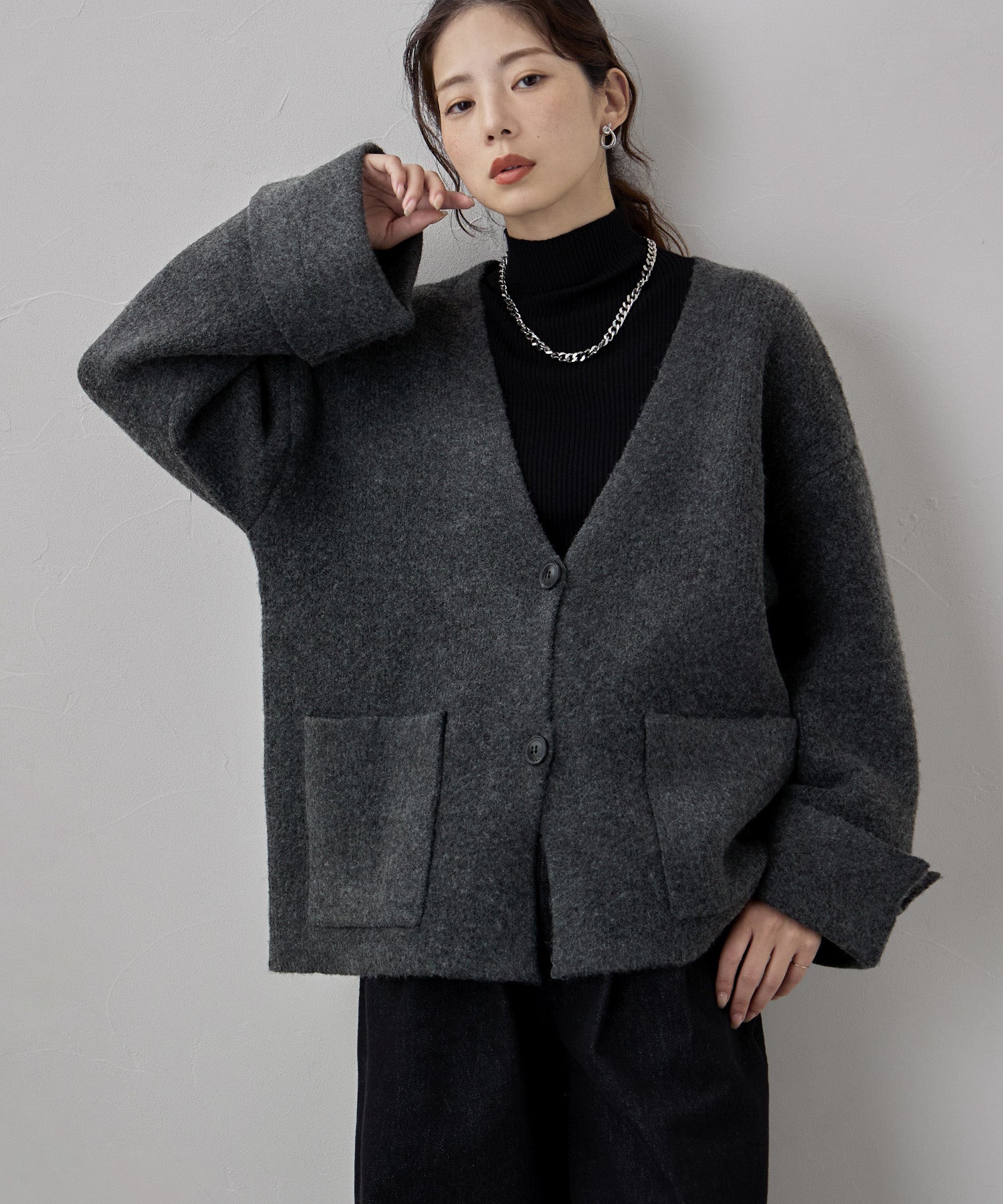 ジャケットのスマートさと、カーディガンのカジュアルな雰囲気をいいとこ取りしたアイテムです。