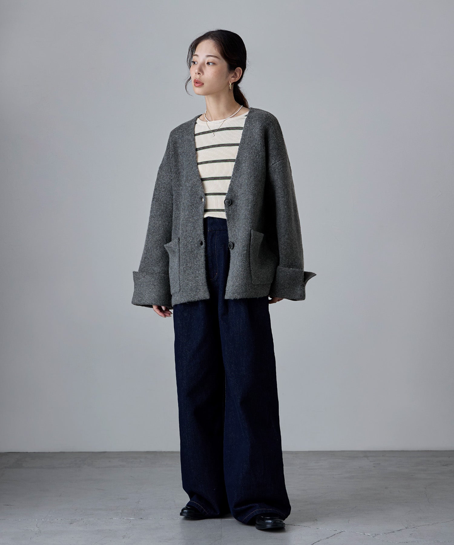 品よく崩すができるワイドスリーブに、太めに折り返された袖口のスリットデザインは、コーディネートのアクセントとなってくれます。
