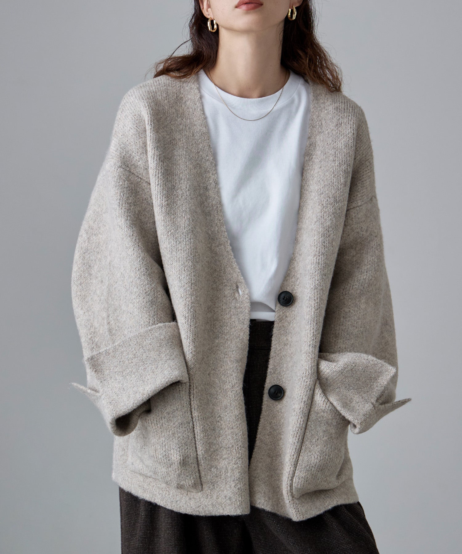 肌触りの良いヤクタッチ素材で仕立てたニットカーディガン。