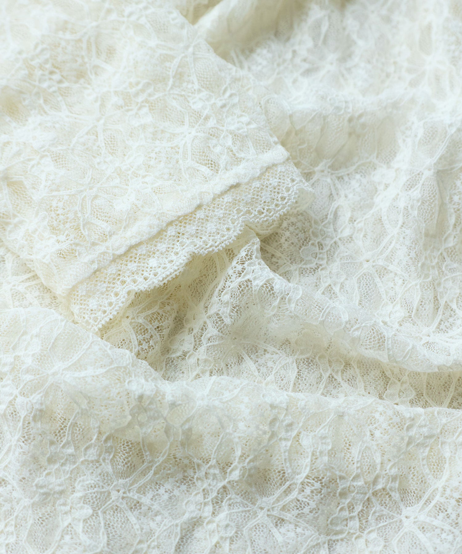 さりげない手元の動きを華やかに仕上げてくれる袖口や裾のレースに、