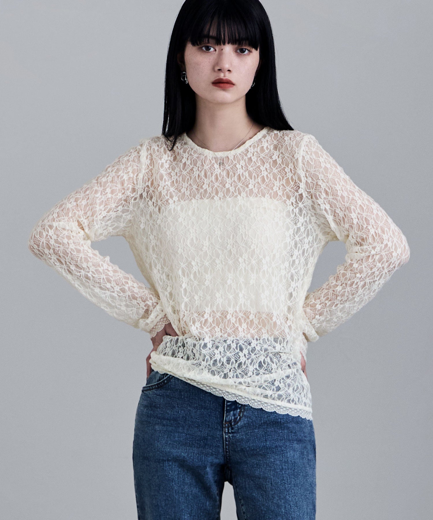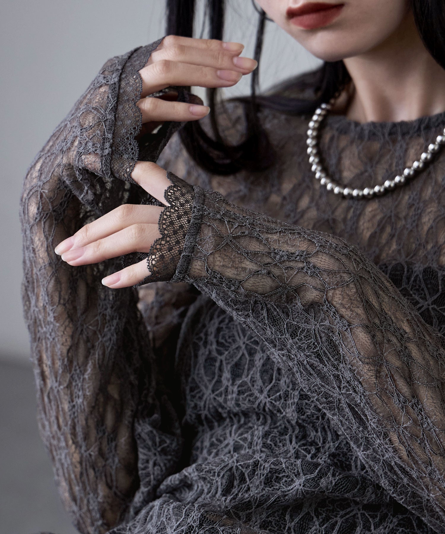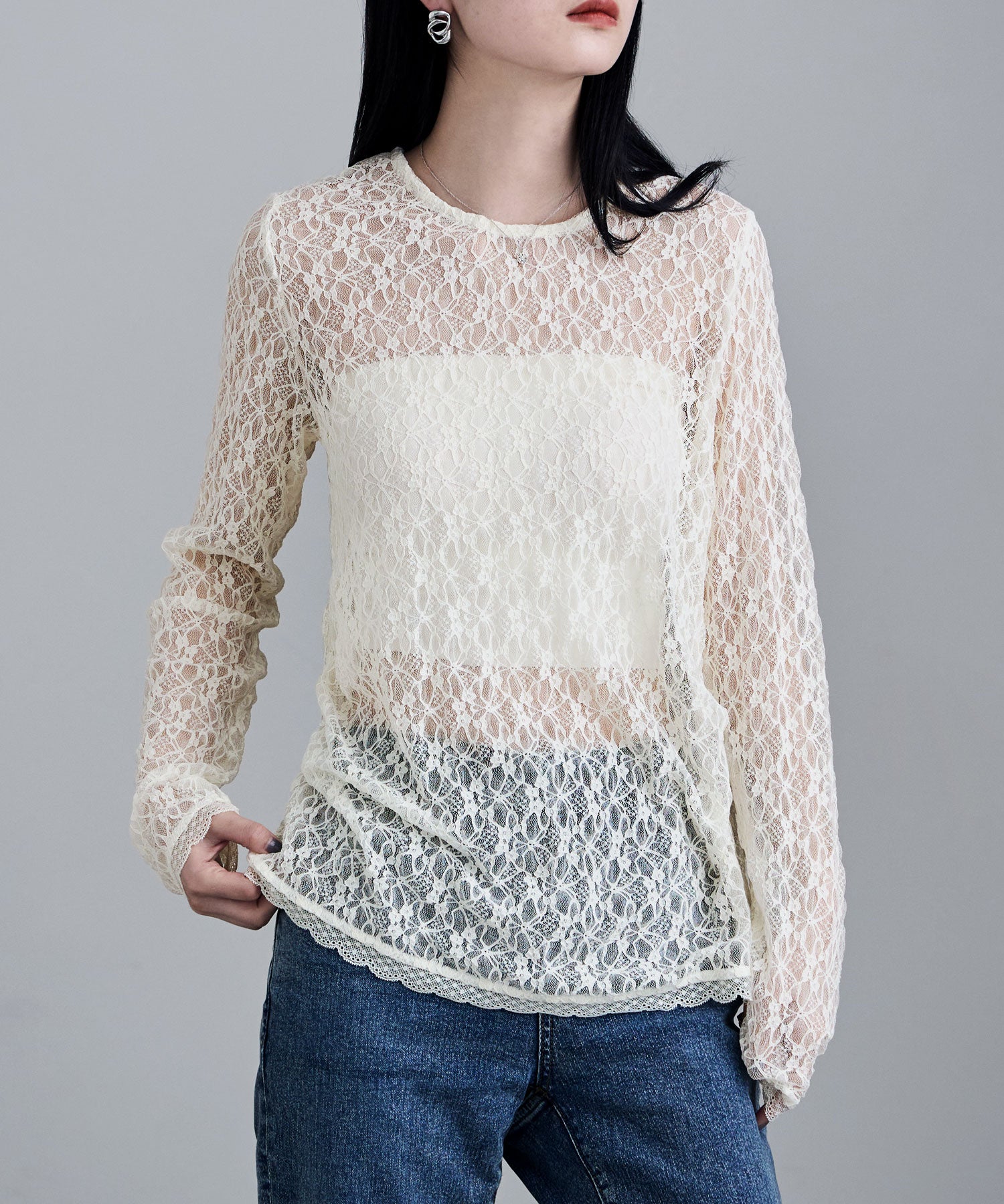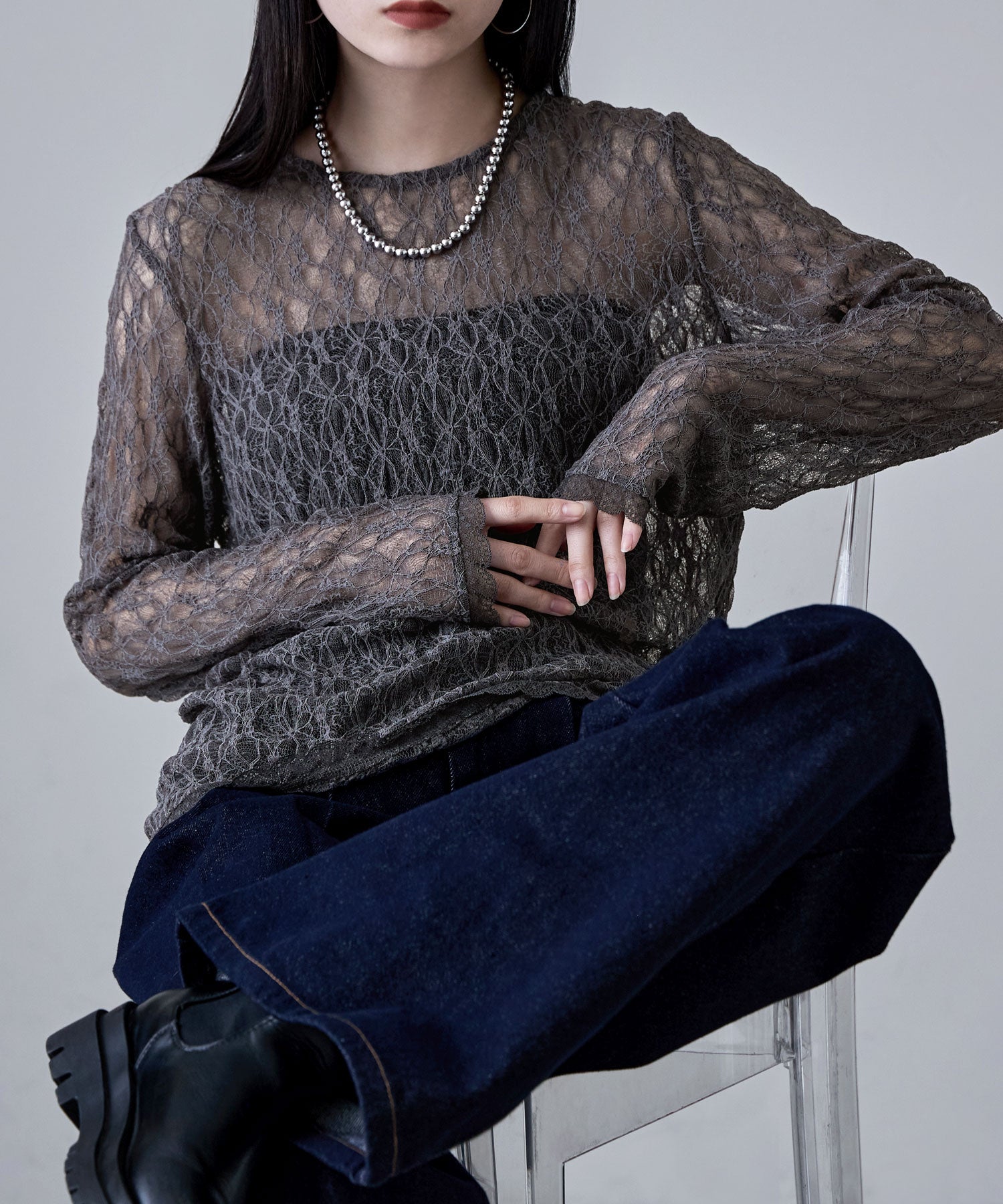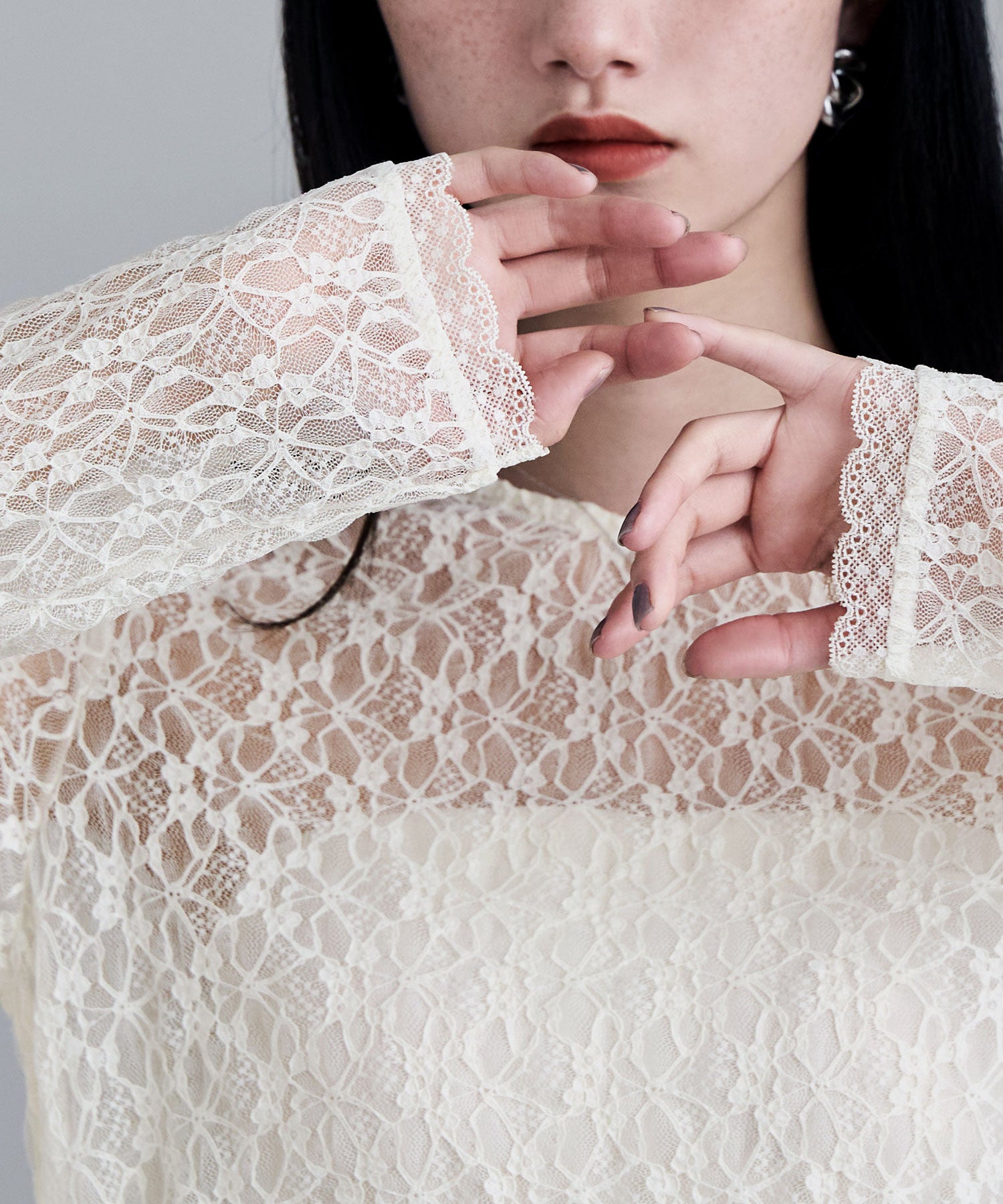 スキンコンシャスな透け感のあるレーストップスは、今季押さえておきたいマストアイテム。