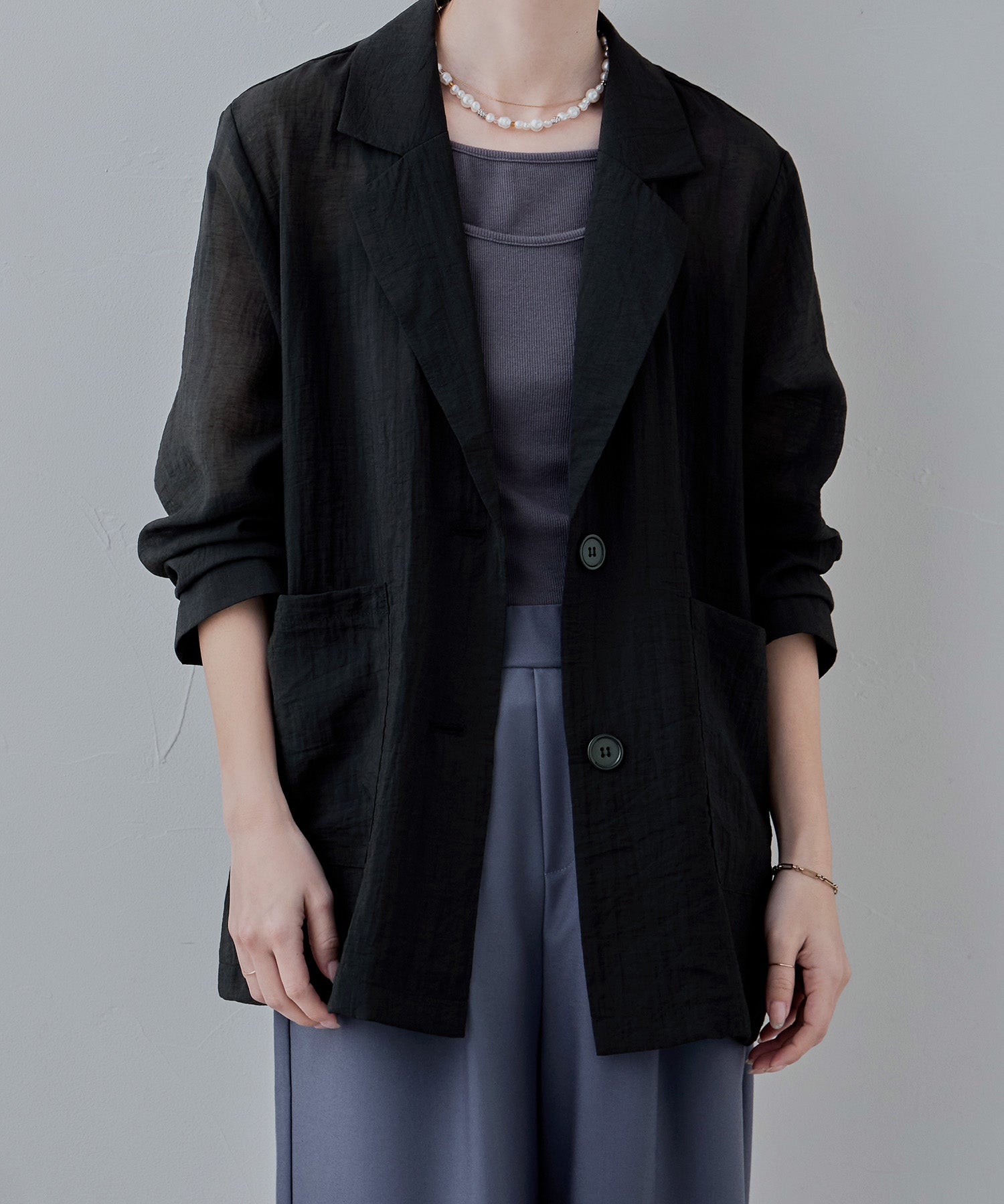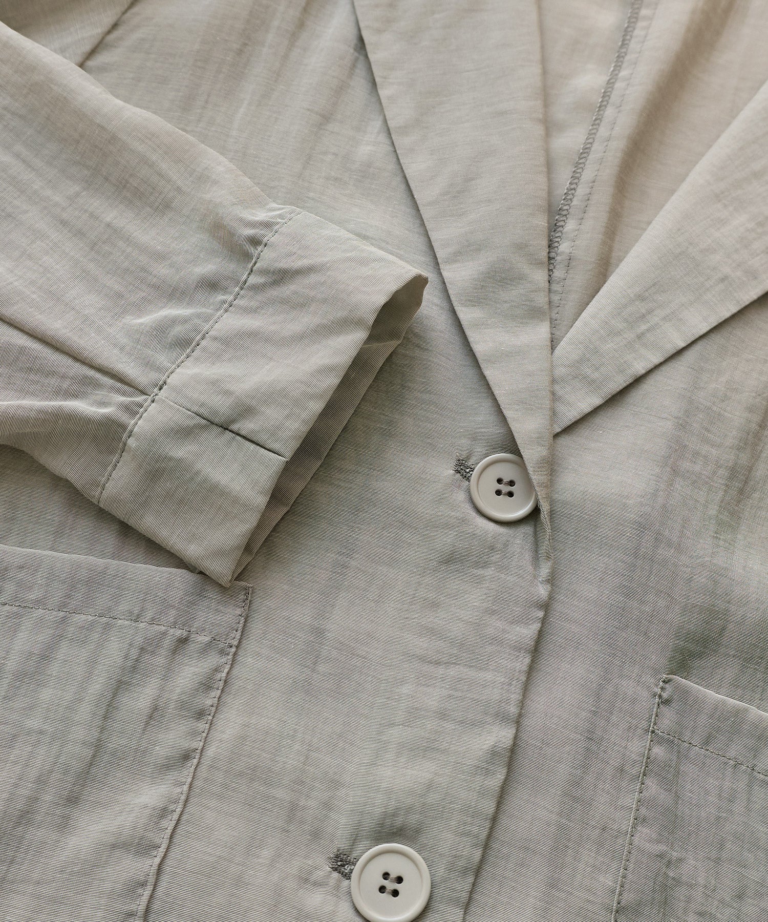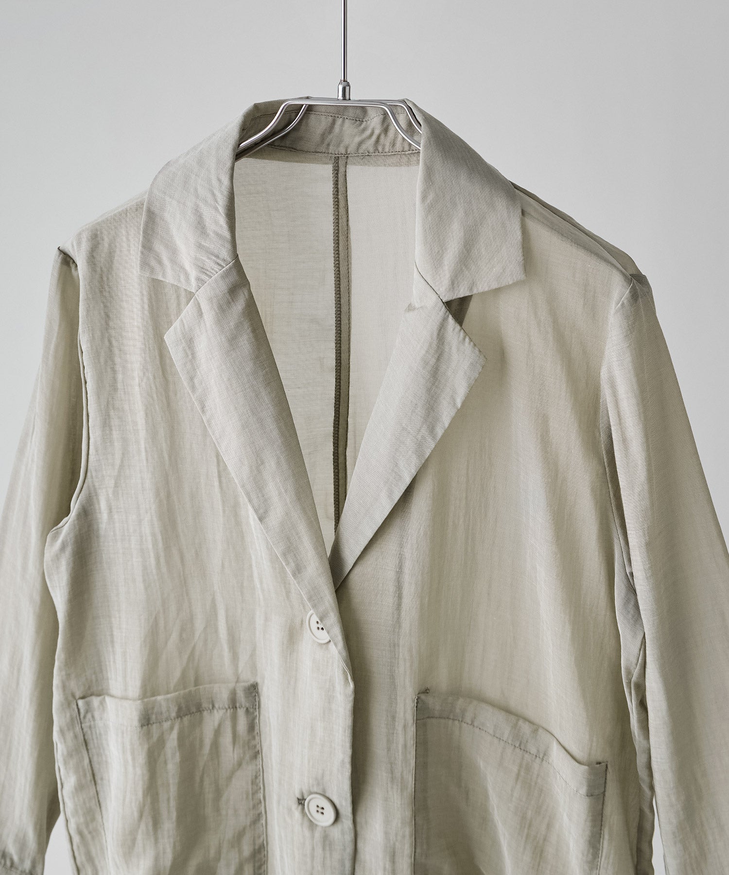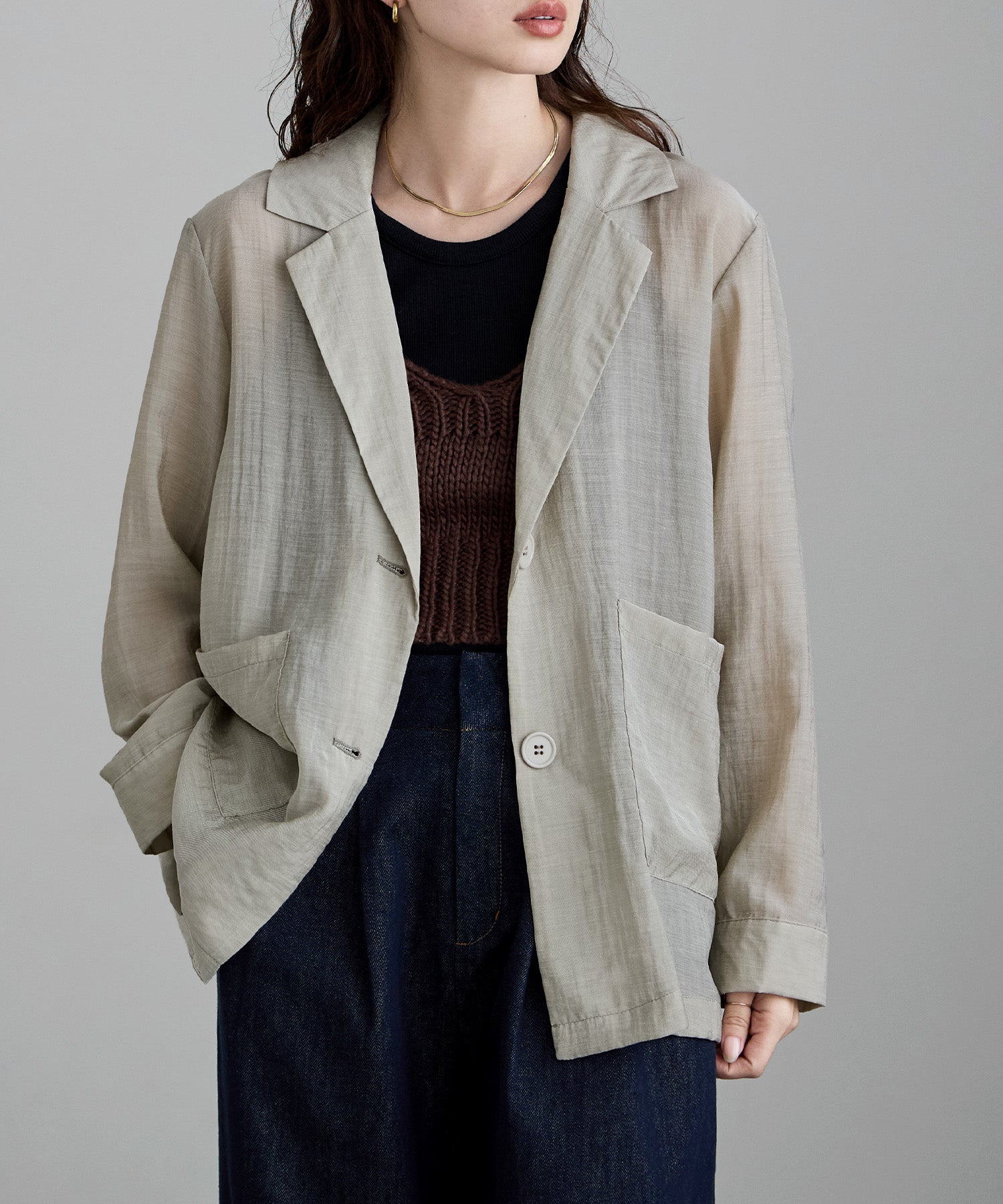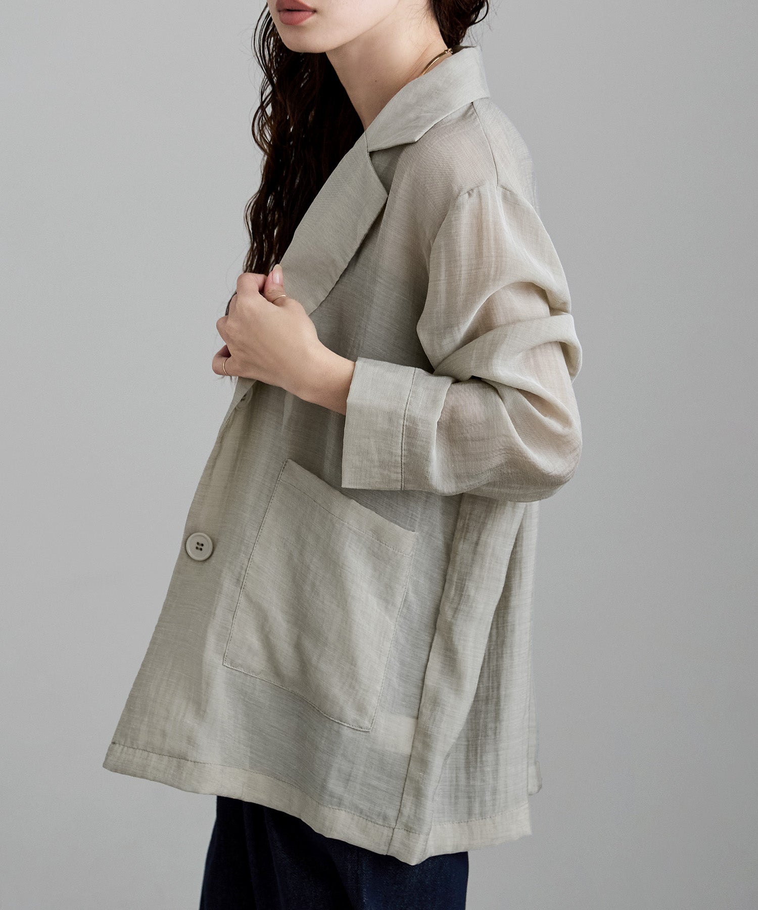 シアー素材で軽やかに、シャツ感覚で着られるシングルテーラードジャケット。