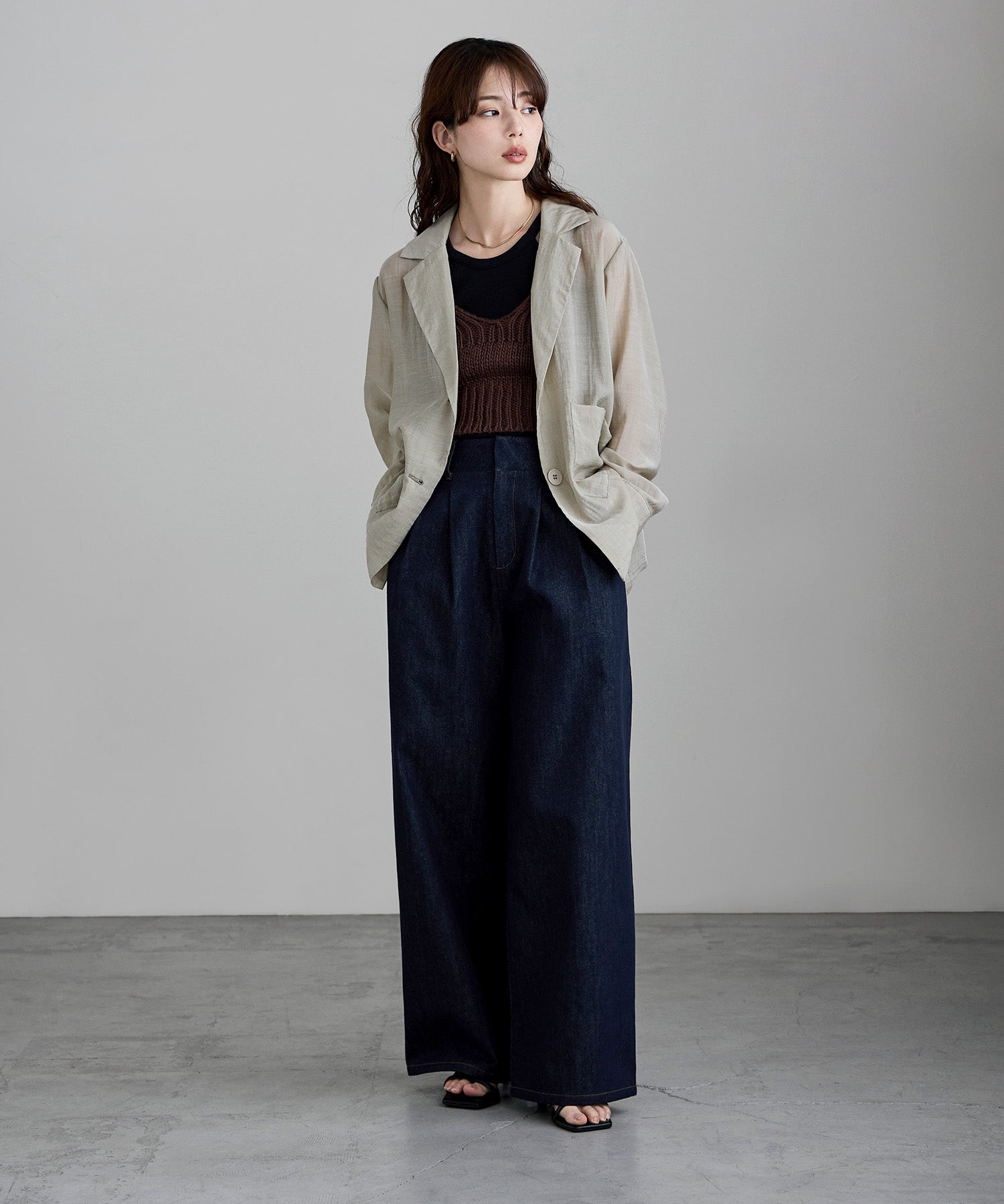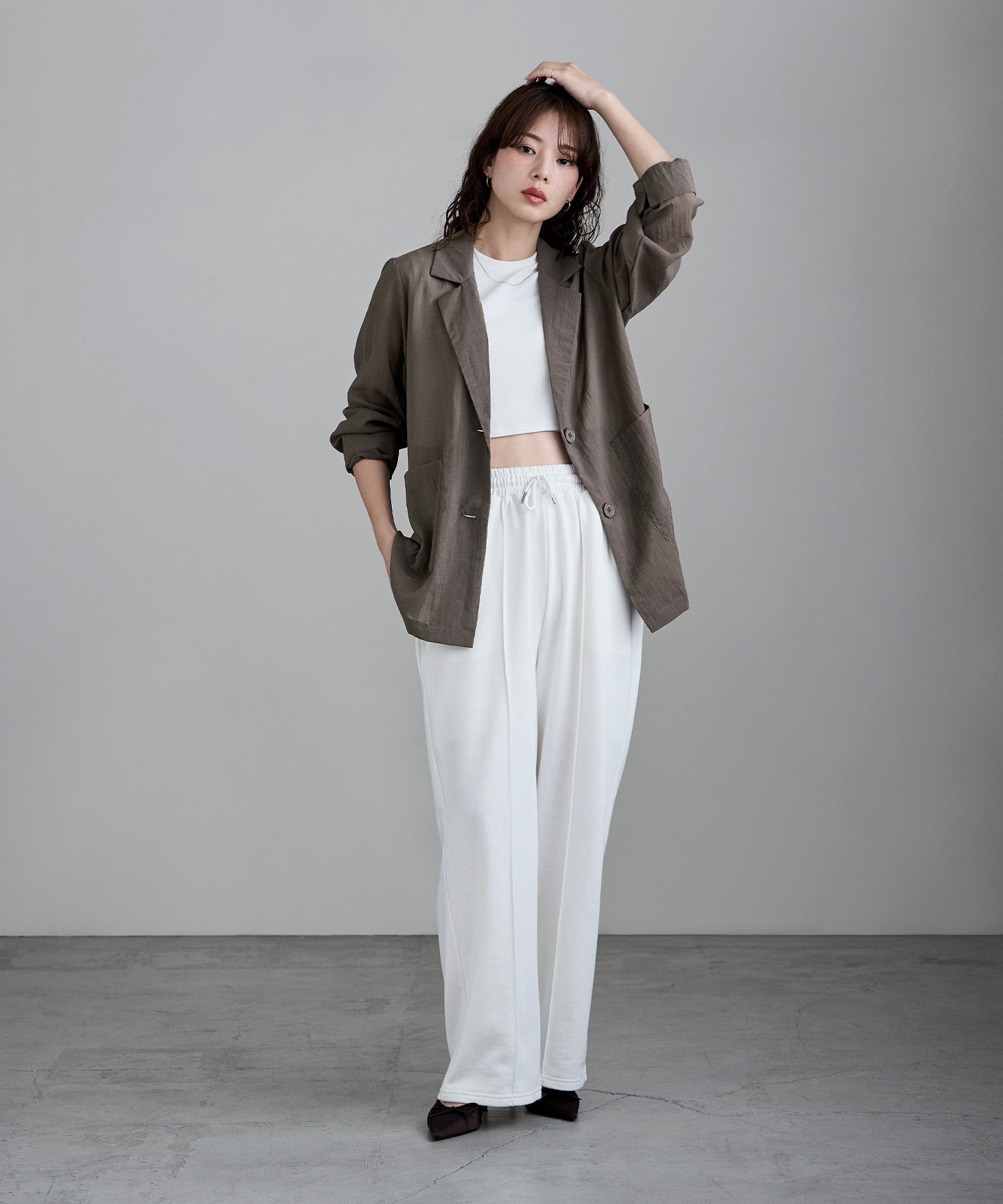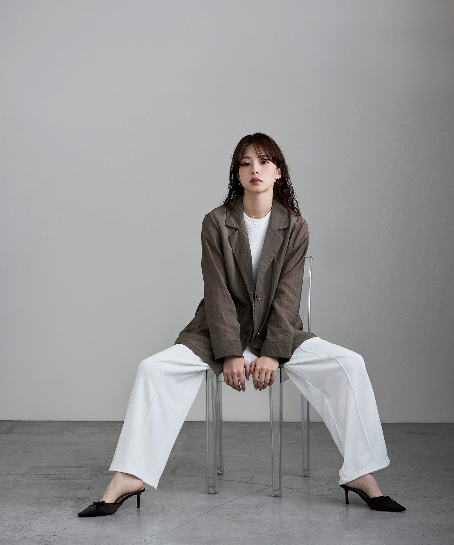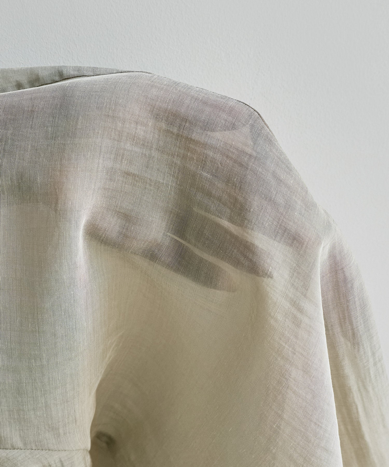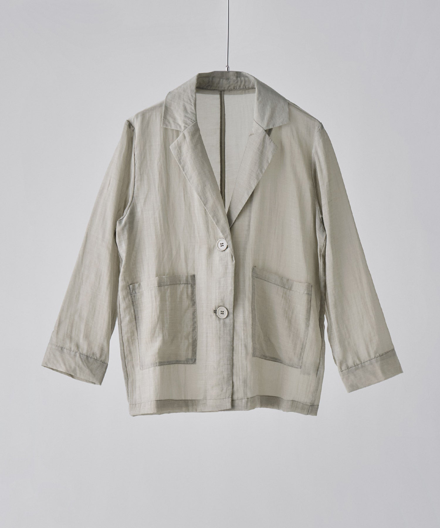 シアー素材で軽やかに、シャツ感覚で着られるシングルテーラードジャケット。