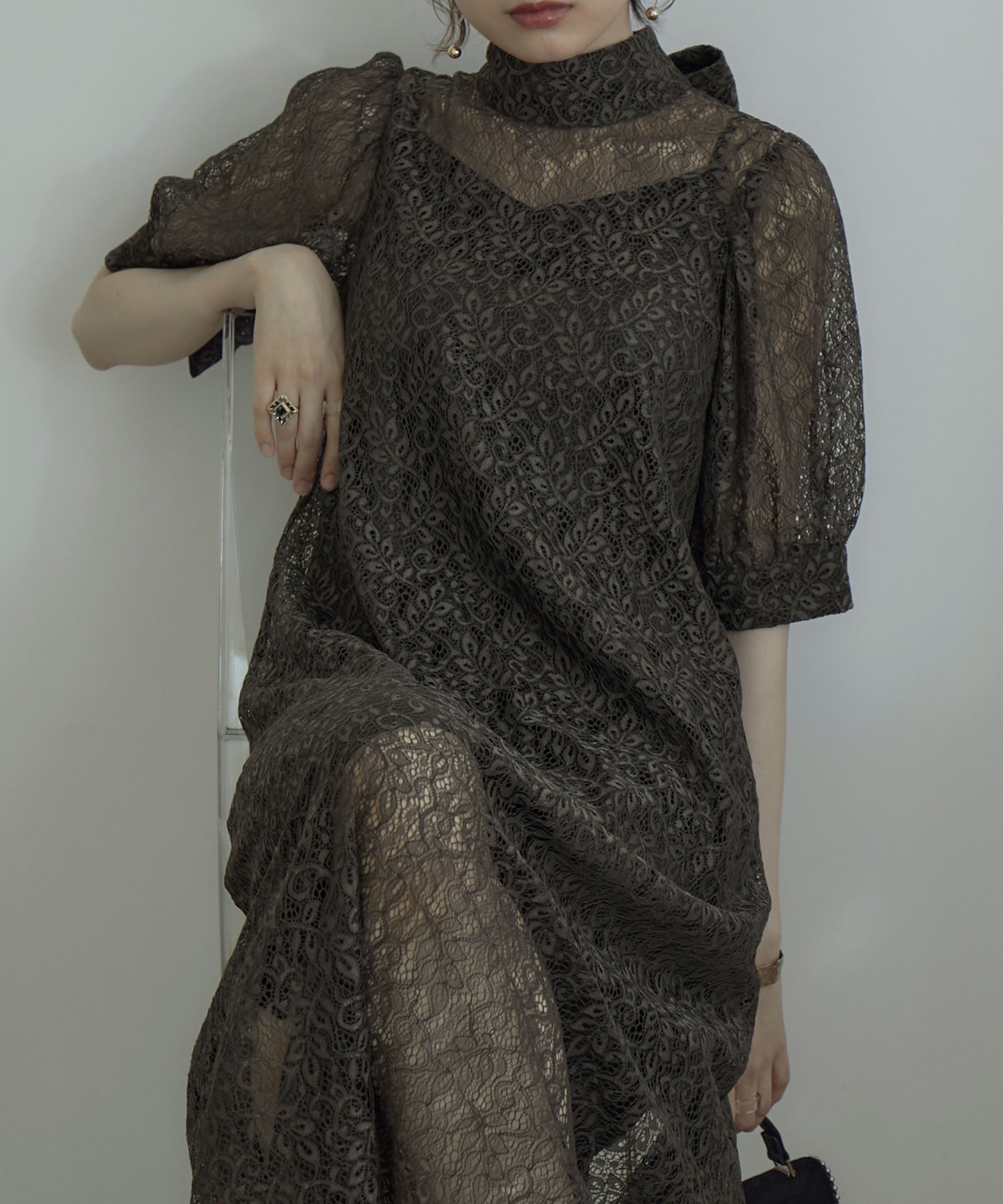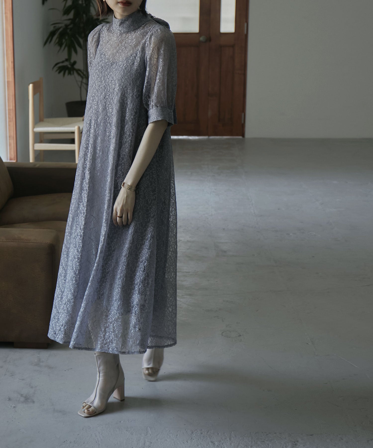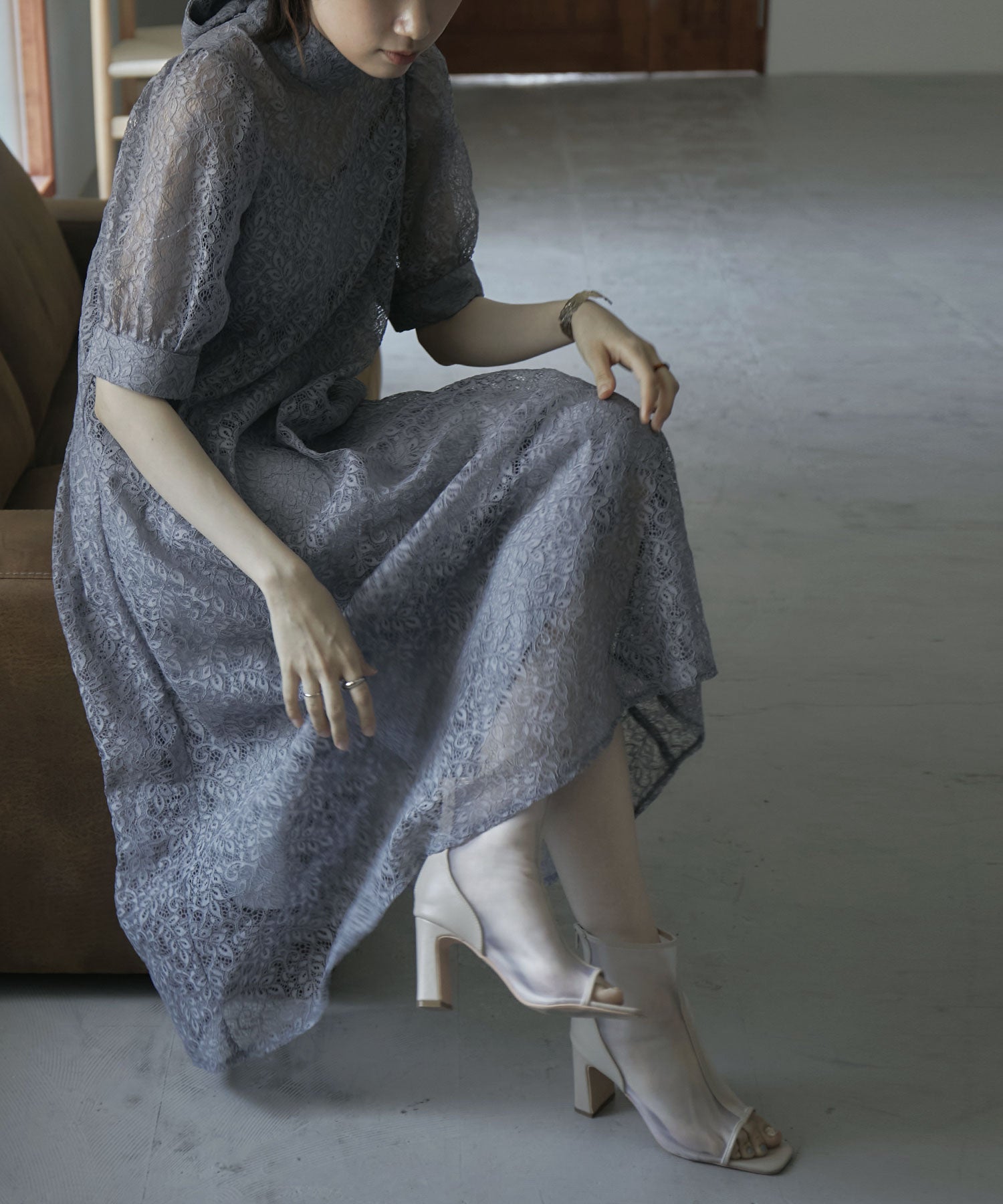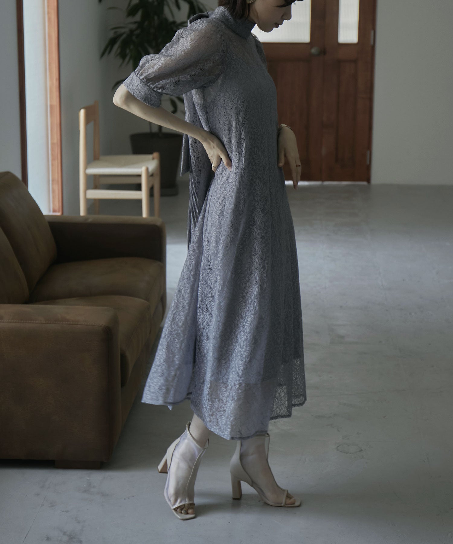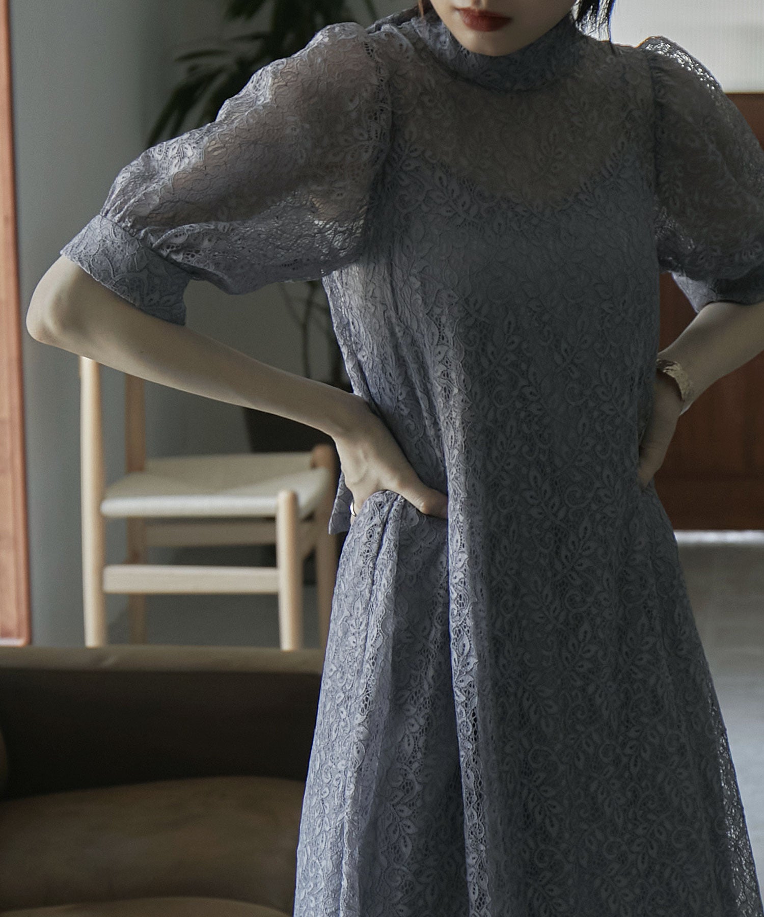 シアー感のあるレースが美しく、気になるボディラインもカバーしてくれるシルエットとふわっとしたボリューム袖が大人の女性らしさが際立つスタイルに仕上げてくれます。